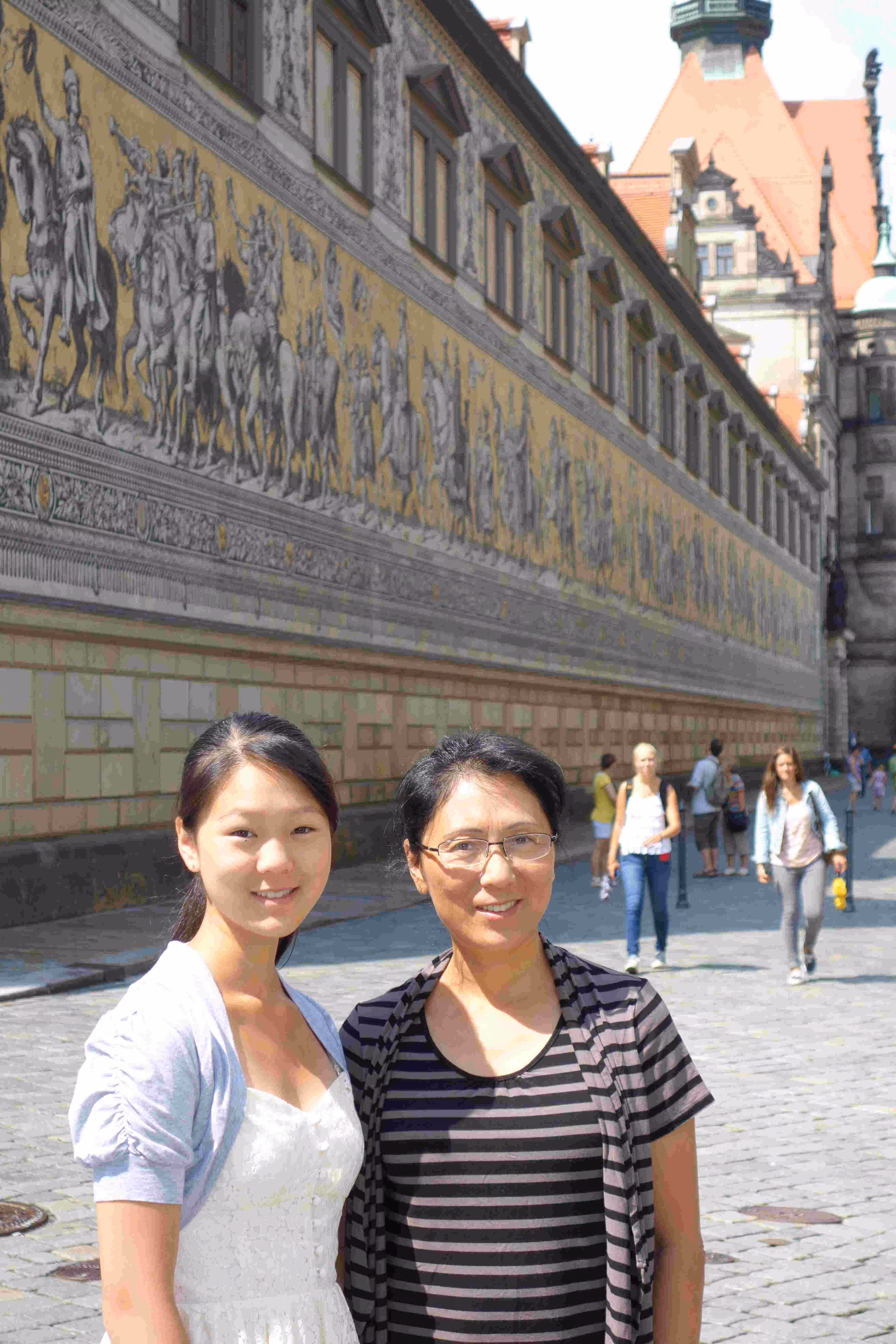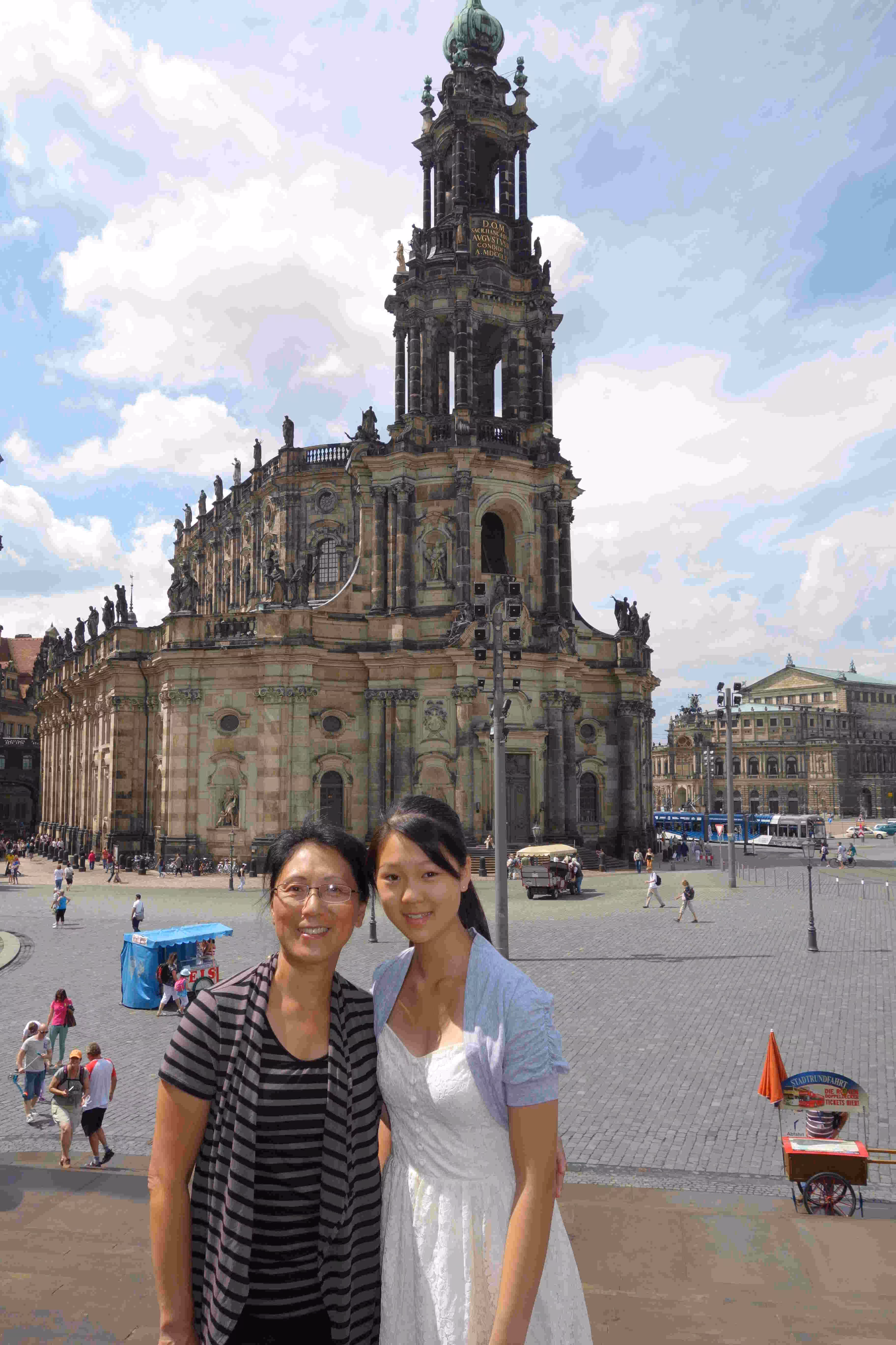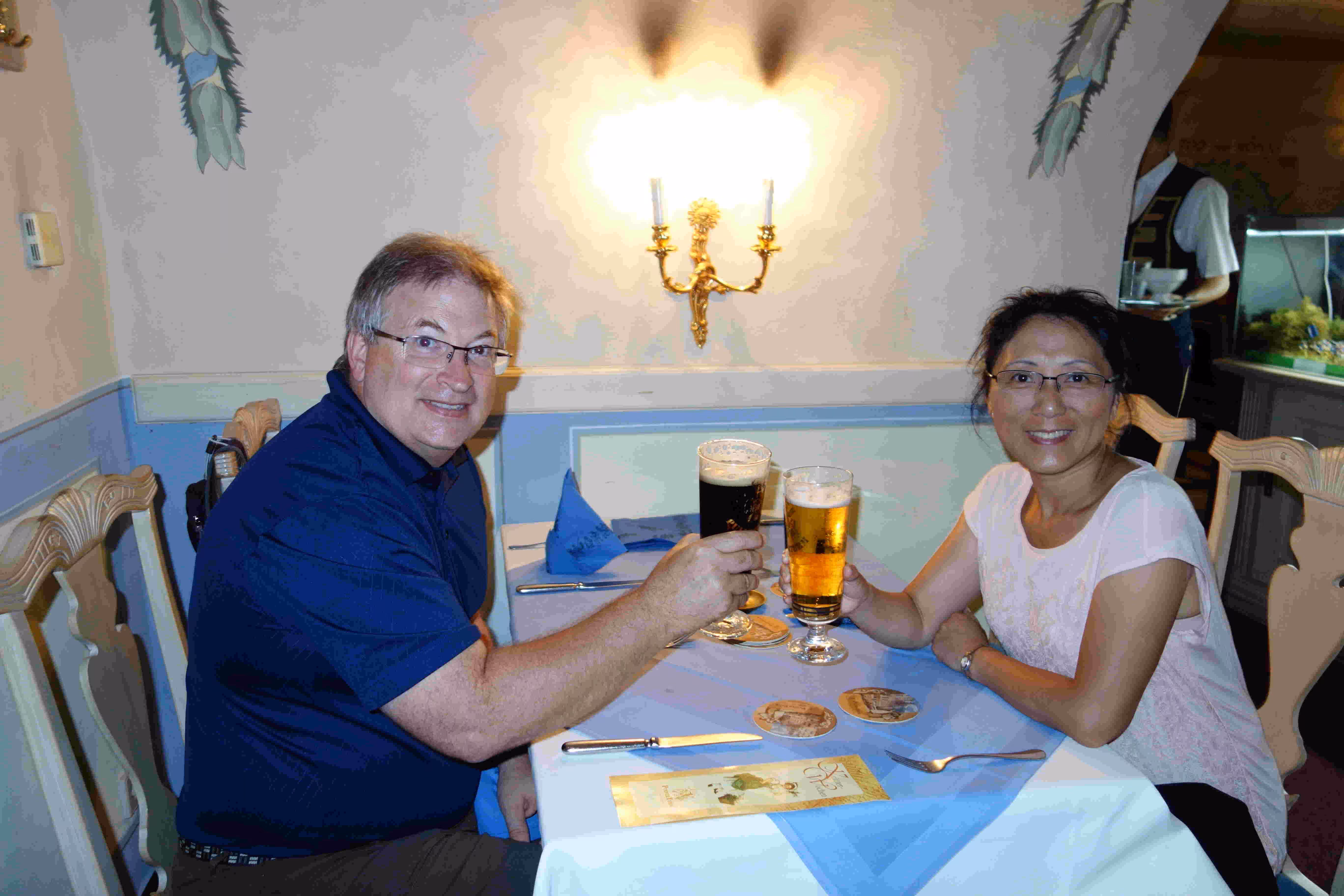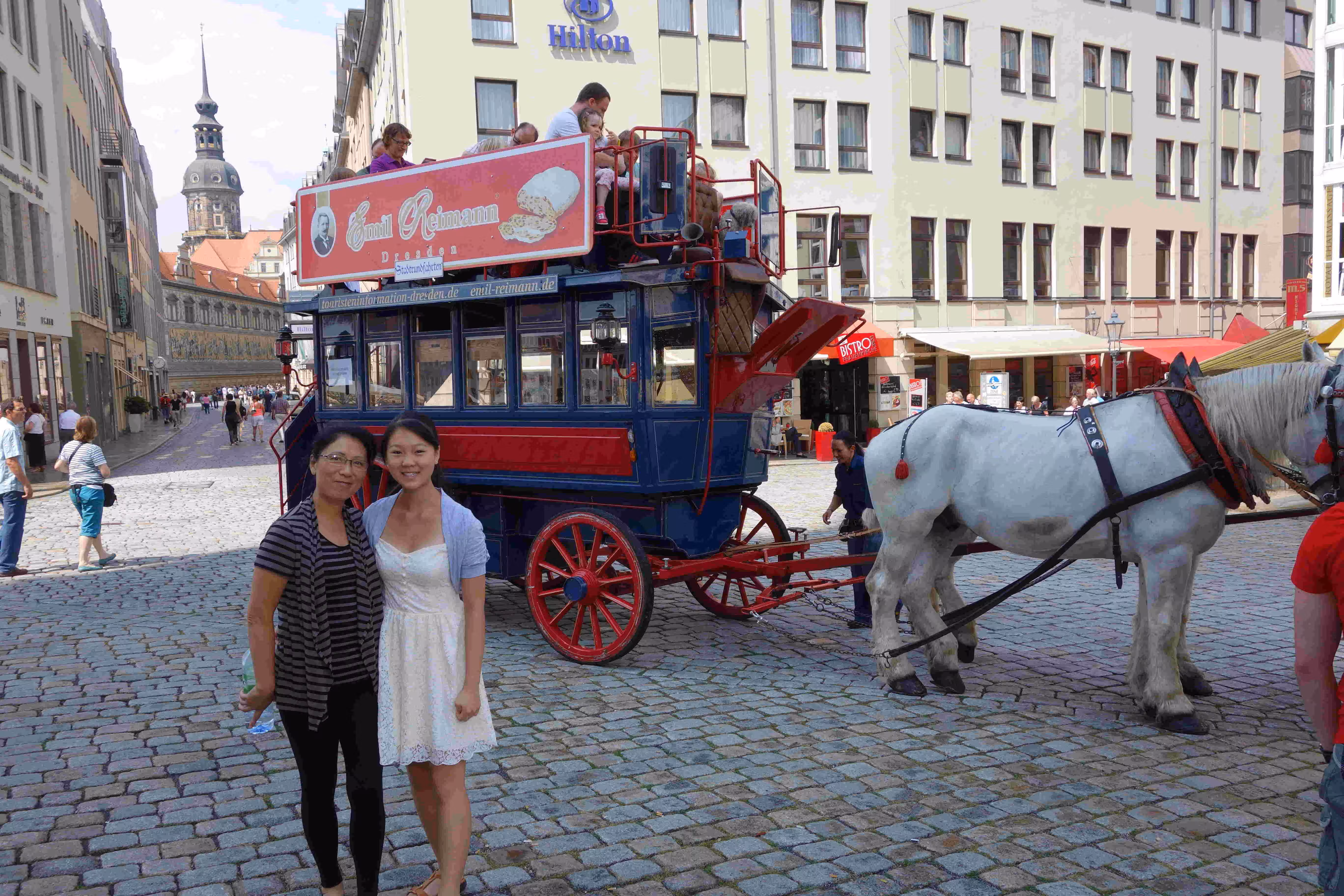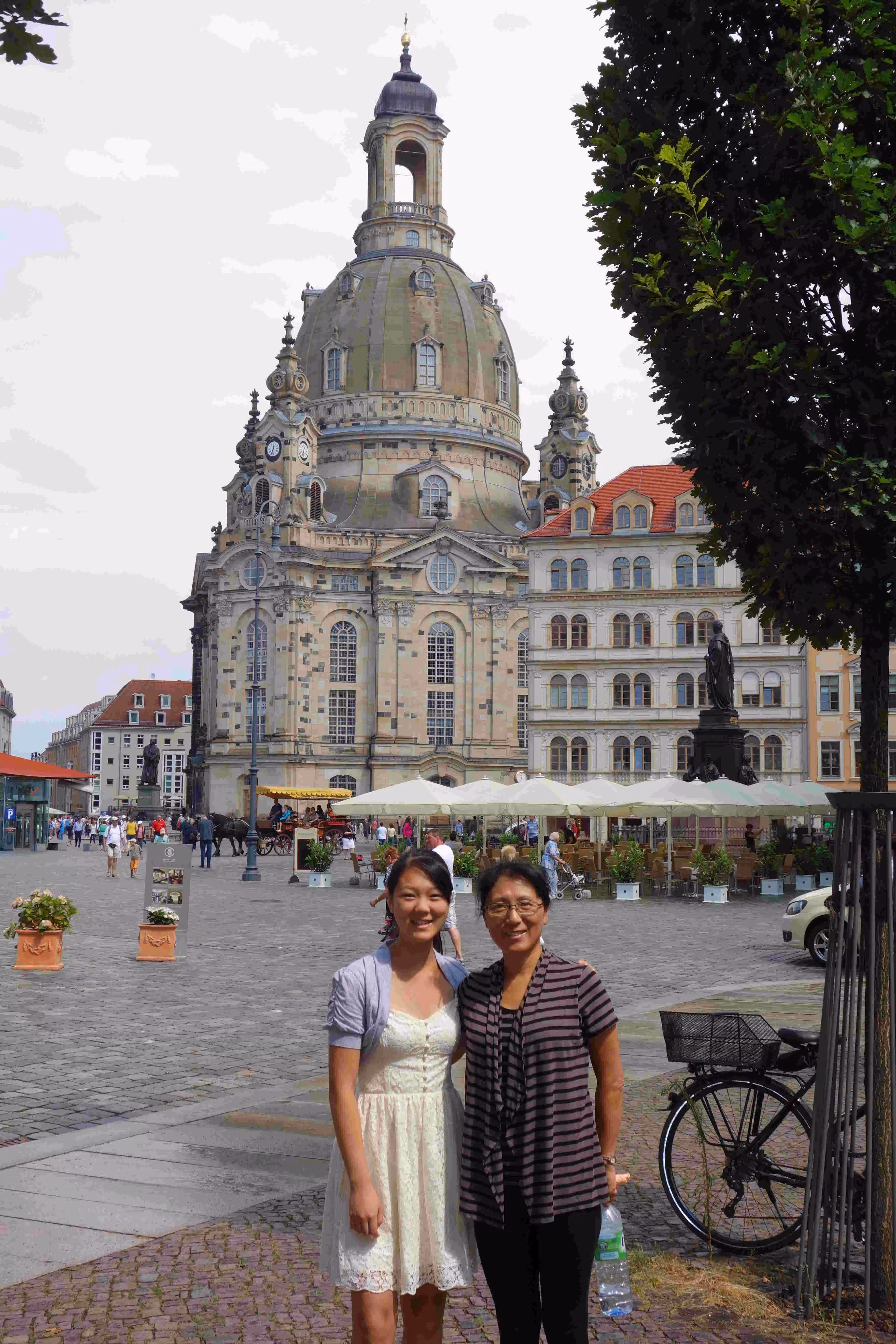 This morning I woke up quite early and headed to the hotel lobby’s computers to make some hotel reservations for Munich. Back at the room, I fell asleep for a few more hours. Later, Jenny and I headed to Starbucks for some coffee and free WiFi to help with some travel planning. We went for a light breakfast at a near by coffee/bakery shop. We walked and visited the historical sites of Dresden. Back at the hotel, we had some sausages on a bun again. Jenny and Victoria went for some more shopping while I ventured out on a bicycle rented from our hotel. Surprisingly it was difficult to purchase water along the stores lining-up the pedestrian street in our hotel neighbourhood. In the evening, we stopped at a nearby Italian restaurant for our evening meal. I accidentally broke Jenny’s beer glass towards the end of our meal.