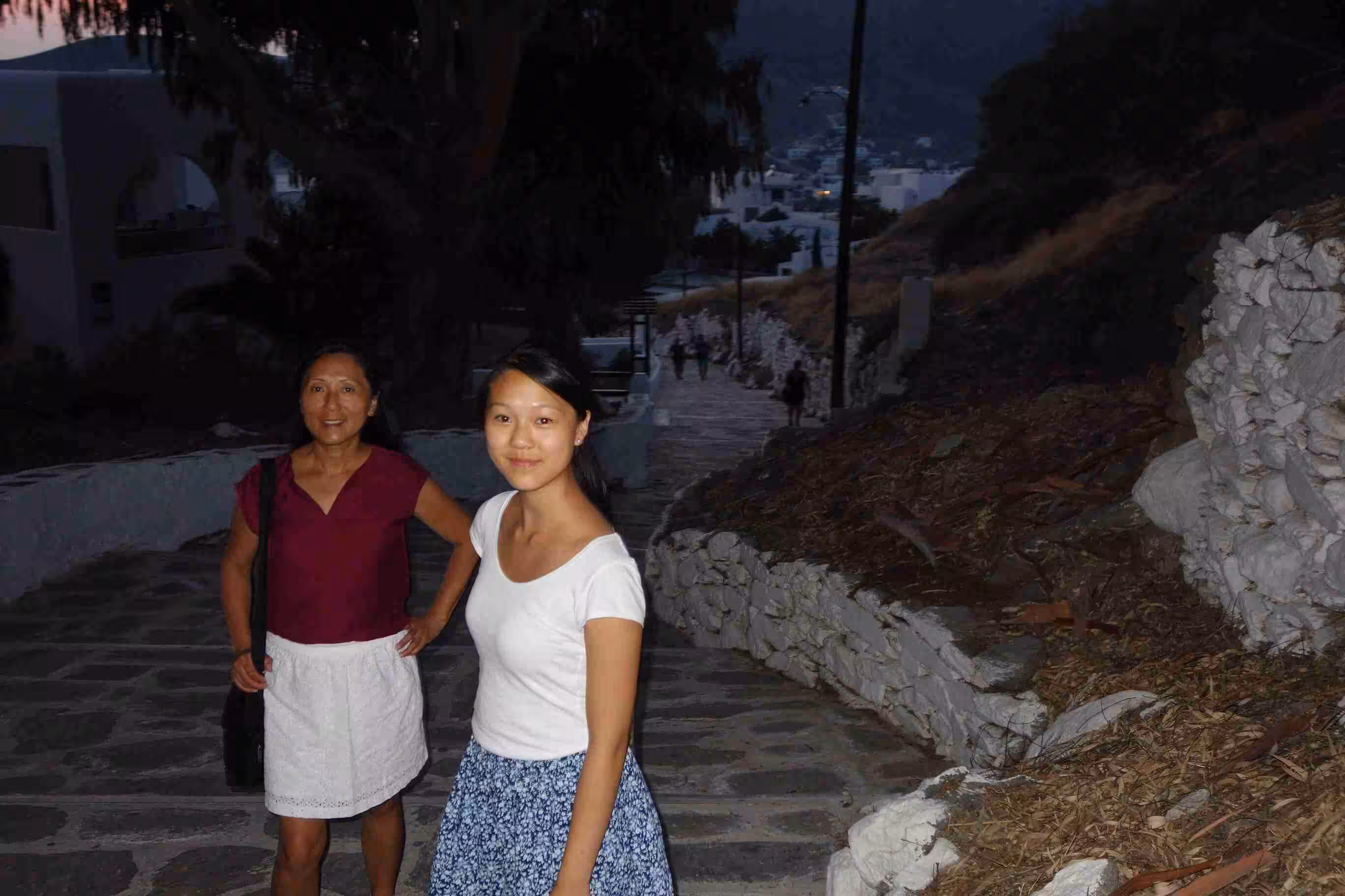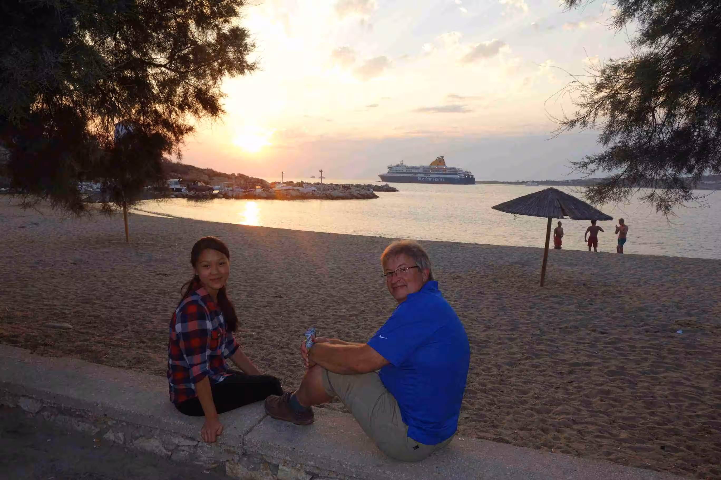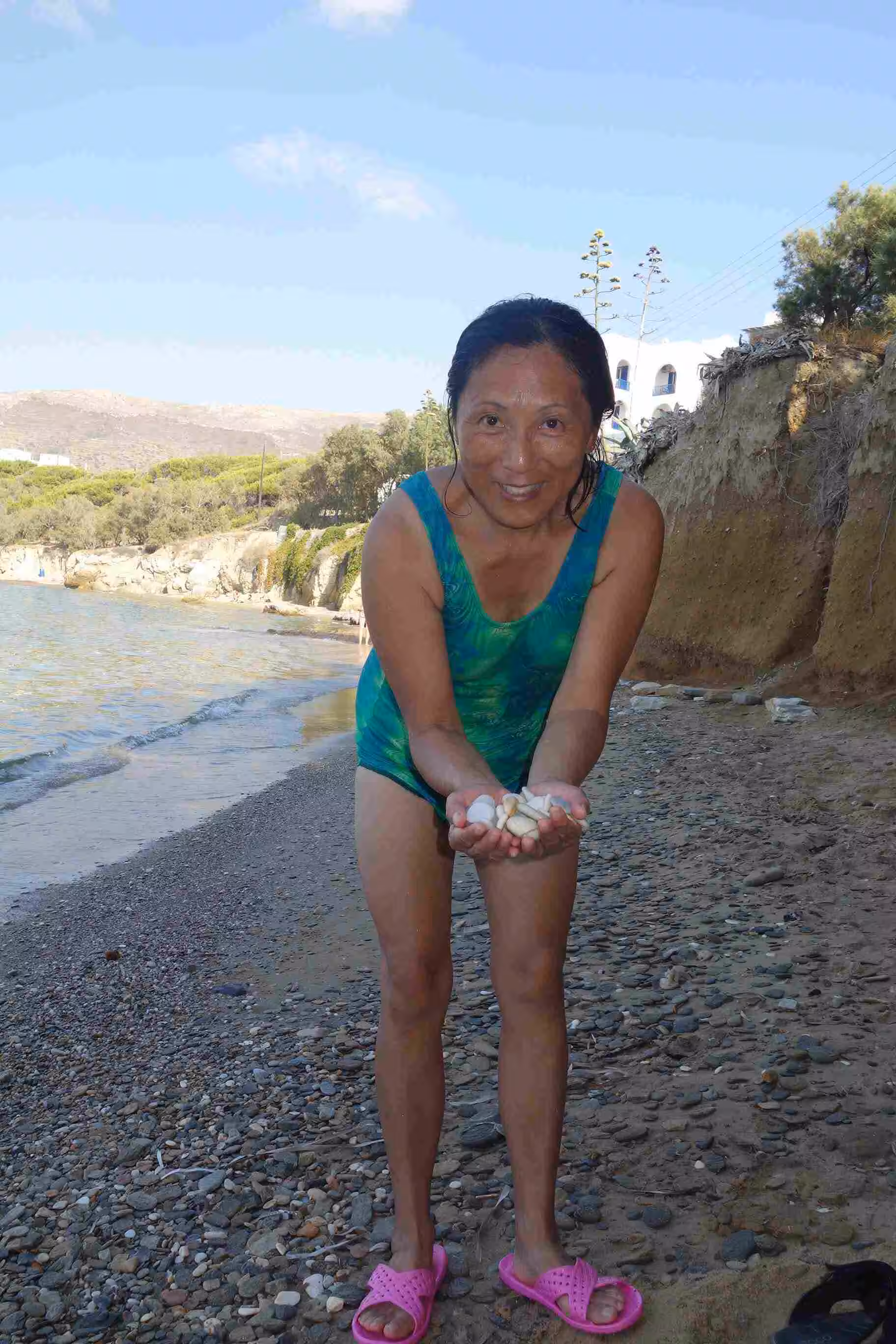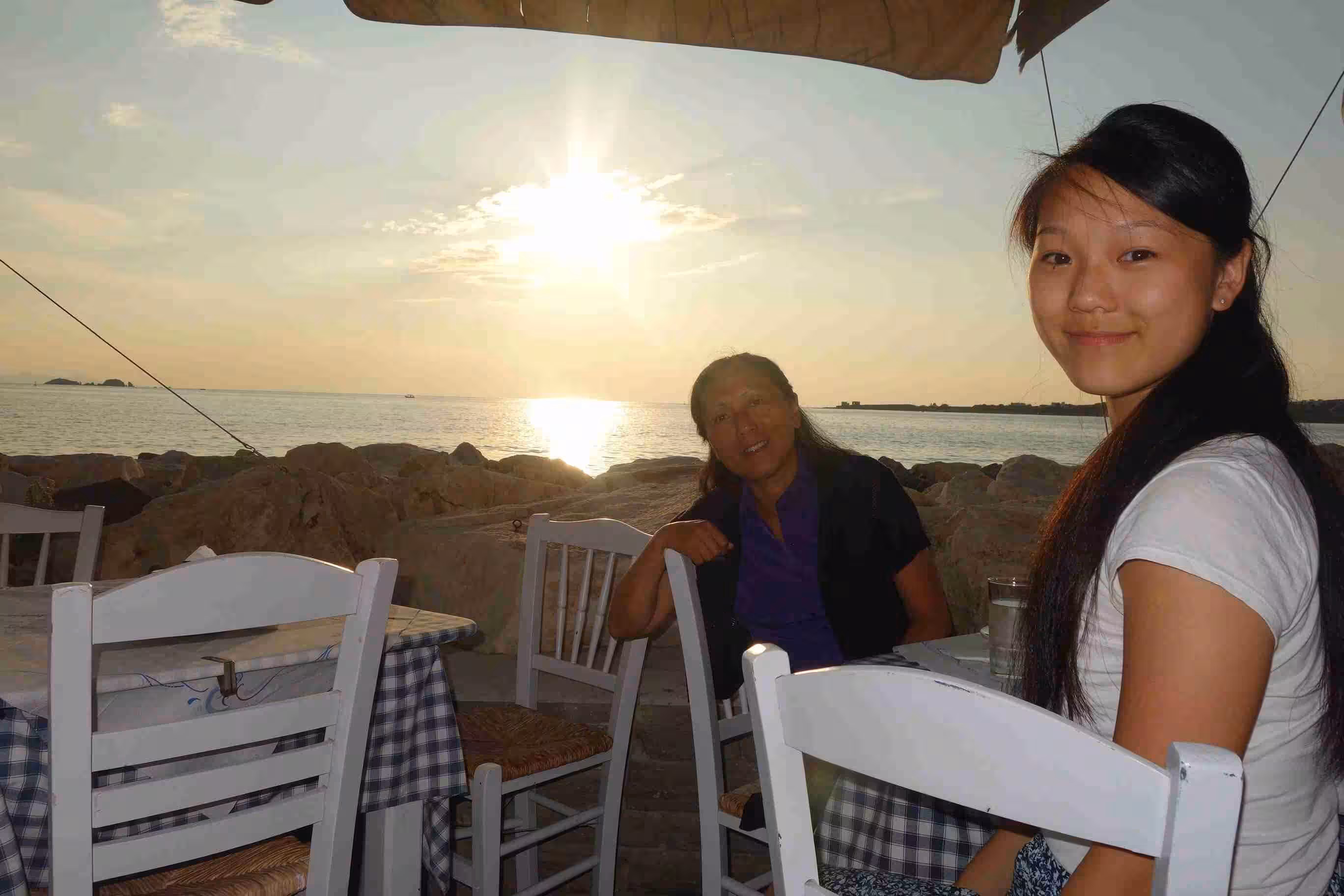 Jenny and I walked to the bakery this morning while Victoria continued to enjoy some sleep. We spent quite sometime on our balcony which provided a partially view onto the sea. At some point Dina called our room to see whether we wanted our room serviced. We welcomed the offer as our small washroom needed some attention. Later we headed back down to our (almost) private small beach for some swimming and pebble treasure hunting. Later in the evening, we made our way to the Taverna for supper. We enjoyed yet again a beautiful sunset evening. Later, we walked around the town’s many narrow alleys before returning to our hotel. A very nice relaxing day in Paros.