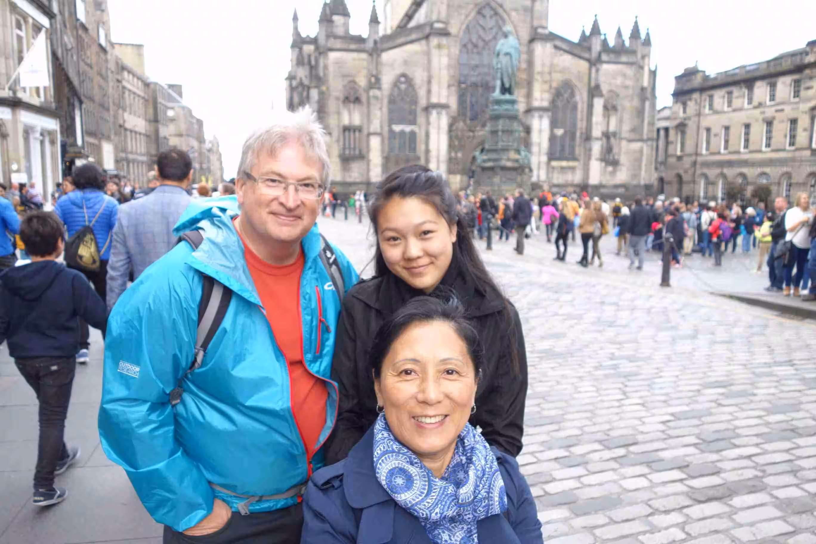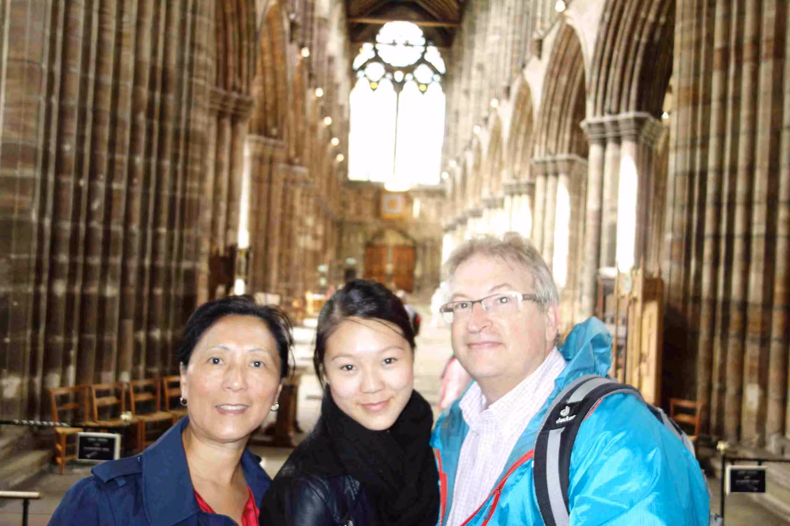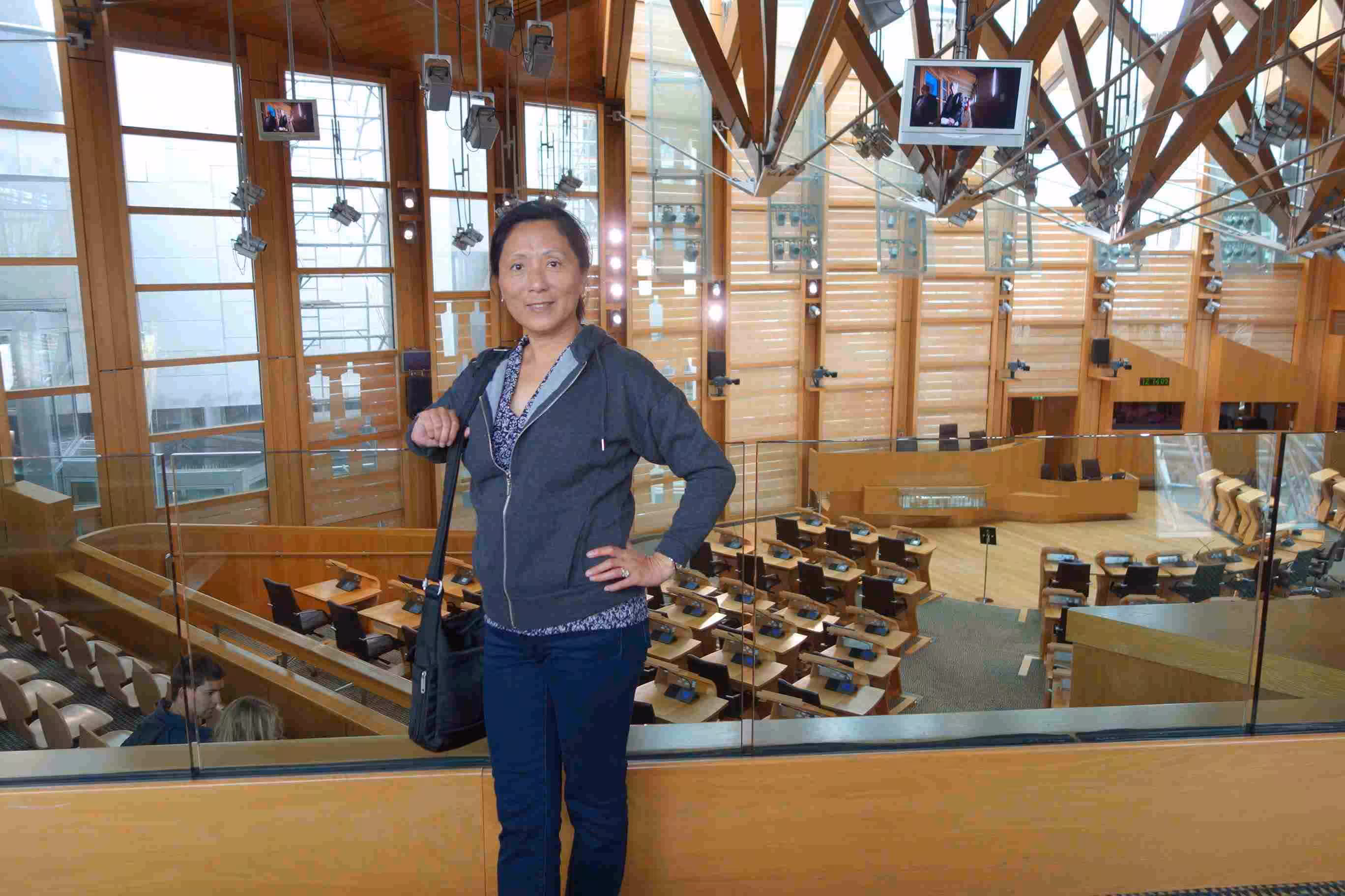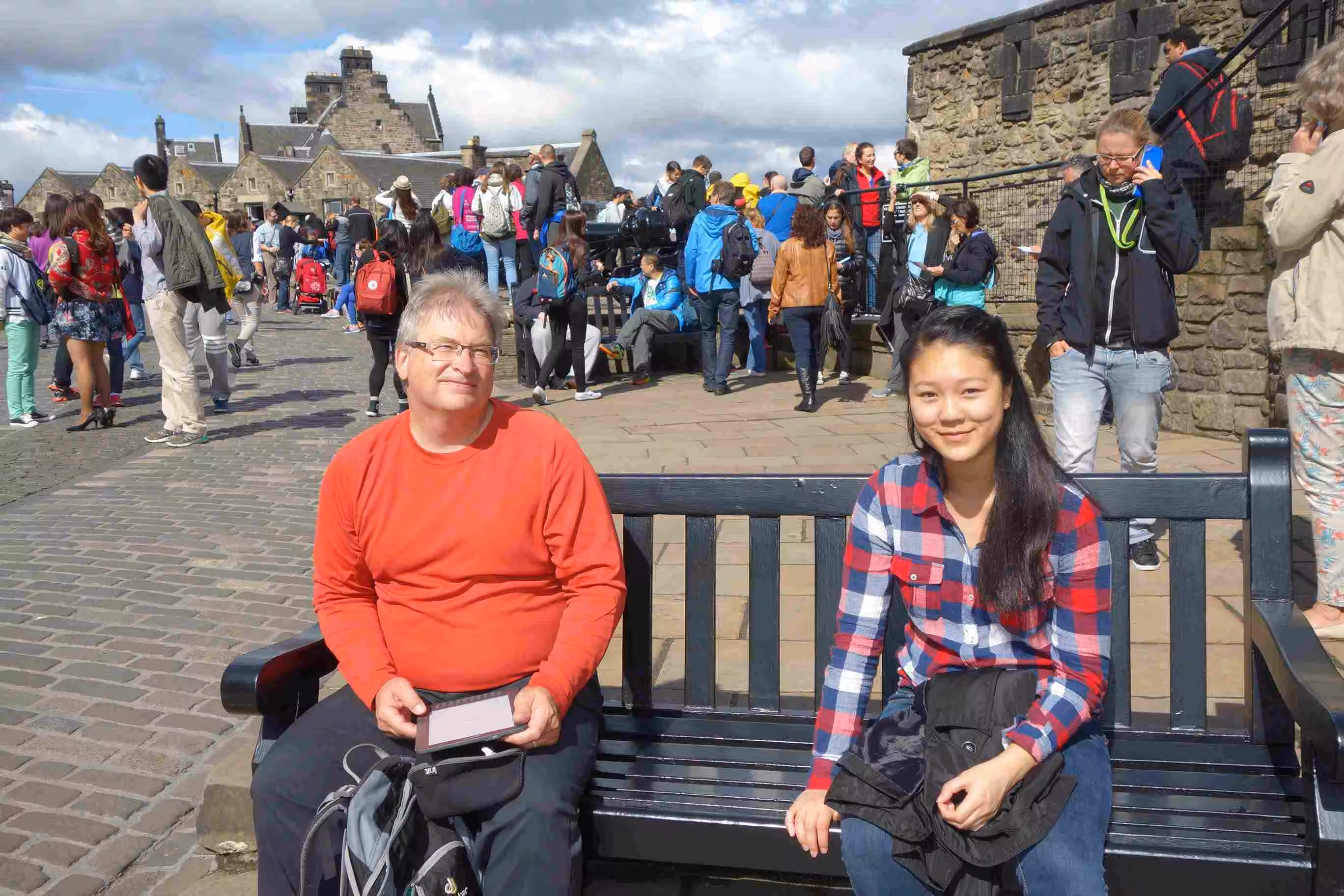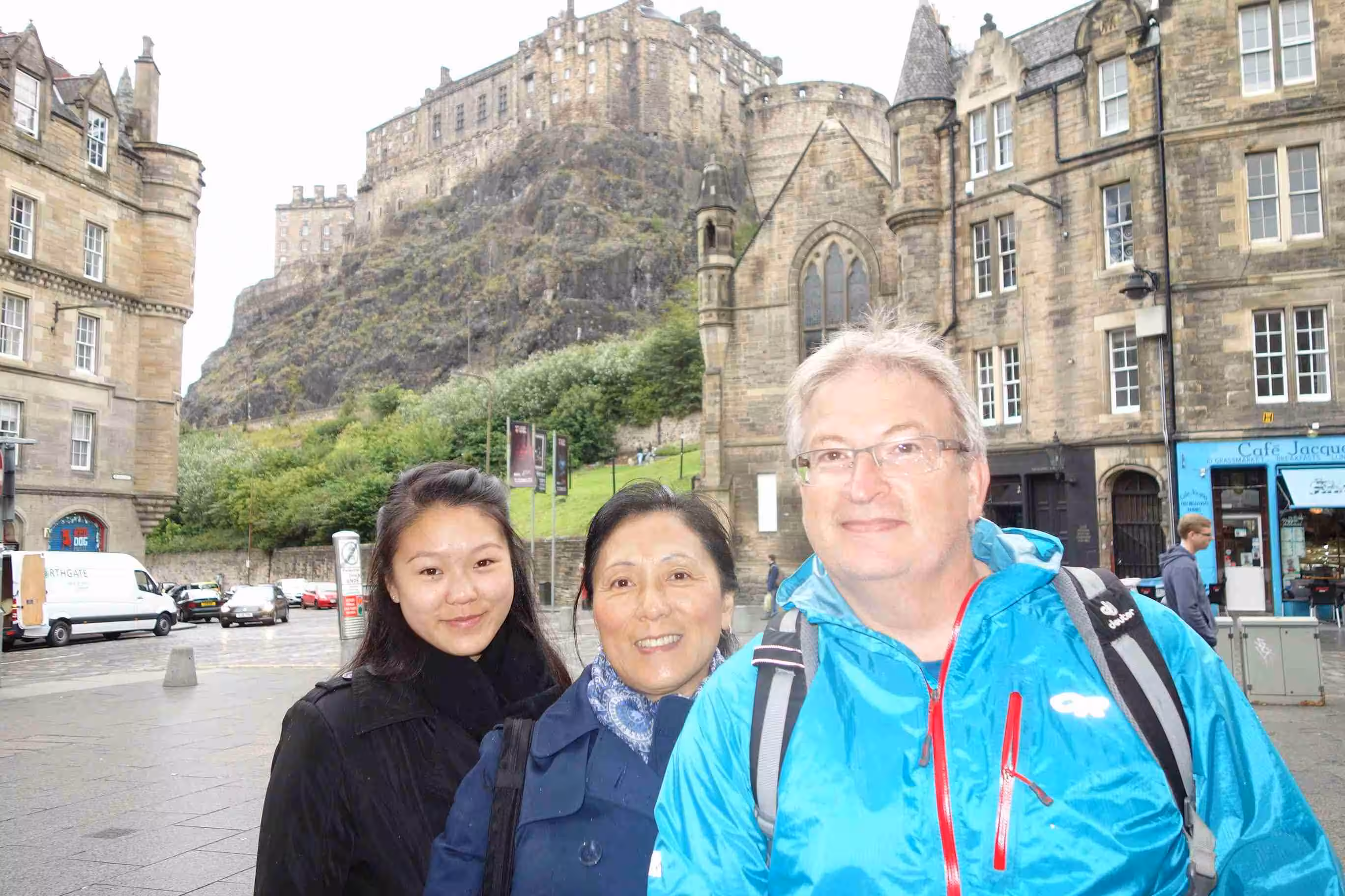 This morning we bought again an all-day family tram pass and headed into the city center. We struggled a bit to find a place offering breakfast after 11am. We finally stopped at a tiny cafe for our breakfast. We continued our exploration with a brief visit of the Scotland Government building. Jenny failed in her attempt to join a guided tour. Afterword, Jenny and Victoria visited the Queen’s official residence in Scotland, Palace Holyroodhouse while I hiked the mountain hosting Arthur’s seat. I enjoyed the walk up the mountain and took a few pictures from the top. Jenny and Victoria also enjoyed their visit of the Palace. We decided for an impromptu visit of the chapel highlighted in the Da Vinci Code book. Our all-day tram tickets allowed us to hop on the city bus to Rosslyn, a nearby village. Jenny truly enjoyed the ride on the bus’ second level. We arrived at the chapel at 5:00pm thinking that it would be closed but we were relieved when we found out that it only closed at 6:00pm. The place was almost deserted. We eavesdropped on a guided tour. We were fascinated by the popularity of Dan Brown’s book which boosted the number of visitors from 26,000 in 2002 to 5 times that number in 2003 after the book’s release. Back in Edinburgh, we stopped for supper at a Chinese restaurant. We took full advantage of our tram ticket today as we headed back to our hotel.