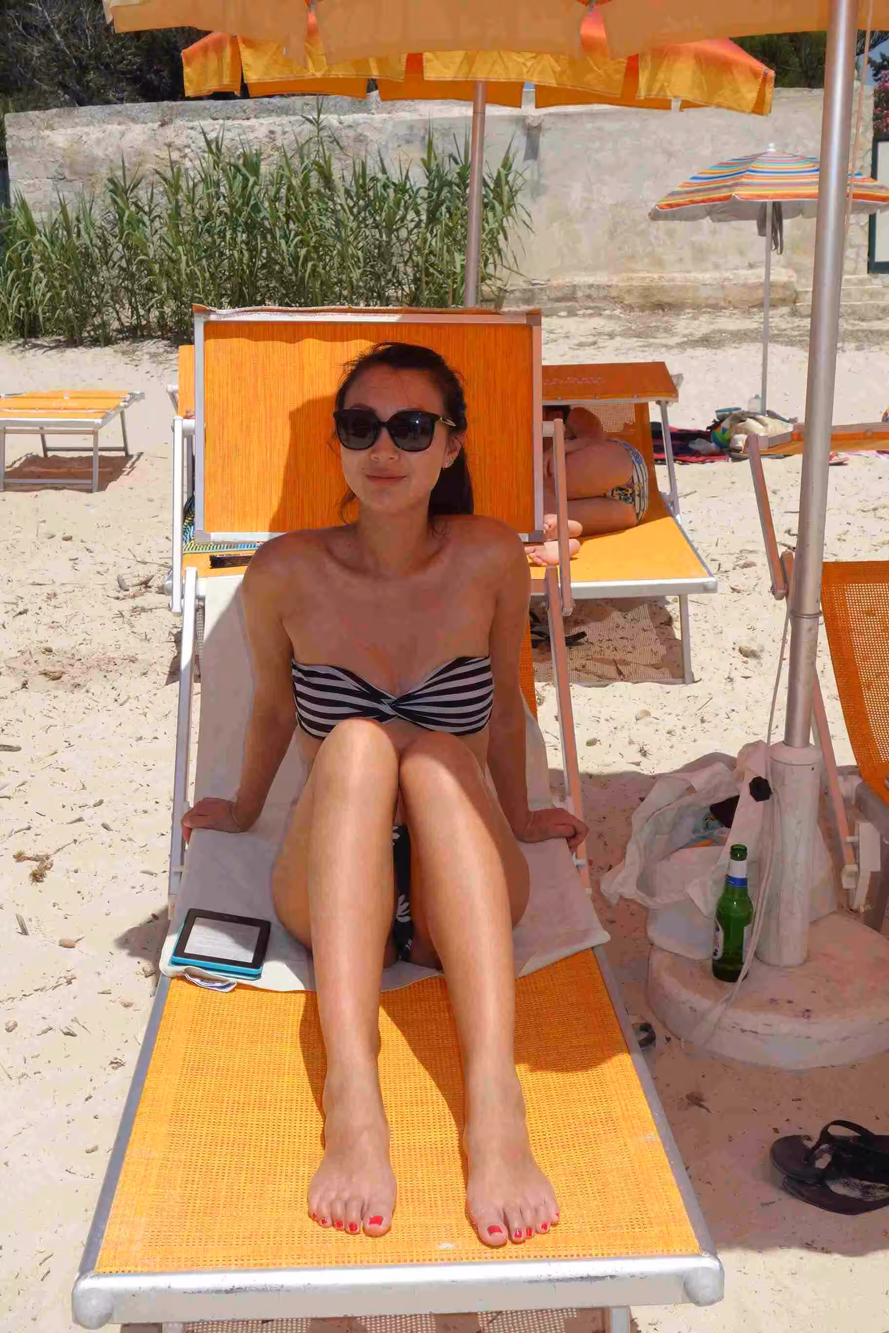 We opted to head out to the beach again. Given yesterday’s local beach experience, we decided to invest a bit more into today’s beach destination. According to the travel guides, the best beaches were on the Egadi Islands, namely the island of Favignana. We showed up at the Trapani’s docks to purchase our hydrofoil tickets to the island. Unfortunately, we could only get one-way tickets for the 12:20pm sailing as all the returning journeys for the rest of the day were sold out. We were recommended to purchase our return journey on a ferry boat – which we did while waiting for our hydrofoil departure. Shortly after arriving on Favignana, it seemed we had stepped in a different world – one where the bicycle was king! Everyone seemed to be cycling on the streets – most of them heading to the beach as the landscape was quite flat there. Jenny secured a car ride for us after walking into a shop and trying to ask the owner where we could get a taxi to the beach. Although the owner did not speak one word of English, he quickly offered to drive us to the beach for 10 euros. After agreeing, the shop owner simply closed his store and gave us a ride aboard his Suzuki. We asked him to pick us up later in the afternoon for our ferry back to Trapani. The asking price for beach chair and umbrella rentals kept on surprising us – nonetheless this afternoon we managed to get a great deal 8>) !