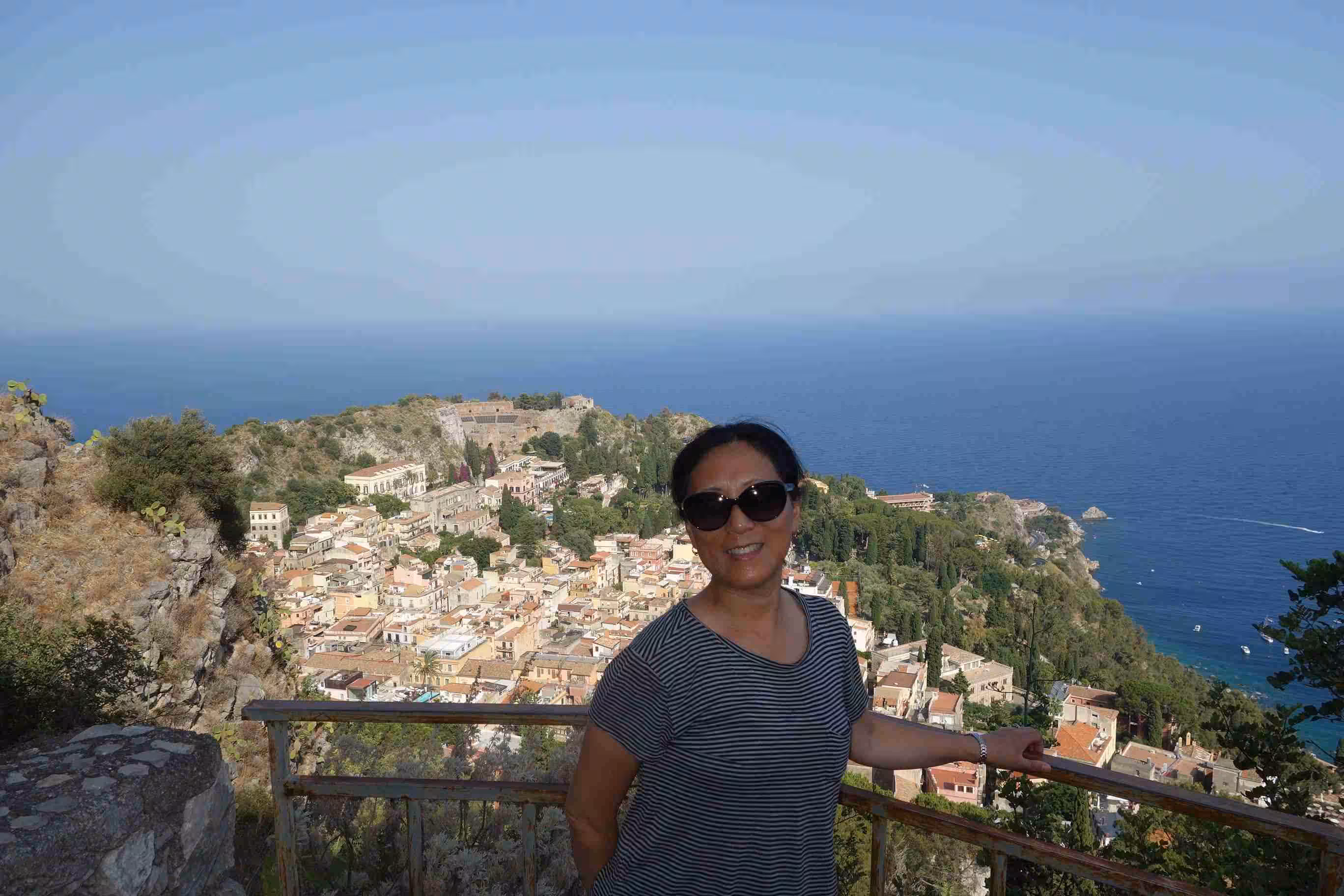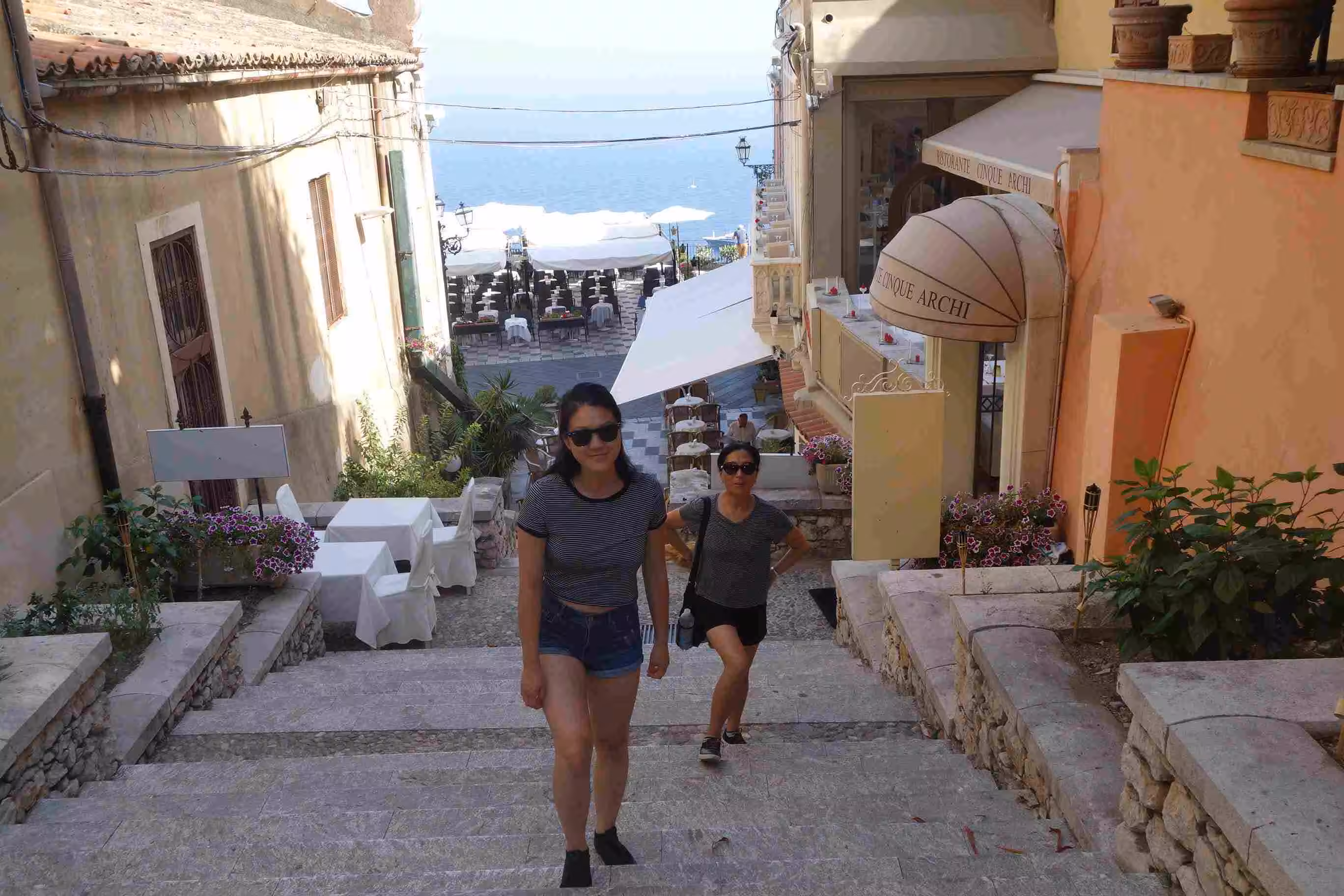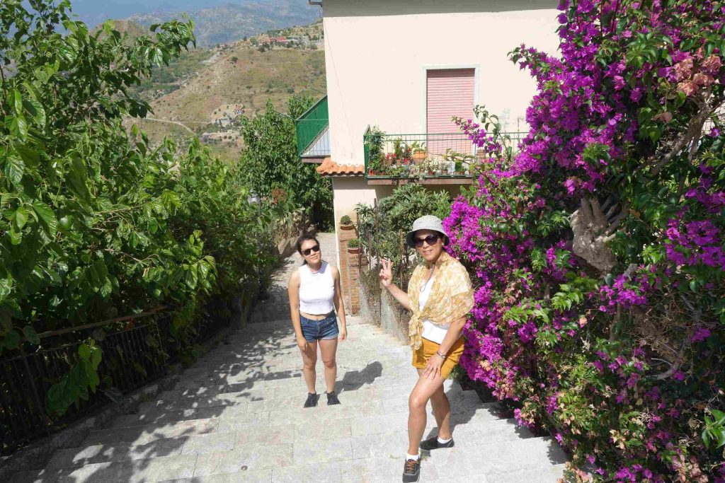This morning’s B&B breakfast consisted in a business card to a nearby bar which provided us with coffees and croissants. We realized that the bar was mid-way to the apartment we would be staying at for the next four nights. Jenny was eager to meet the “Tao Holidays” apartment owner as Tao sounded Asian and she could possibly make new friends along the way – until we made the connection that “Tao” is short for Taormina. Better luck next time Jenny!