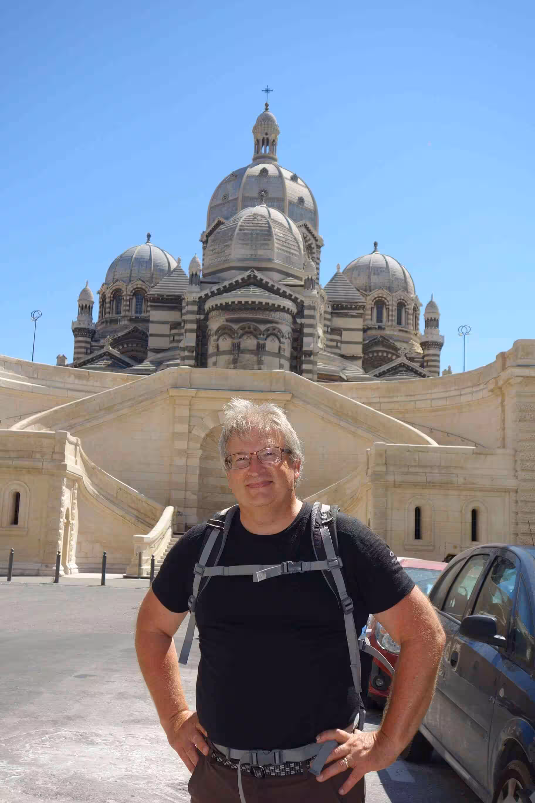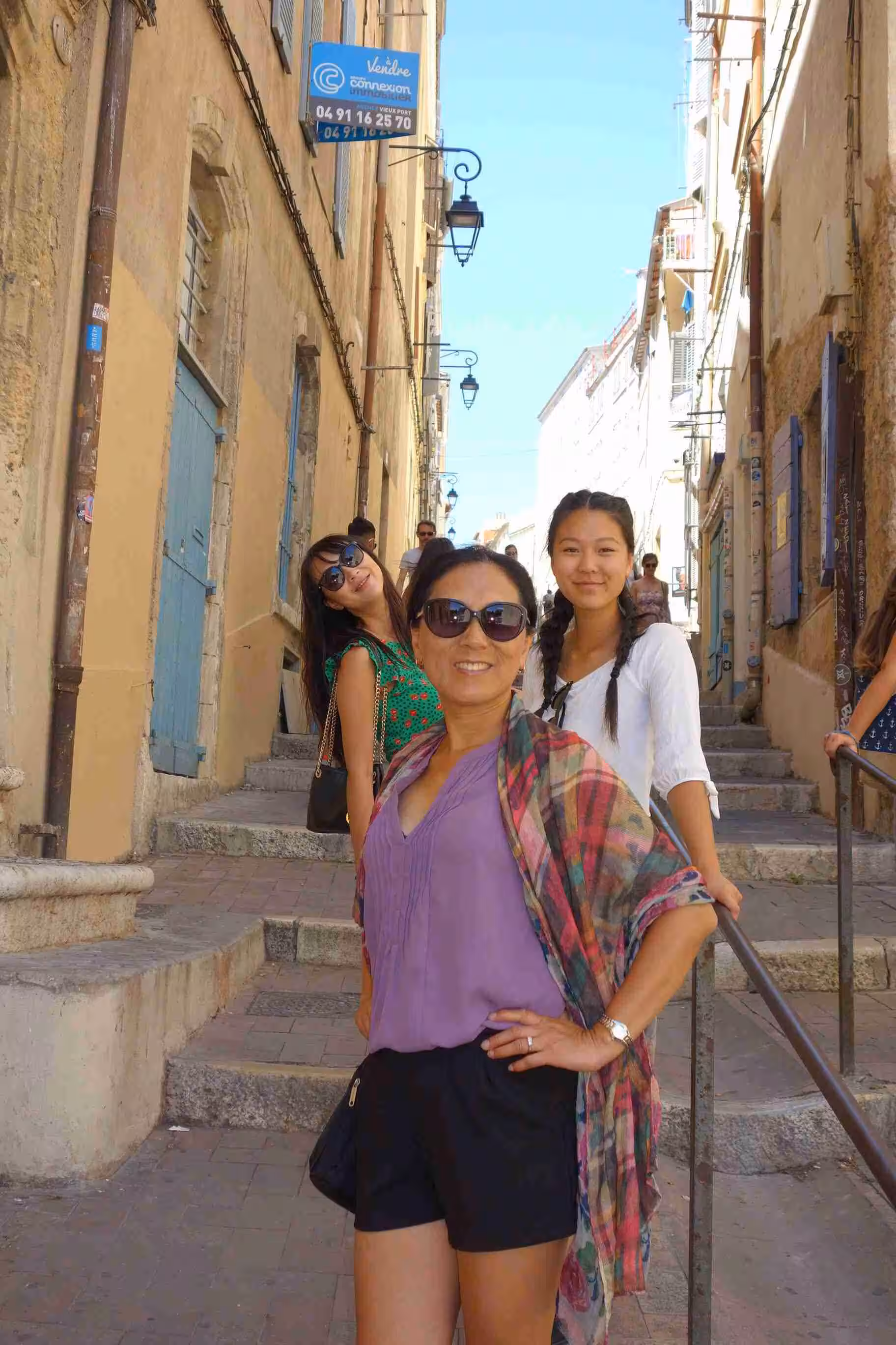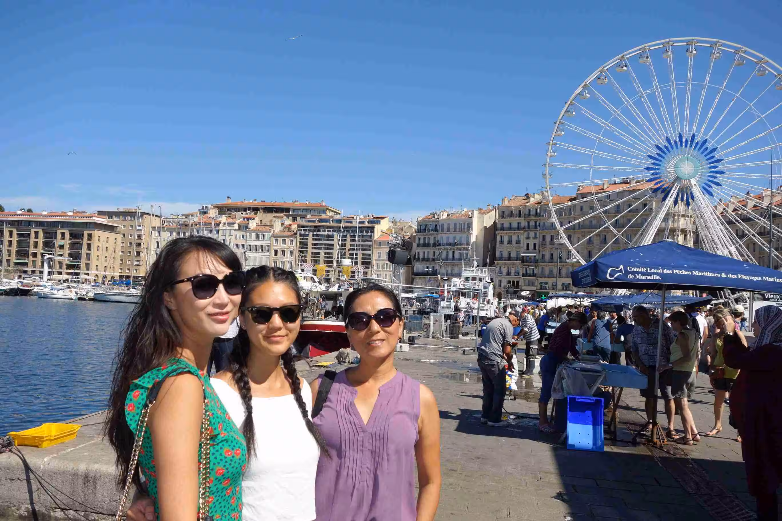 After a nice breakfast at our Ibis Style hotel, we headed out to explore the city equipped with some daily transit passes. We started our visit at the Vieux Port (Old Port). We later hopped on a bus to tour the Basilique Notre Date de la Garde perched on top a hillside of Marseille. Back in the Vieux Port, we headed for a stroll through the old part of town called Le Panier. We had a long and very enjoyable lunch at a neighborhood café. Late in the afternoon, we headed back to the hotel for a rest. We noticed in the metro that some disruption in service would be taking place at night due to the re-scheduled fireworks that were postponed yesterday as part of France’s Bastille Day. Late evening, we took the metro to the closest station to the Vieux Port which was still accessible to folks wanting to see the fireworks. We stopped for an evening meal along a pedestrian walkway dotted with restaurants. Although we were several blocks away from the Old port, the launch point of the fireworks, we managed to enjoy quite a good display of fireworks while we were eating our pizza and sipping wine.