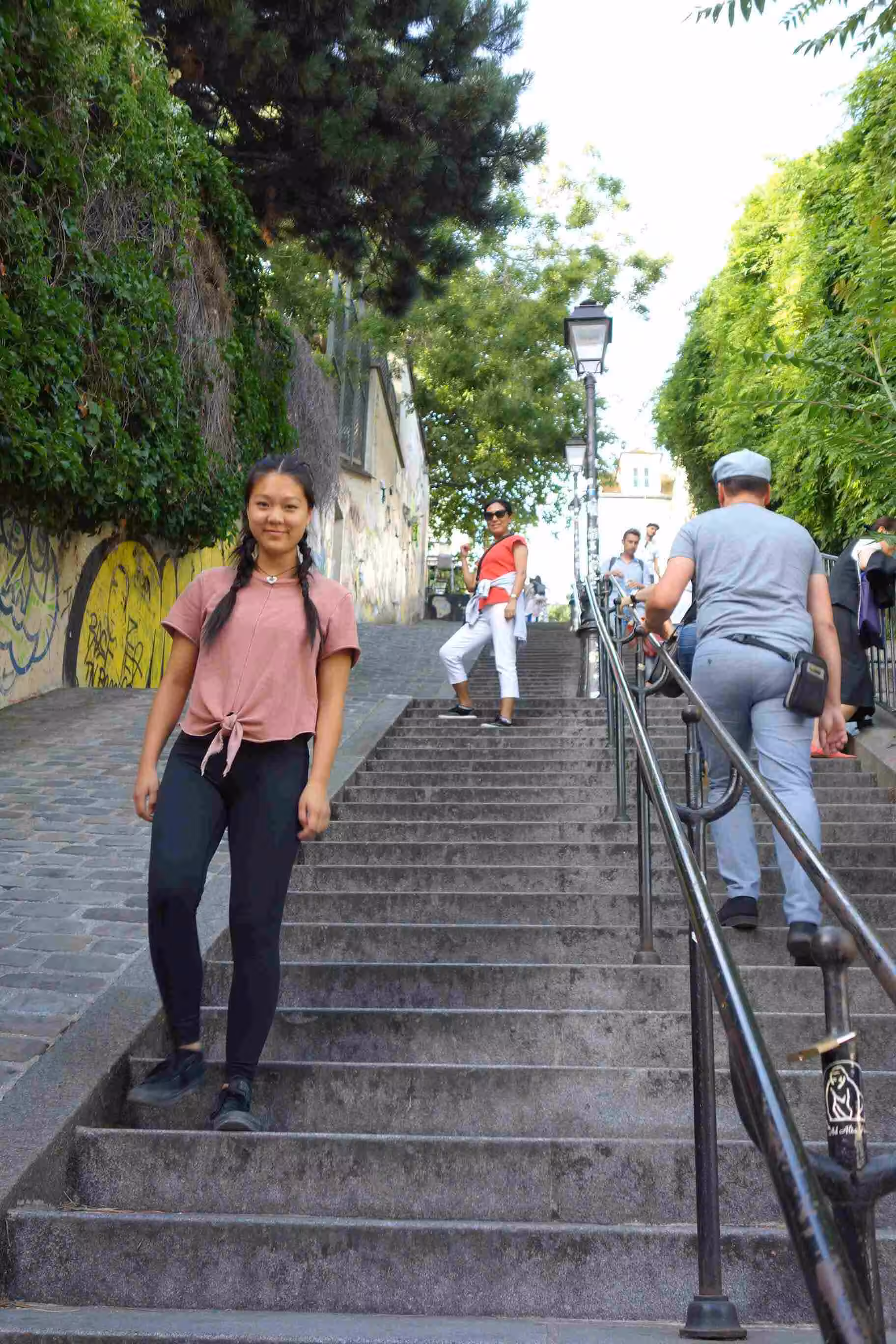 We took another two trains, an hour each, into Paris. Upon our arrival, we made our way to our cozy apartment in the Montmartre neighborhood – aka 18ième arrondissement. After coming out of the metro, we started to walk towards our apartment address just to realize that we would be staying at the top of the neighborhood. Unfortunately, there was no way to avoid a series of long staircases to get to our very artistic area of Place Tertre. The square was a host to several dozens of artists ready to draw a caricature or portrait of anyone and everyone. We struggled a bit to meet up with our apartment owner, nonetheless we connected. We realized that the Booking.com was not kidding when it described the apartment as cozy – somewhat of an overstatement.