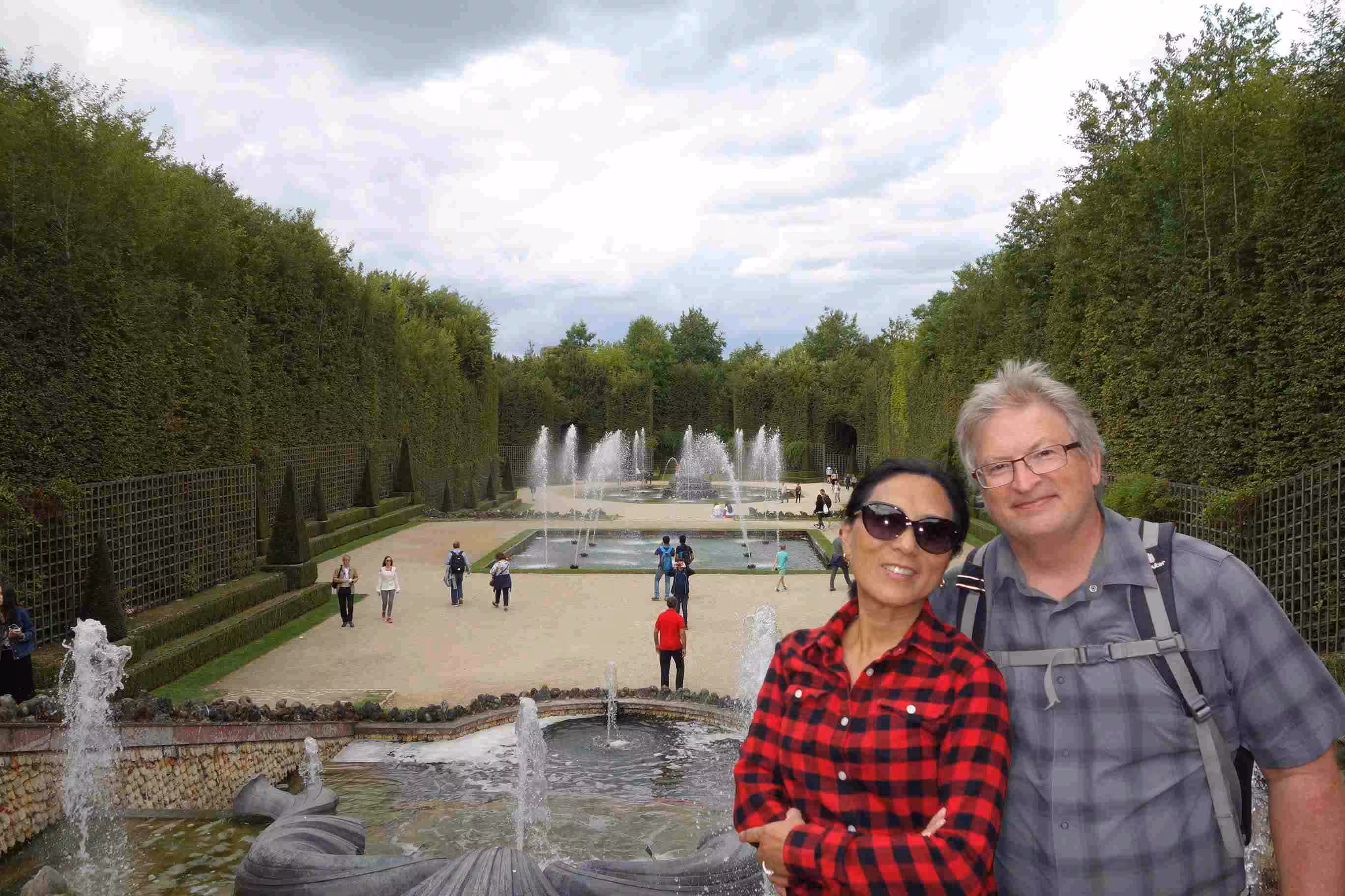 In an attempt to avoid long queues at Château de Versailles, we aimed to get there early. We had a very early breakfast in our apartment and started our metro/bus journey by 8am. After two metros and a long bus ride, we managed to arrive at Versailles by 9:40am. Upon our arrival, we were simply astounded by the long line-up. Unfortunately as we bought our tickets on-line yesterday, we were now committed to our visit of Versailles. During our one and a half hour wait for the entrance to Versailles, we concluded that the long queue was mostly coming from the many dozen of tour buses dropping off their passengers. After the usual security control into the building, we opted to visit the washroom but gave up due to the long wait. Instead we walked out of the building in order to start our visit of the extensive gardens – over 800 hectares. We enjoyed walking the gardens and discovering several dozen amazing fountains which were, exceptionally on our day of visit, shooting water while classical music was playing throughout the grounds. We spent over seven hours visiting the palace grounds. Before our departure, we inquired from staff on how to proceed to visit the Château. We learned that visitors were expected to visit the Château before the gardens, and that we needed to queue again outside – a queue which was still fairly long. We finally managed to convince the entrance attendant that we had missed the Château’s visit because of our attempted washroom visit. Shortly after being allowed to enter the Château we almost regretted it as we felt like cattle being driven from one empty castle room to the next – totally drowned in a sea of tour bus visitors. We were relieved after some 30 minutes walk-through of the famous Château. Thankfully, our long stroll in the gardens made this day trip worthwhile. And, according to Victoria’s iPhone, we even broke our trip record for distance covered with some 15 kms.
