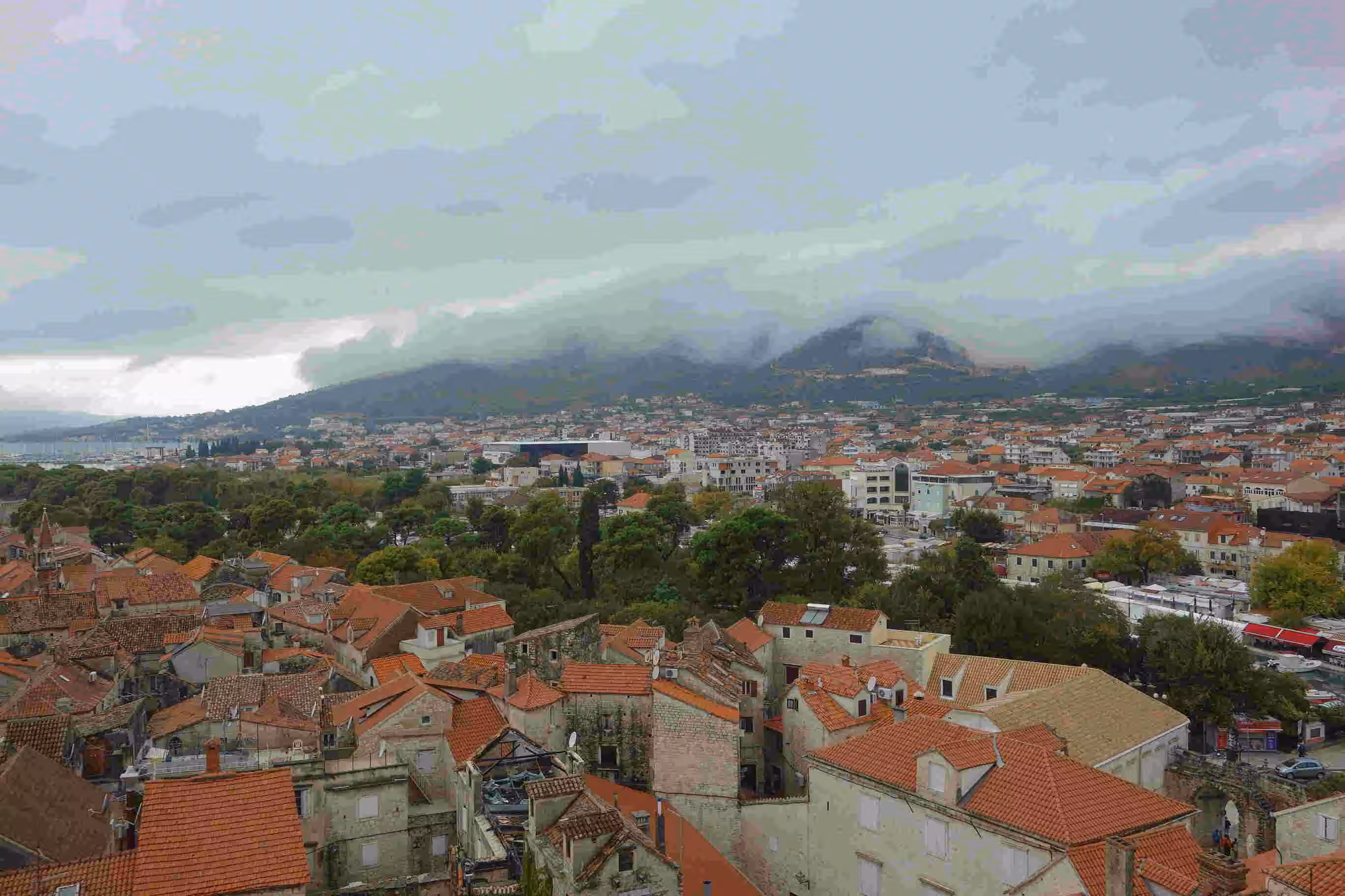 2018.10.05 – Zadar – Split (Croatia) – After a light breakfast at one of the many cafes lining the cobblestone alleyways, we returned to our apartment to strap on our bags for the long walk to the bus station. On our arrival there, we were surprised by the number of folks waiting near the bus platform. We were relieved when we saw that our bus was a double decker. The 2.5 hour bus ride to Split was not as enjoyable as our previous bus ride as this bus did not take any coastal route. It opted for the highway offering very little scenery. The Split bus station was located across from the city’s very busy harbor – overflowing with cruise ship passengers. We walked a short distance to our apartment where the friendly owner was already waiting for us. As our apartment was equipped with a small kitchen, we opted to buy some groceries to handle our breakfasts over the next couple of days. We had a quick walk through the remains of the ancient palace built for the Roman Emperor Diocletian. Unfortunately, the place was overrun by tourists, souvenirs shops, restaurants, boutiques and bars. We opted to continue our exploration by hiking up to the nearby Marjan Forest Park to some lookouts offering great views on the town of Split and its surroundings as well as the Adriatic sea. We had our evening meal at a nice and cozy local pizzeria.