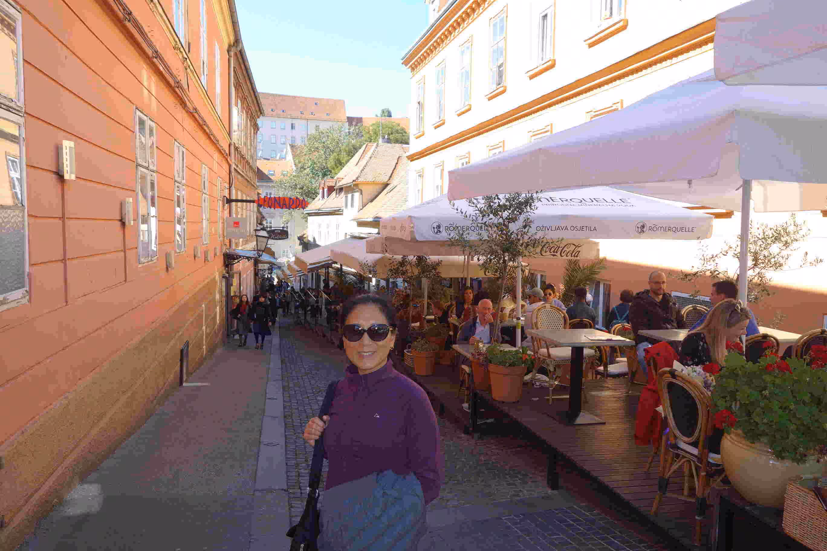 The processing by the Croatian immigration was efficient and quick as our flight appeared to be the only one at the time. We visited a bank machine before exiting the airport. We easily located the shuttle bus meant to bring us to the downtown bus terminal some 19kms away. Once at the bus terminal, we opted to walk to the train station with our backpacks. It was a much longer walk that we had expected (~20 mins). We easily secured train tickets for our next travel segment to the capital city of Slovenia, Ljubljana. We introduced ourselves to Zagrebโs tram service and boarded one which brought us to our accommodation where we would be staying for next two nights. After walking up two floors, we discovered that our apartment reception was only open from 2pm to 8pm. We opted to wait 30 mins at a nearby cafe. We managed to check-in on time. We had a delicious evening meal at a nearby grill restaurant that had been recommended to us. Our first impressions of Zagreb were very positive. We seemed to notice on the streets a lot of younger folks everywhere. We guessed by now, given our retirement status, that most people look younger than us! Smoking seemed to be very popular and even trendy โ ash trays were everywhere and patios were overflowing with smokers.