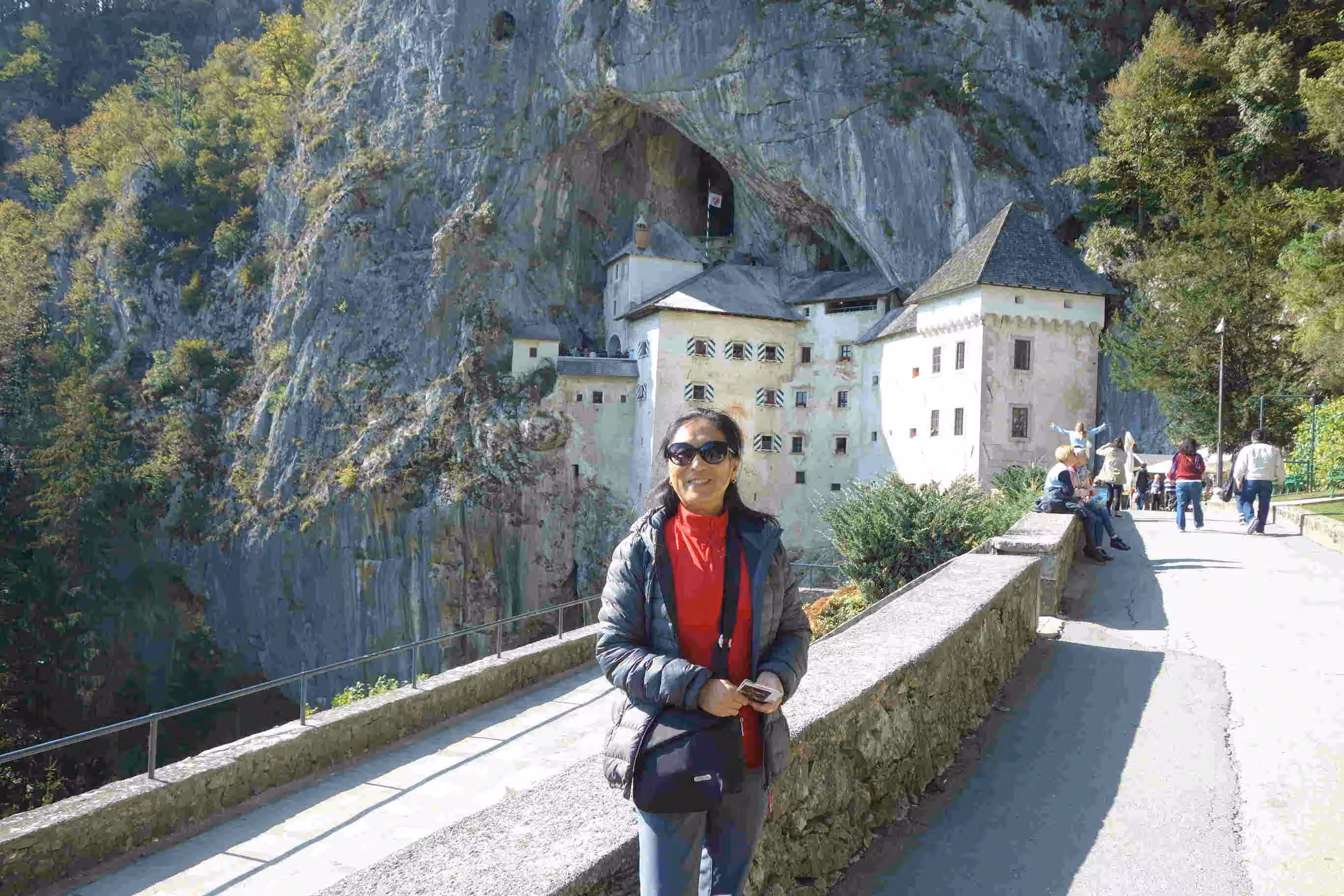 2018.09.29 – Ljubljana (Slovenia) โ We had a filling breakfast at our hotel before making our way to the bus station. We purchased tickets and boarded the bus with many other tourists headed to the cave some 50 mins drive away. At the Postojna bus terminal, a small group of folks walked the 1.5 kms to the caveโs site. Along the way, we made clear our interest to visit the castle and our willingness to share a taxi with anyone else interested. Our online purchase allowed us to skip the longer ticket queue. The cave visit brought us up to 5 kms into the caveโs 25 kms network. A small electric train of 100 passengers covered the first 3.2 kms. Everyone was impressed by the size of the cave as well as its rather well preserved state. At the end of the cave visit, those interested to visit the castle regrouped and requested a taxi from the ticket office. We were six to board a mini-van taxi for the 9 kms drive to the Predjama Castle, which held a Guinness record for the largest cave castle (possibly the only one!). We managed to complete our visit and get dropped off at the bus terminal in town for the 4:10 pm bus back to Ljubljana. Back at hotel, we rested a bit before heading out again for our evening meal. We enjoyed once again strolling along the pedestrian streets boarding the river.