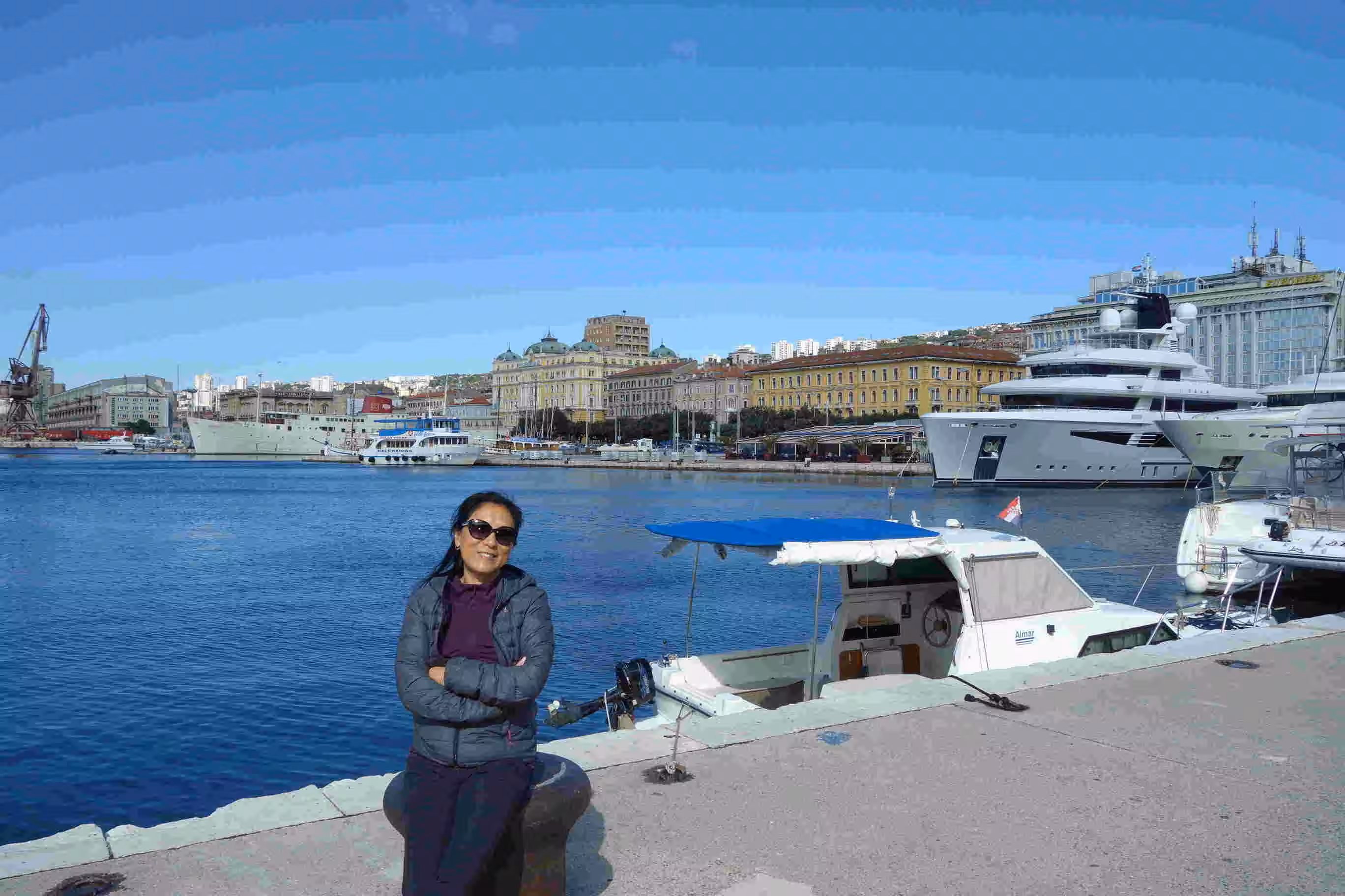 2018.10.01 – Ljubljana (Slovenia) – Rijeka (Croatia) โ We had a late start in the morning. We skipped the breakfast in lieu of a lunch. After leaving our luggage with the hotel reception, we headed out, one last time, to explore the city streets. We stopped at cafe along the way. We had our lunch meal at a Mexican restaurant. The city was much livelier on a weekday. We later picked up our luggage at the hotel and walked to the train station. Although we showed up a full hour ahead of time, we almost managed to miss our train. As we waited on a bench at our scheduled train platform, we noticed a train on the track which was scheduled to leave in 20 mins. Unfortunately, we did not realize until 5 mins before departure that our train, a short three carriage train, was already on the track at the other end of the platform facing the other direction. Jenny sprinted with her backpack unto the train like never before. We managed to hop onto the train with a full 3 mins to spare. We had an entire carriage compartment to ourselves. We recognized that the trains here were clearly not as modern as those weโve used in Western Europe โ no power/usb outlets, no food carriage, etc. One of the nice things about traveling was that it forced us to brush up on our geography and history. Over the past two days, we spent a fair amount of time reviewing both to realize that all the countries on our travel itinerary, except for Greece, were part of the former Yugoslavia โ duh! We were expecting a similar immigration processing at the border between Slovenia and Croatia as we had encountered on the way from Zagreb to Ljubljana โ except that we did not get an Croatian entry stamp in our passports. We hoped we would be allowed out of the country when we traveled further to our next country: Montenegro. We arrived in Rijeka shortly after 6:00pm and walked briskly to our reserved accommodation. The apartment owner was waiting for us on the pedestrian street. We were quite pleased with the well located, large and well equipped apartment. We followed TripAdvisorโs and Lonely Planetโs recommendation for Rijekaโs top restaurant for our evening meal. Unfortunately, it reminded us of a meal in Milan โ pricey with small portions. We took advantage to the clothes washer in the apartment for our laundry as even Merino clothes needed to be washed at some point!