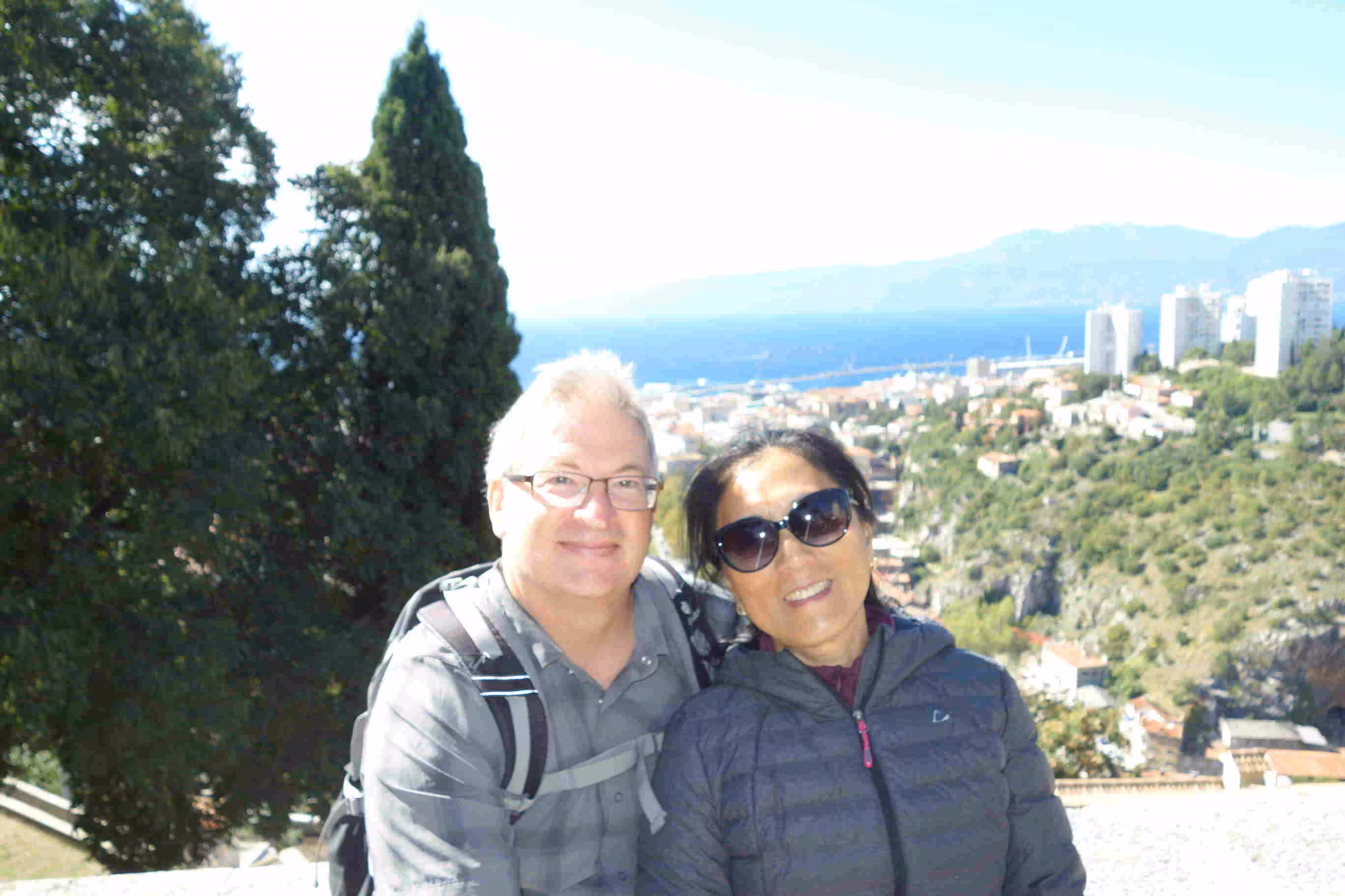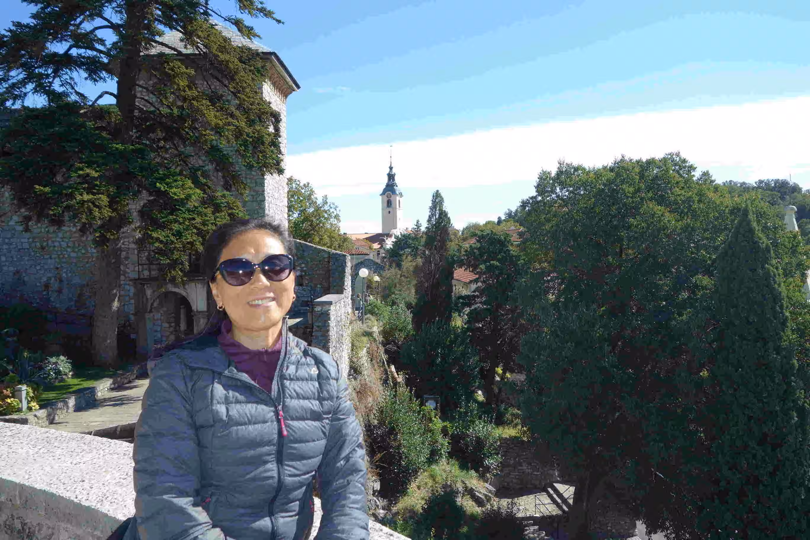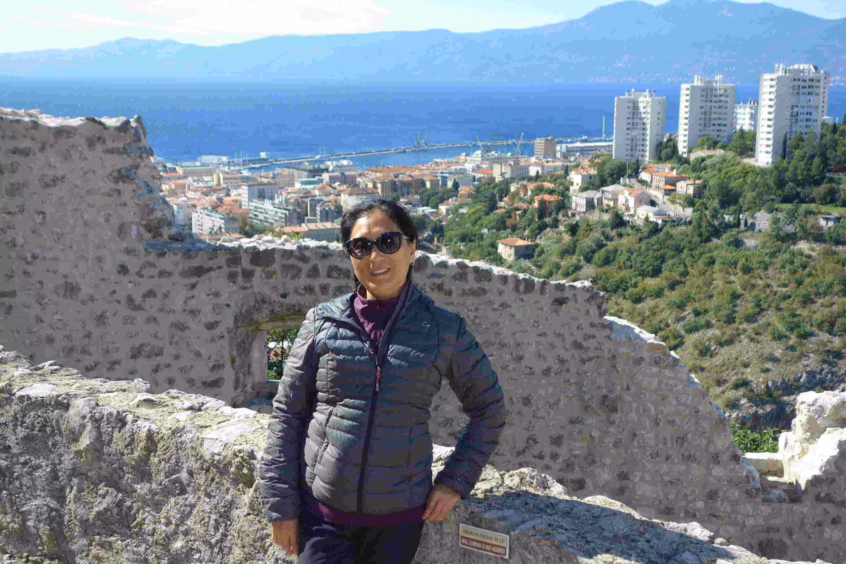 2018.10.02 – Rijeka (Croatia) โ In Croatia, the bakeries are everywhere. We bought some pastries from a bakery across from our apartment for breakfast. Our first task for the day was to walk to the bus station with the hope of securing bus tickets for our next travel segment. Although we discovered a website that allowed us to buy bus tickets online, it appeared that for some tickets they needed to have the tickets printed before we could board the bus. As we were not traveling with a printer, we thought it would be simpler and cheaper to buy our bus tickets directly from the bus station. Unfortunately, we discovered that it was not the case as in both Slovenia and Croatia it appeared the best way to buy tickets was directly on the bus. Since we still preferred to secure our tickets well ahead of the day of our departure, we had to accept the extra reservation costs. We bought a daily city bus pass and boarded a bus which brought us to the Rijeka castle at the top of hill overseeing the city. We greatly enjoyed the castle surroundings. The visit was even more enjoyable as it was free. Back in the city center, we visited another tunnel, similar to the one in Zagreb, that was constructed during WWII, and was meant to be used as a shelter during aerial bombings. We had our evening meal at a nice tapas restaurant.