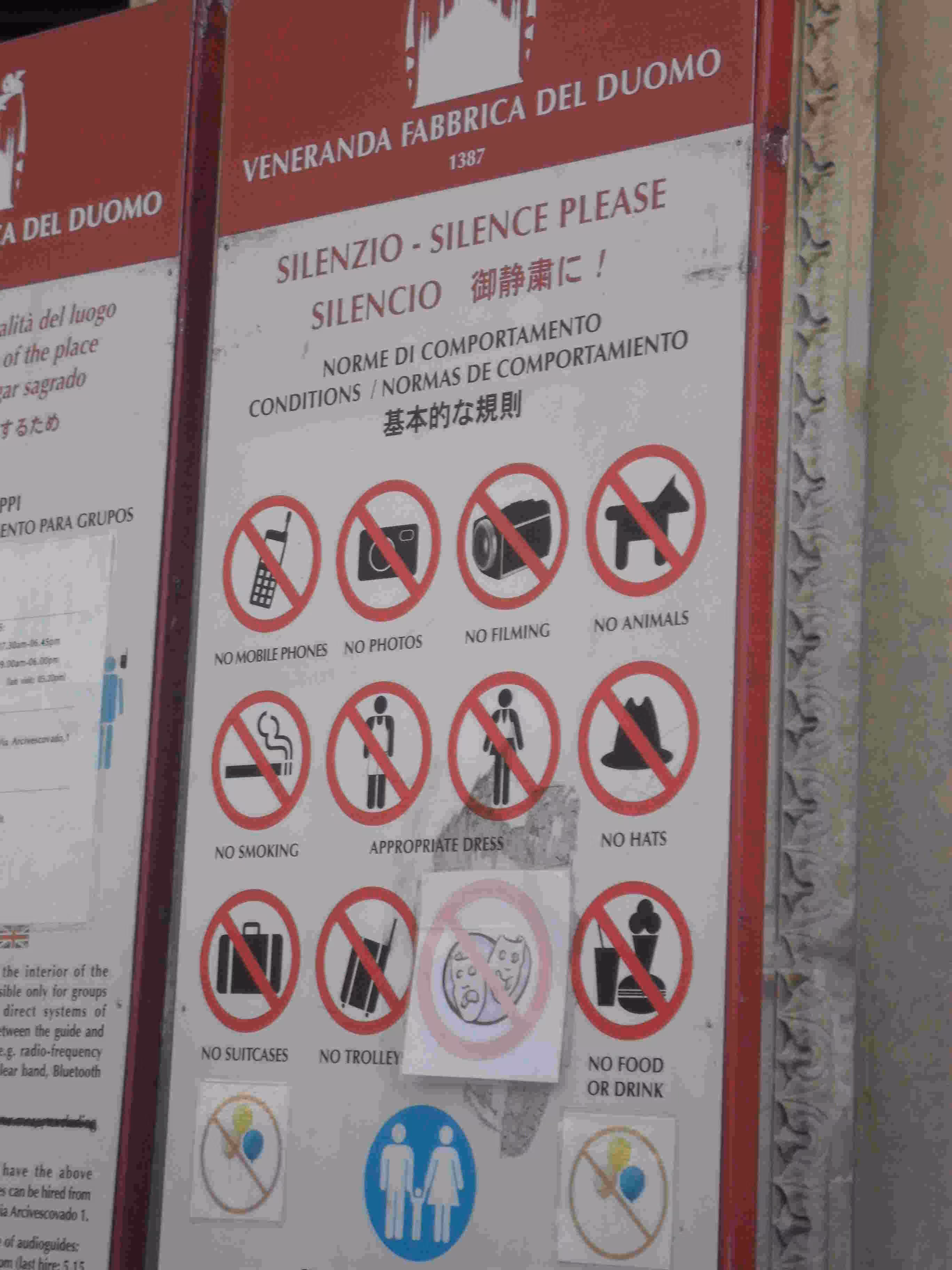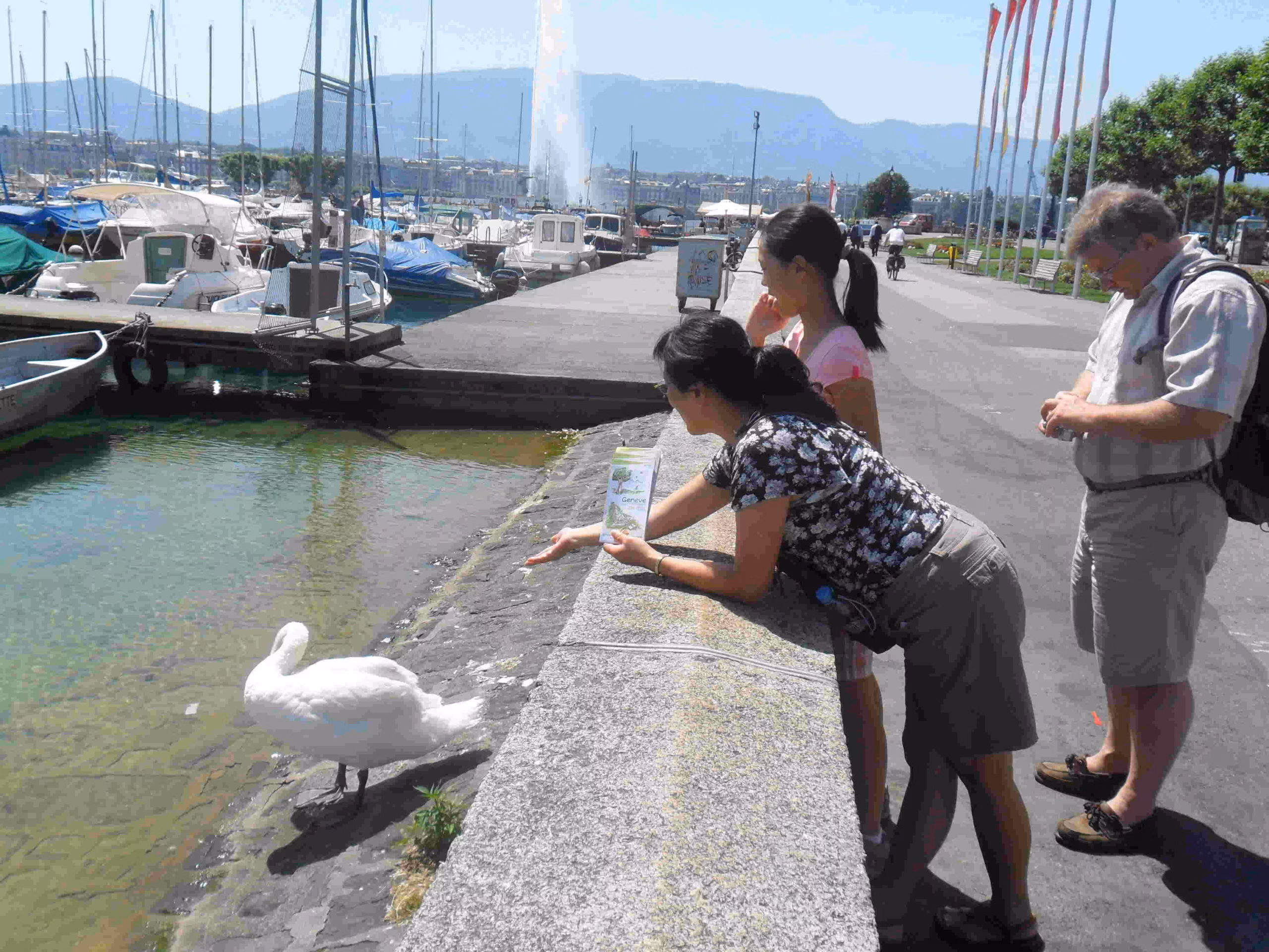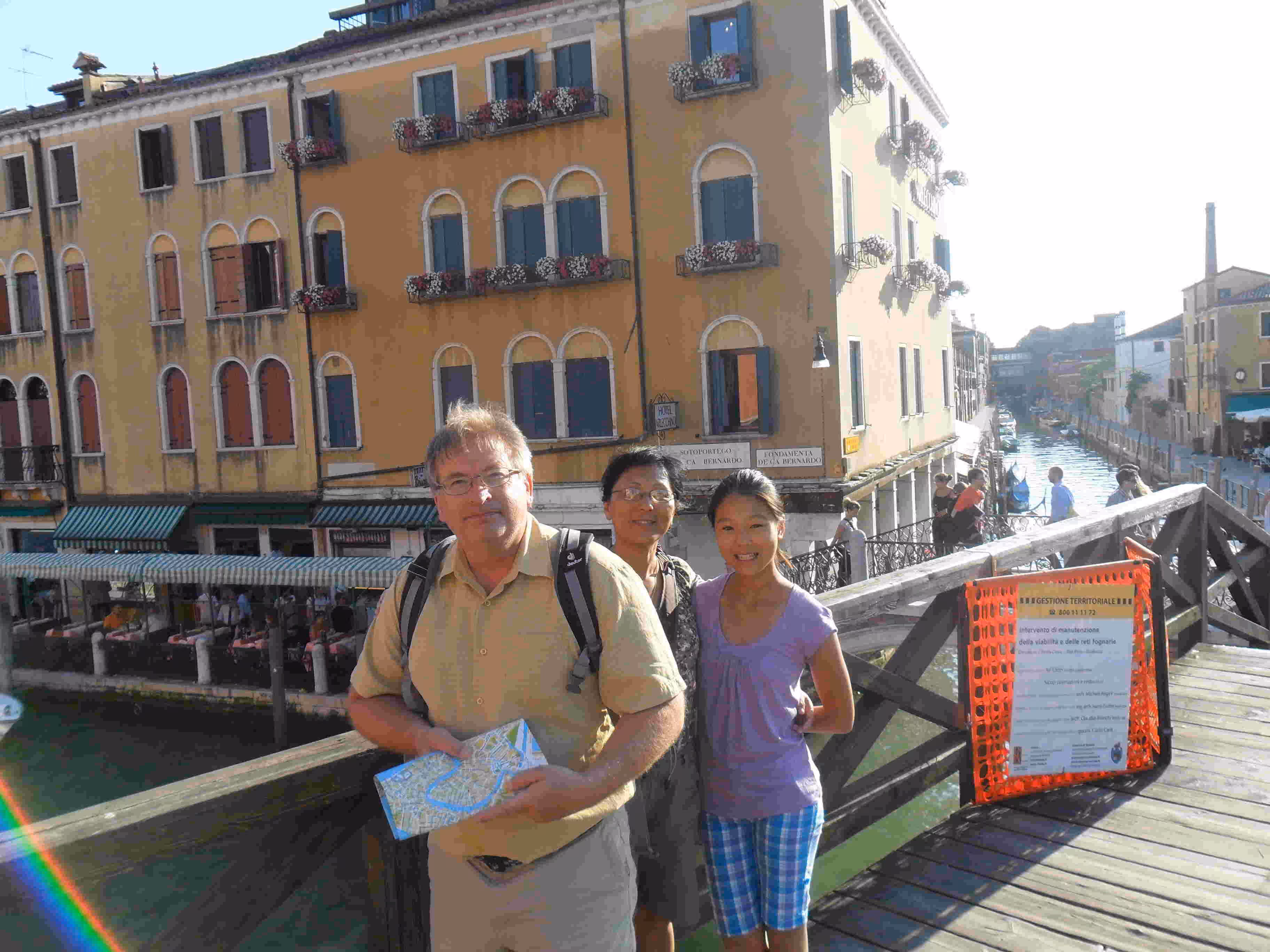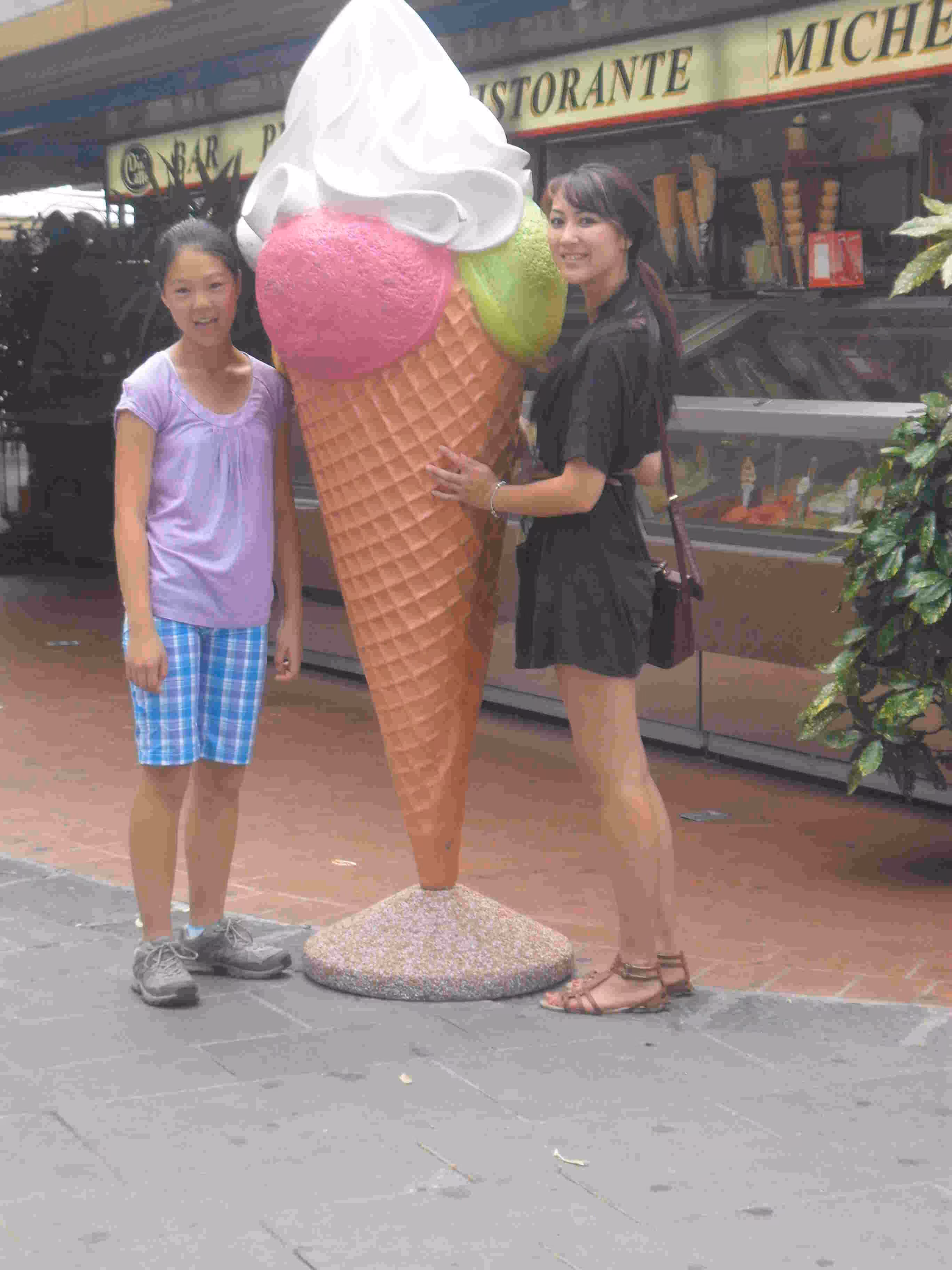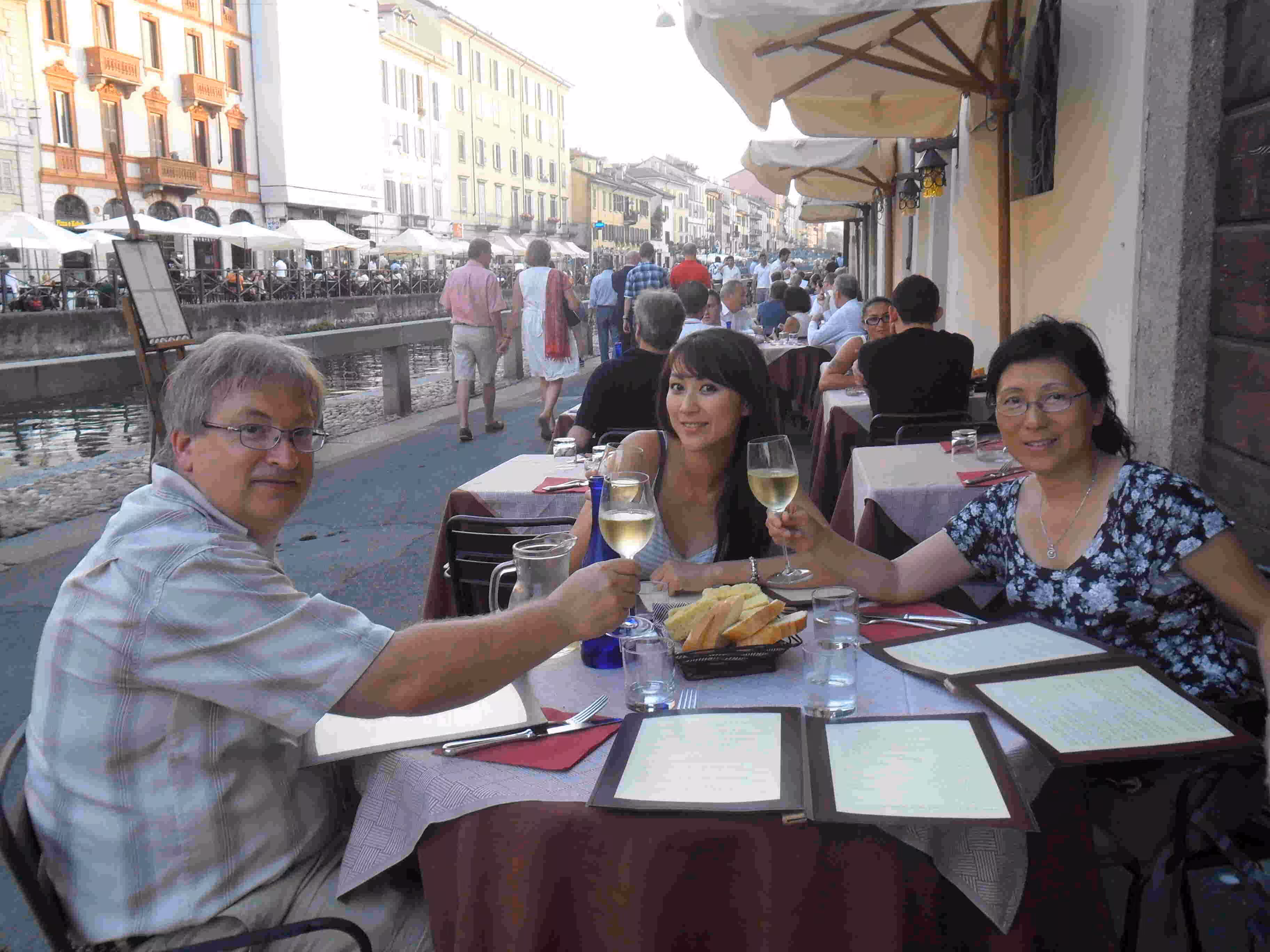 As we had an early train to catch, we woke up at 5am and quickly packed up. We took a taxi to the Gare de Lyon and had some coffee before boarding our train. We enjoyed the train ride on our first regular train in Europe. We had a stop-over for a few hours in Geneva, Switzerland. We stored our luggage at the train station before exploring a bit of the town. We scrambled somewhat to exchange some Swiss euros. We had lunch at a cafe after making sure they would accept credit cards. We walked back to the train station along the waterfront promenade. We really enjoyed the beautiful views along the lake including the ducks paddling in the water. Back on the train, we made our way to Milan. Upon our arrival at the train station, we lined-up at the service counter in the hope of reserving our train tickets for our next itinerary destination – Florence. While waiting, we were informed by a local that we could make our seat reservations through the automatic ticket machines. We quickly reserved our tickets for Florence for the next afternoon. We took a taxi to our reserved hotel but we were surprised that they did not have our reservation. We realized that we had made our reservation for the following month. Fortunately, the hotel had a quadruple room available for us. Later, we took the metro to a popular restaurant area where we had our evening meal beside a canal. Unfortunately the mosquitoes appeared more famish than the tourists. After our meal, we took a stroll in the area with the hope of locating an ATM. Victoria and I had some Nutela and banana crepes similar to those we had in Thailand last December. We took the metro back to our hotel.