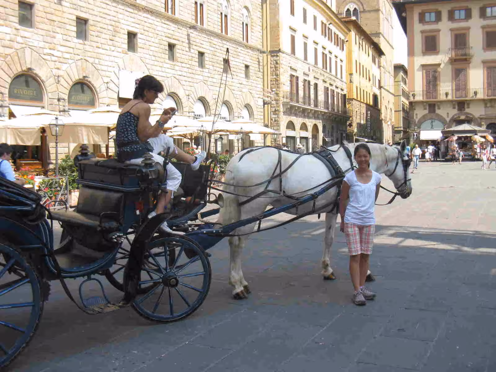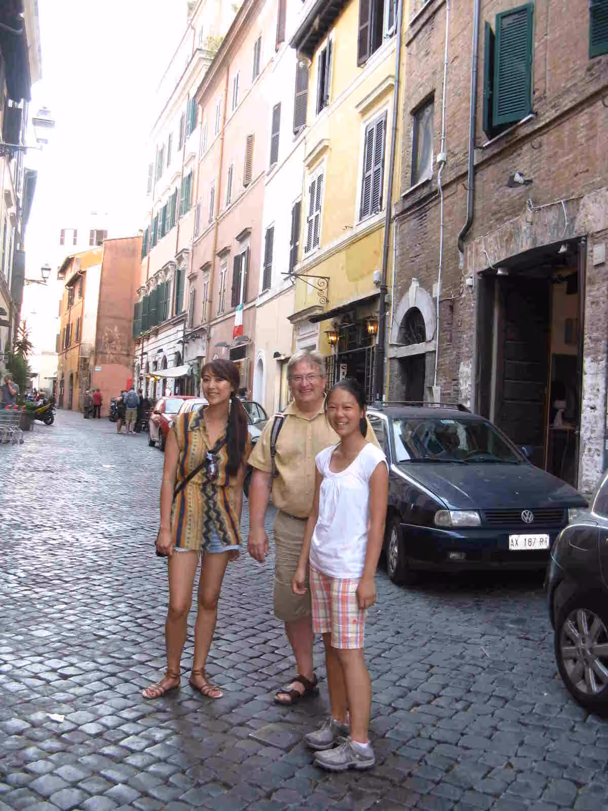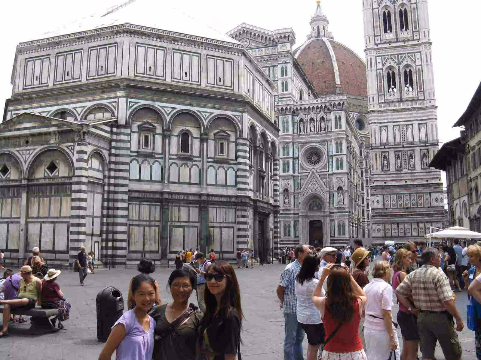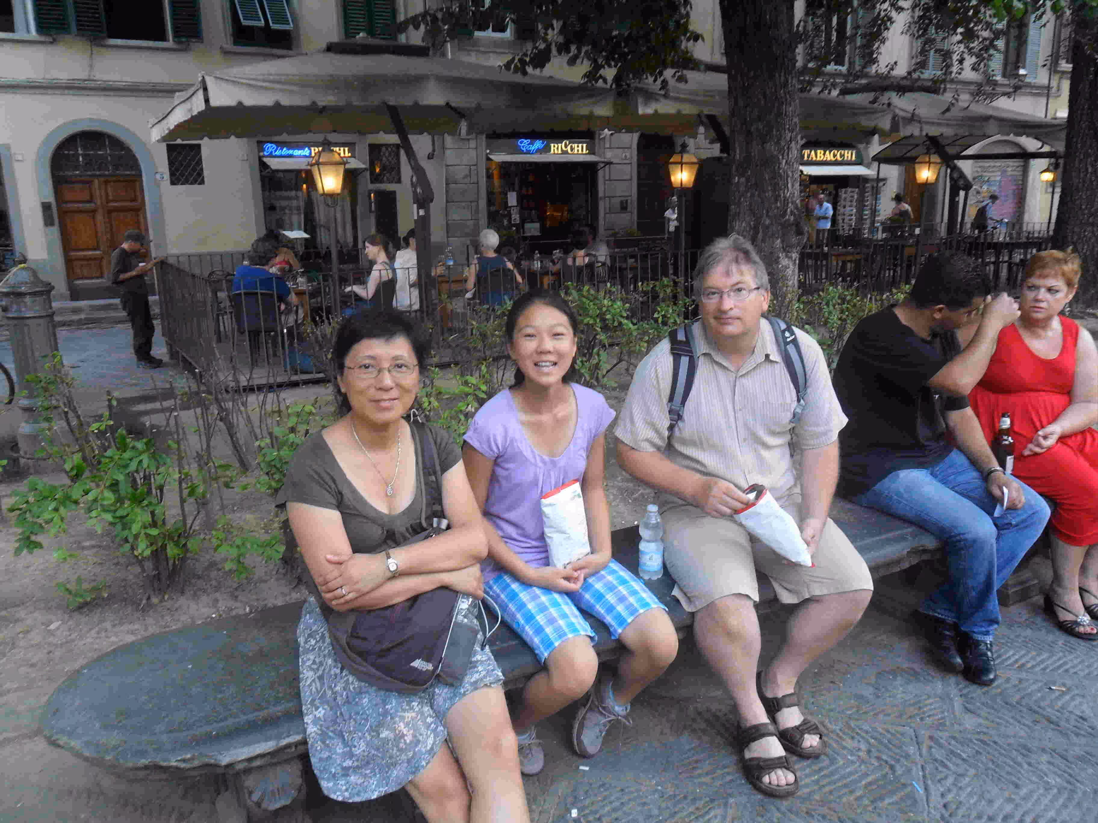 We left our luggage at the hotel lobby and headed out to explore a bit of Milan before our afternoon train. As we were reviewing our train ticket reservations for Florence, we realized that we had made a serious mistake on our departure time. Instead of reserving a departure at 4pm we had chosen 4am departure time. We headed out to the train ticket counter in the hope we could get a refund or and exchange but unfortunately there was no way. We lost 40 euros as a result of this reservation mistake. We finally got the correct reservations at the counter. We headed out to visit the Duomo (largest church) and a nearby Castello Sforzesco. Hopefully our luck had changed as we encountered an ATM (Barclay’s) linked to our local bank network along the way. We spent some time in the park enjoying some ice cream and a rest before returning to our hotel to pick up our luggage. We took the taxi to the train station. Once again, we enjoyed the 1h 45mins train ride that led us to Florence. Upon our arrival at the Firenze train station, we used the automated ticket machine to reserve our seat for our next itinerary segment – Rome. We took extra care in confirming the dates and hours of our reservations. We took the taxi to our reserved B&B Bel Counte. The room was nice but it appeared to have some unusual plumbing. We headed out for supper at the Yellow Bar recommended by the B&B owner. We really enjoyed our meal and wine in this very popular restaurant. Later, we explored the lively streets of Florence. As we started to hear musicians, Jenny and Victoria were quick to attend the last part of a free concert. Later, as the streets filled up with tourists, we attended a modern ballet presentation. We enjoyed walking along the cobbled narrow streets of Florence.