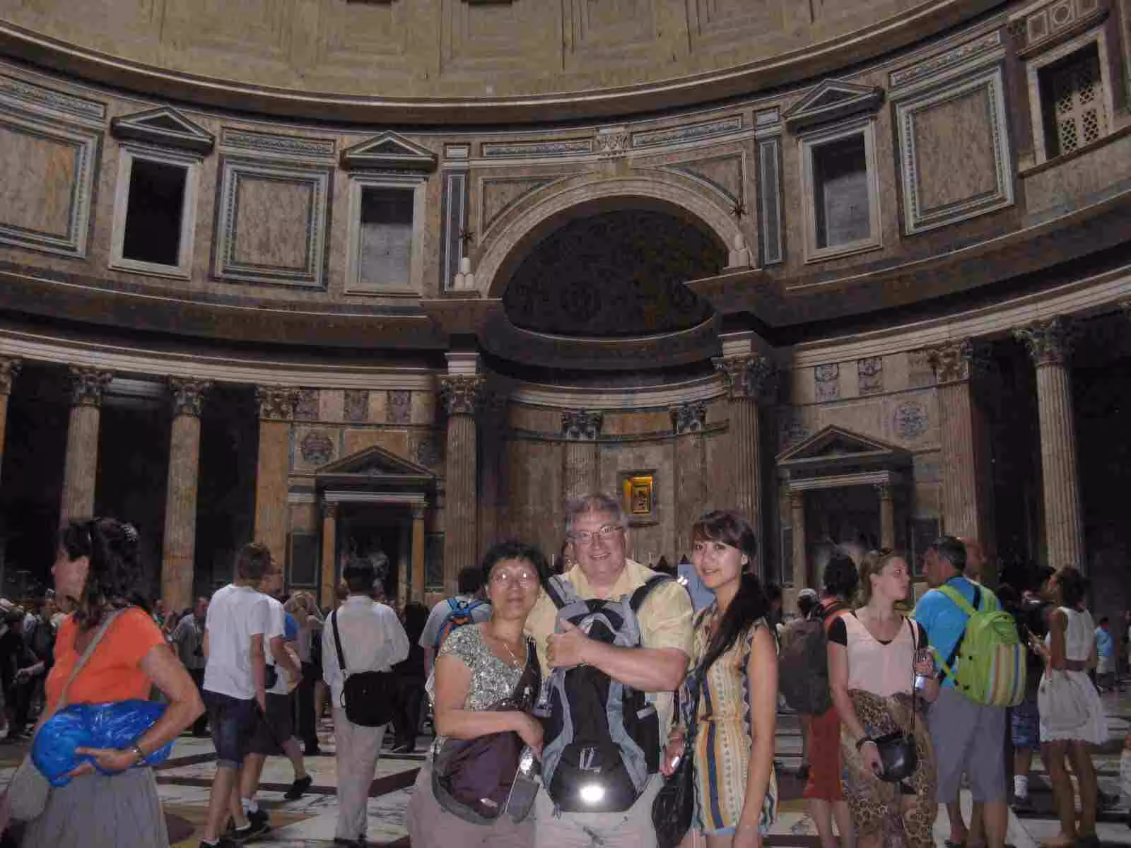 The train ride to Rome took about 1h 30min and it was quite enjoyable in our first class seats. After arriving at Rome’s Termini train station, we walked with our luggage to our reserved nearby hotel – Euro Equis. The room was nice and clean but once again the owner requested payment in cash only. Hence, Jenny and I had to head out unexpectedly to withdraw some funds at an ATM. After getting a good overview of the tourist attractions and a map from our hotel owner, we walked out to start our exploration of Rome. We took the bus to get near our first destination – the Pantheon. We calmed our hunger along the way by stopping at a bakery. Shortly after entering the Pantheon, we hear loud screams from someone. It turned out that some tourist had their camera stolen by a gazelle-like thief. We realized that Rome was in fact living up to its reputation of pickpocketer’s capital.