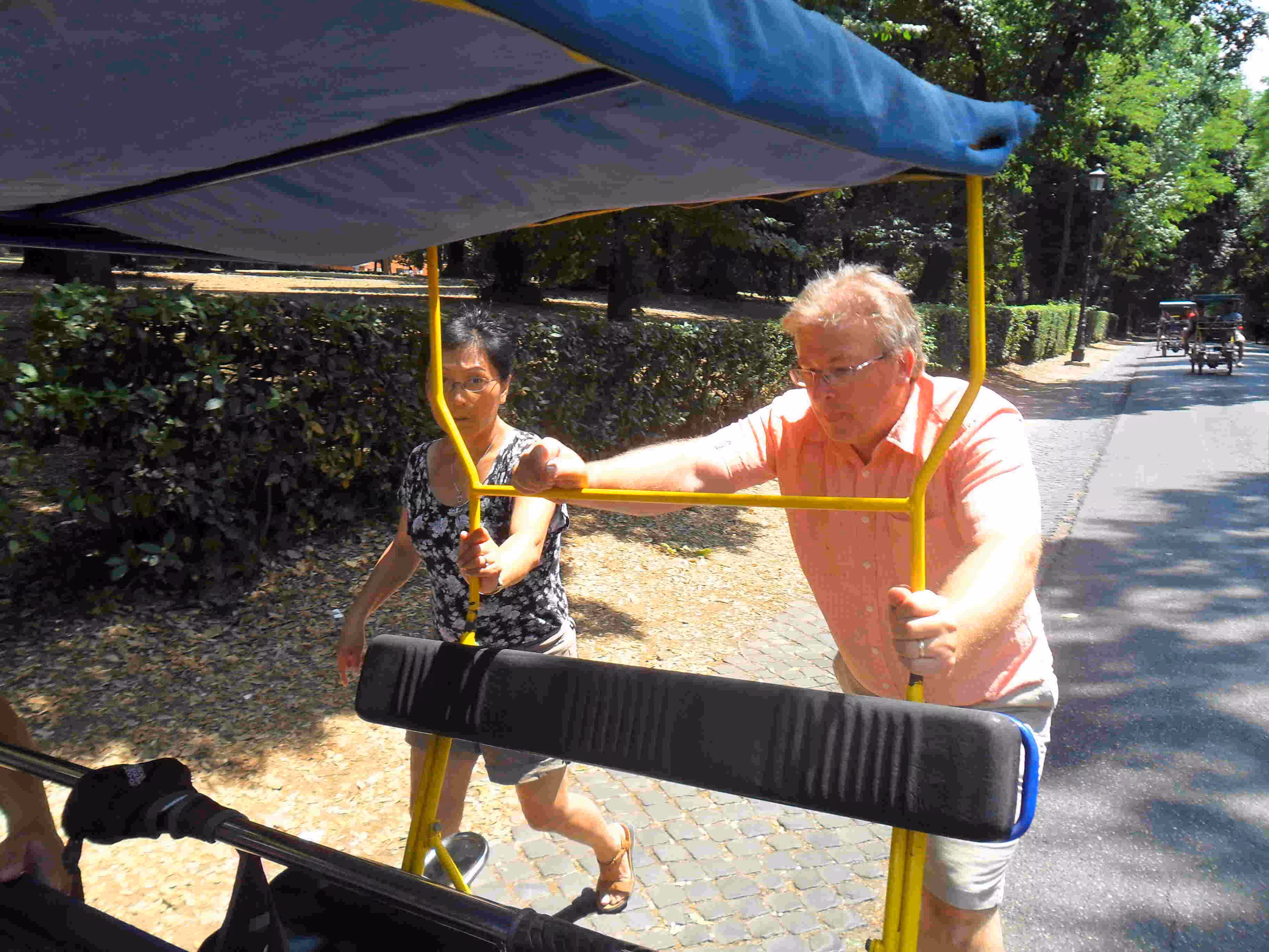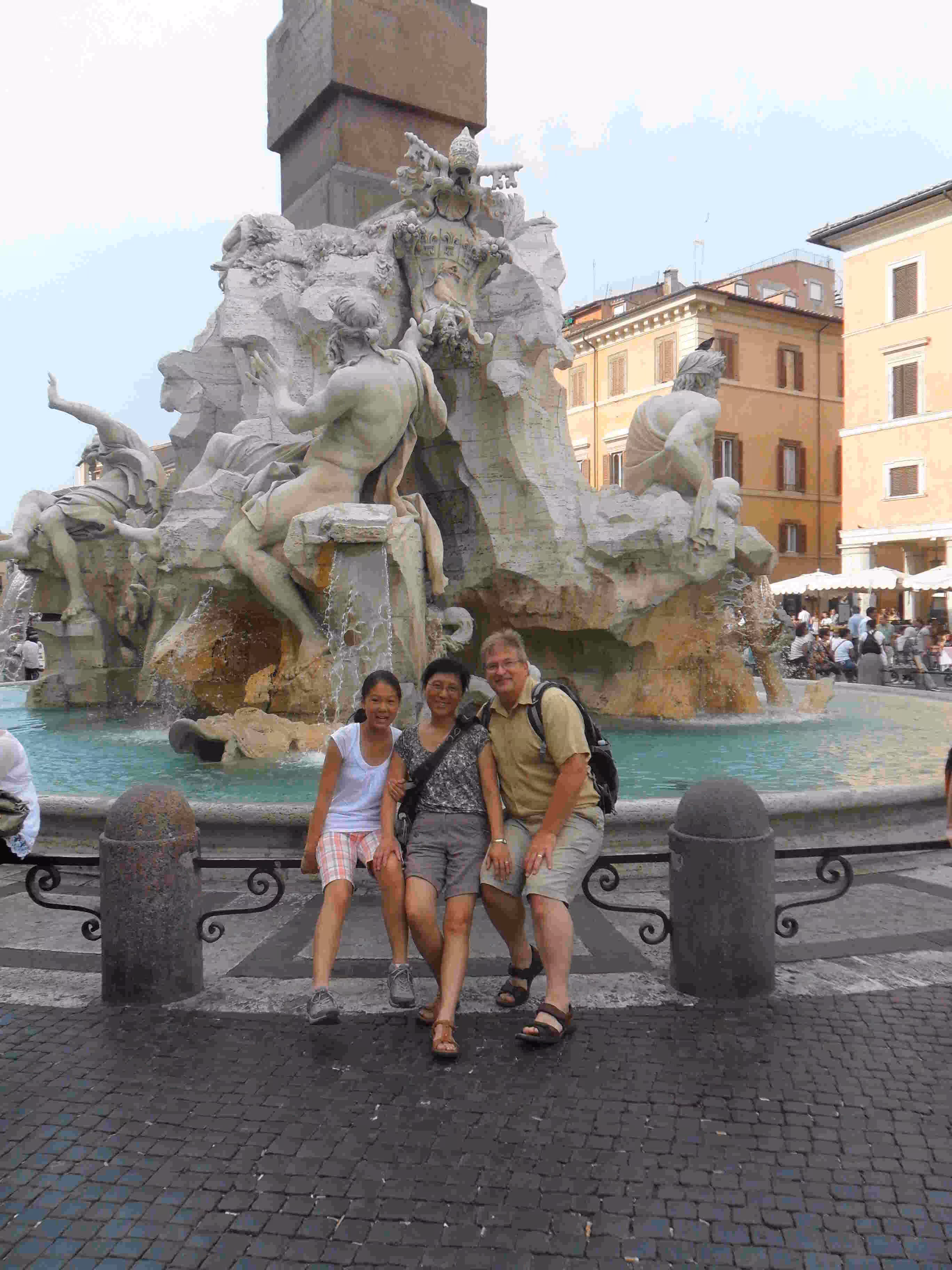 Today, we expected a few tourist attractions to be closed on a Sunday. We started with a nice breakfast (panini and coffee) at a nearby cafe. We explored a number of churches (Santa Maria Maggior), fountains (Fontane del Tritone), plazas (Piazza delia Republica) along our long walk to the Villa Borghese gardens. We rented a quad-bicycle for an hour and had a good workout cycling around the park. We enjoyed resting a bit longer in the park. We decided to head to see the Mouth of Truth housed at the Santa Maria Cosmedin church. We walked down the Spanish steps before taking the Metro to the church. Upon our arrival there, we queued again to have a chance to touch the Mouth of Truth. After a quick visit of the church, we walked towards the Trastevere district. We stopped for gelato along the way. We took a cruise on the Tiber River for one hour before having some pizza at Pizzeria โ€œDar Poetaโ€. We seemed to wait a long time for our bus โ€œ64โ€ back to the Termini train station but it did eventually show up. Everyone was tired after the long but enjoyable day.