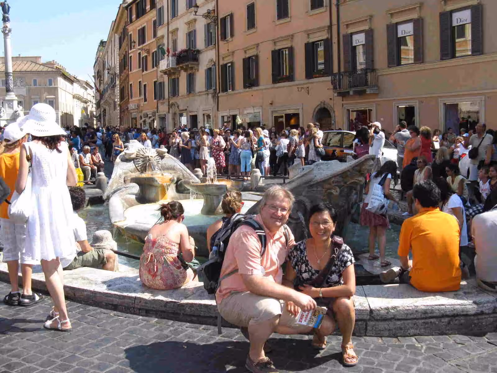 We had to change hotel room this morning as our quadruple room was not available as we had reserved it initially for only three nights. We moved into two separate rooms. We had breakfast (croissants and coffee) again at a nearby cafe. After waiting for the bus โ€œ64โ€ for 15 minutes, we decided to use the metro to get to the Vatican City. The metro was very busy. The area around Vatican City abounded with tourists and touts for tours. We made our way to the St Peter’s basilica where we took an elevator ride and then climbed a narrow staircase up to the dome area. Along the staircase corridor we could smell everyone’s sweat. At the top, it was difficult to move around as there were simply too many visitors. Although the views at the top were not overly impressive, the route up and down was quite an adventure. After visiting St-Peter’s Square, we enjoyed some gelato which gave us a bit of energy to continue our visit of Vatican City. We faced a very long queue for the Vatican museum so we decided to skip it. We walked to the Castel SantยดAngelo but we ran out of luck as it was closed on Mondays. We hopped onto the same cruise boat as yesterday since our tickets were valid for a 24h period. It was a convenient way to return to the Trastevere district. We took the bus and metro back to our hotel area where we ate at a very good Chinese restaurant. We slept in separate rooms on our last night in Rome.