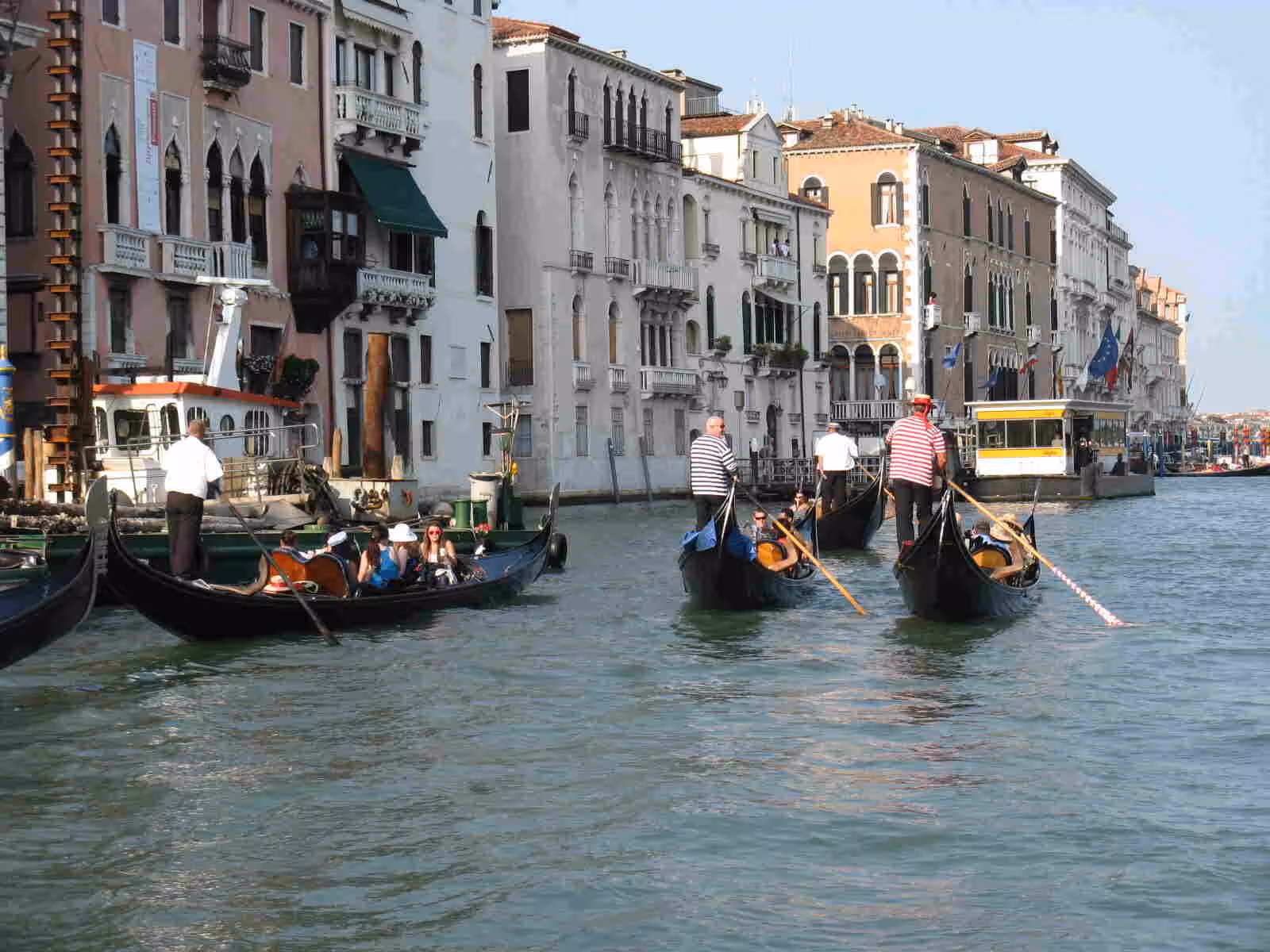 After arriving at the Venice train station, we looked into making a train reservation for our next itinerary destination – Salzbourg. We were informed that there was only one train a day that went to Salzbourg. Unfortunately, it was a night train that left Venice at 9pm and arrived in Salzbourg at 4am. This was not our preference but since we had an Eurail pass, we opted to get those tickets which were the only ones available in second class. We were a bit unclear on how to get to our hotel as water canals appeared everywhere. With an apparent simple Google map route to our hotel, we opted to walk there. After crossing a footbridge and walking a few minutes, we noticed our hotel located one level down from the roadway where we were walking on. A local resident from across the street gestured to us on the way to get to the lower level. We finally made it to our hotel San Andreas – an old monastery. We checked into our two bedroom family suite. We headed out afterwards to explore the streets or more like the waterways of Venice. Early on, we realized that navigating the walkways in Venice wouldn’t be easy. Our hotel map failed to provide us with the necessary details. We did finally find our restaurant for supper. After our meal, Jessica tried her hand at navigating the street of Venice and only managed to bring us back to our restaurant after a fifteen minute walk. What a revealing experience! We managed, with the help of Victoria, to make it to Venice’s central plaza, the San Marco Piazza. The Piazza was full of evening tourists. There were a small group of classic musicians at various restaurants around the piazza. We bought 24h water bus passes and headed back to our hotel using the water bus. It was a very nice ride with all the evening lights. From our hotel entrance, we could see a huge cruise ship docked.