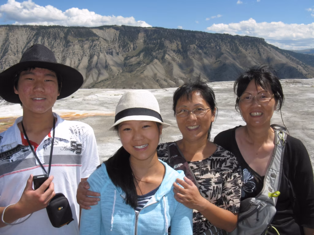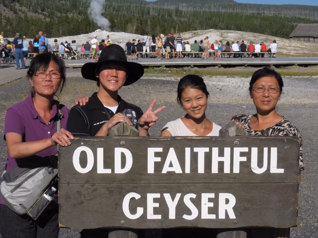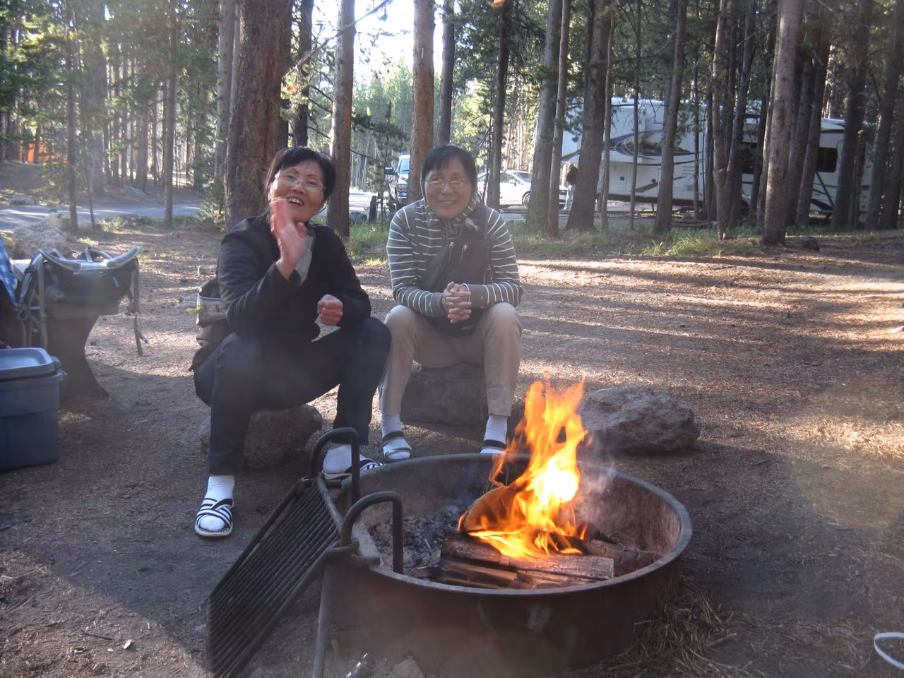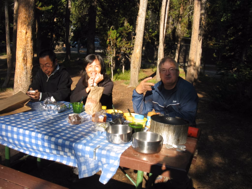 After having our free breakfast at the motel, we took the road towards YellowStone National Park. We stopped in Livingstone to buy some groceries. We entered the park through the North entrance. The road towards Canyon Village, where our first two nights camping were reserved, appeared to be far away. We registered quickly for our campsite which was conveniently located near the shower facilities. The flush toilet facilities were also very clean and modern. After setting up our tents, we went to explore the Visitor’s Center and browse the gift shops and restaurant. We booked some horse riding for Saturday morning at 7:45am. We opted to explore the Southern rim trails of the YellowStone’s Canyon. We had a good workout on the “Uncle Tom s” trail which goes down straight into the Canyon. We ate lunch left-overs for supper. Everybody is happy that mosquitoes are not overly present.