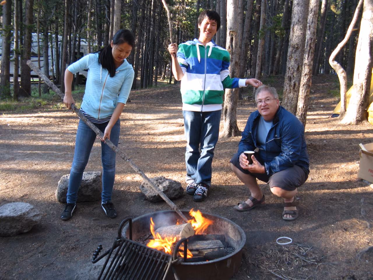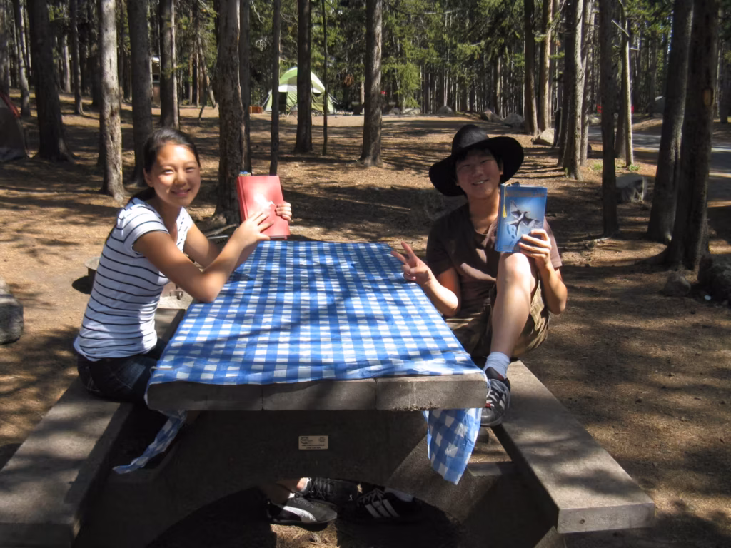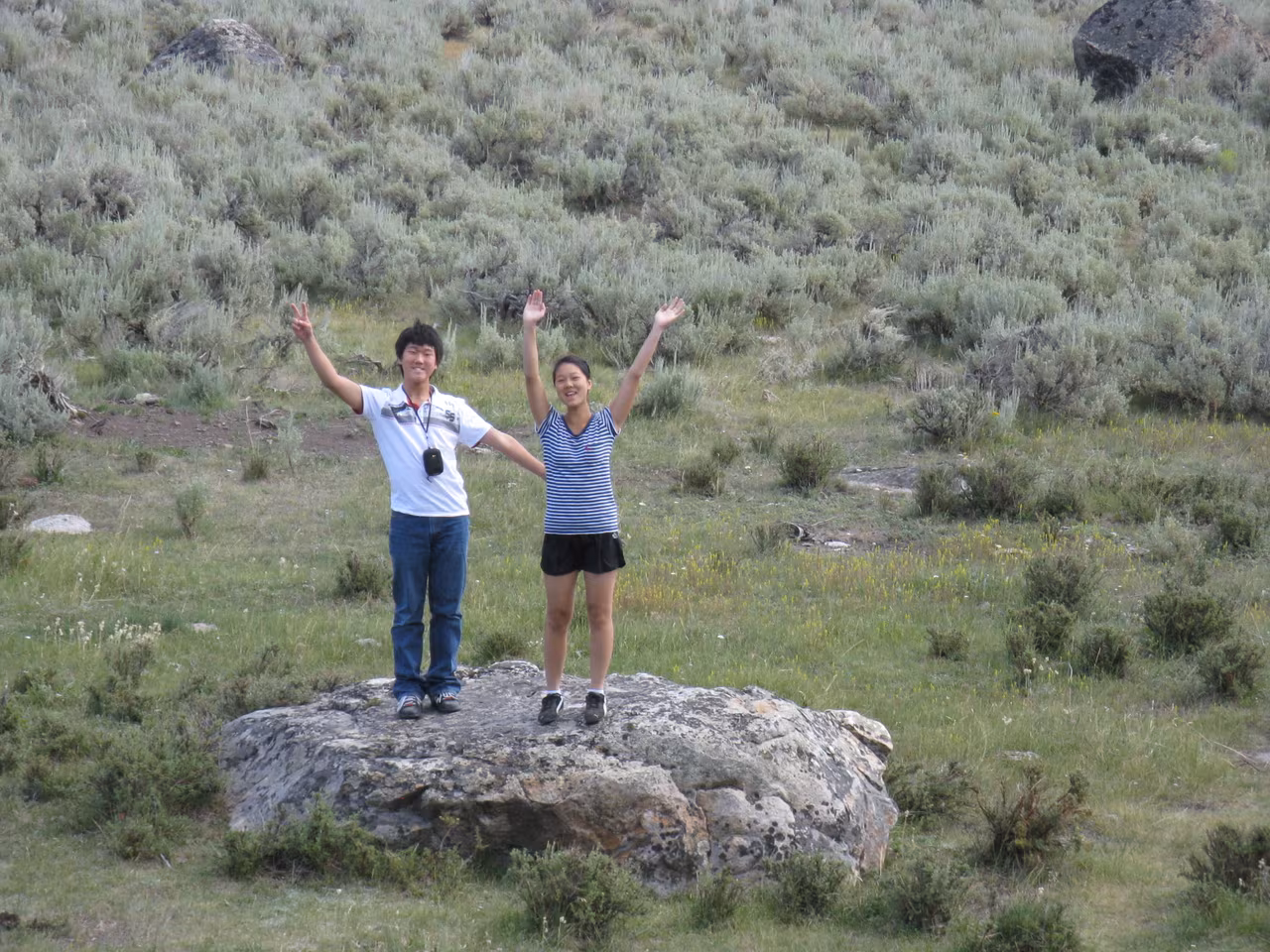 After having our free breakfast at the motel, we took the road towards YellowStone National Park. We stopped in Livingstone to buy some groceries. We entered the park through the North entrance. The road towards Canyon Village, where our first two nights camping were reserved, appeared to be far away. We registered quickly for our campsite which was conveniently located near the shower facilities. The flush toilet facilities were also very clean and modern. After setting up our tents, we went to explore the Visitor’s Center and browse the gift shops and restaurant. We booked some horse riding for Saturday morning at 7:45am. We opted to explore the Southern rim trails of the YellowStone’s Canyon. We had a good workout on the “Uncle Tom s” trail which goes down straight into the Canyon. We ate lunch left-overs for supper. Everybody is happy that mosquitoes are not overly present.