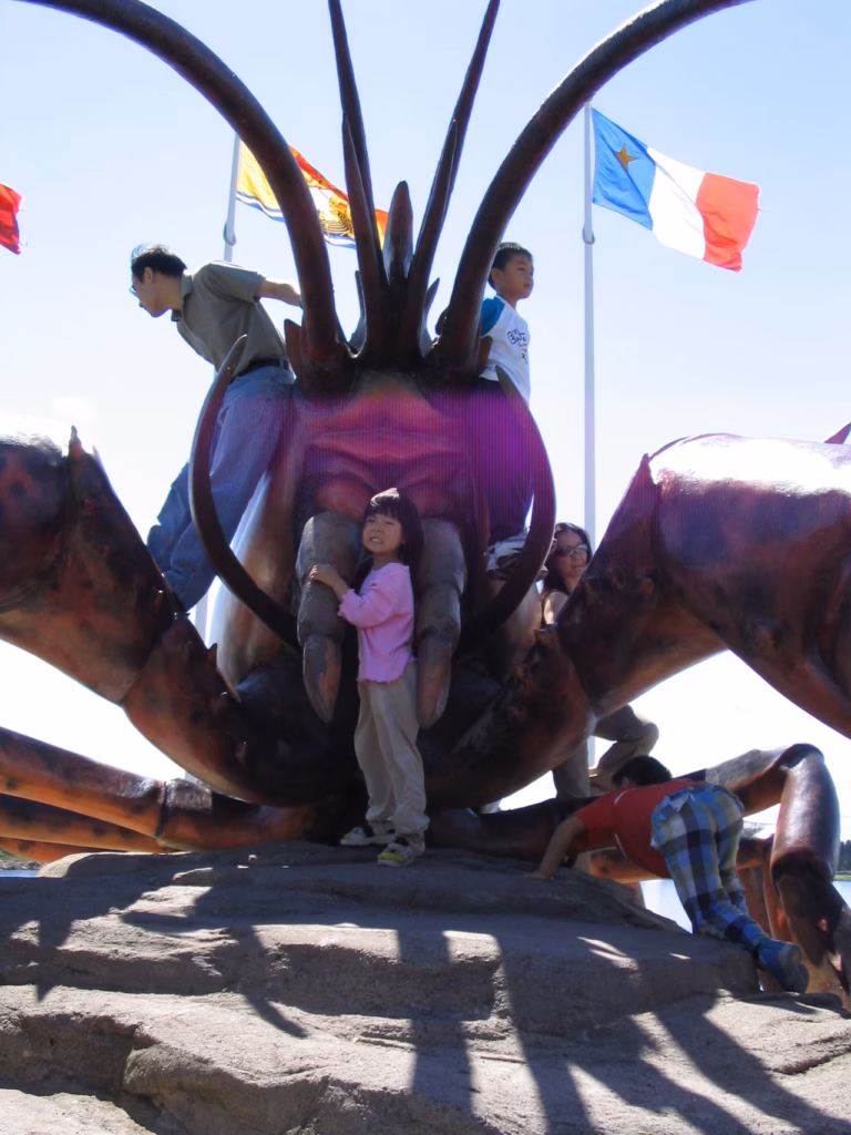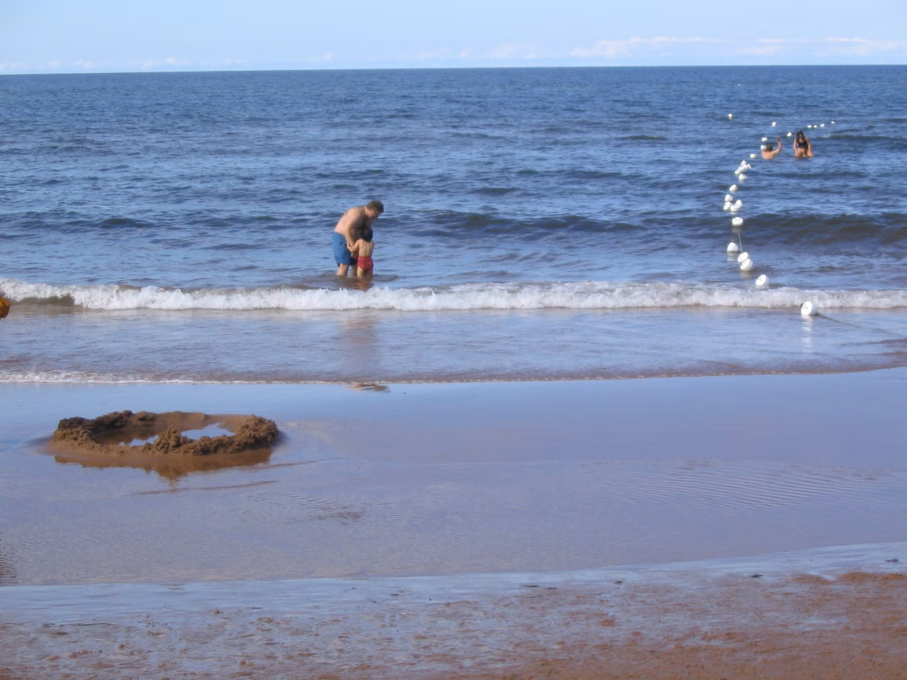 Tel que discuté avec nos co-voyageurs hier soir, nous quittons le camping vers 8h45. Nous nous rencontrons au Tim Horton de Miramichi. En route nous arrêtons au centre d’information de Bouctouche, pour une petite marche au-dessus d’un marais. Nous prenons des photos. Nous poursuivons notre route vers Shediac. Nous nous arrêtons de nouveau au centre d’information, et des prises de photos sur le homard géant. Nous faisons des épiceries et pique-niquons à la sortie de Shediac – très beau site. Nous quittons nos co-voyageurs ici, car ils ont déjà un chalet réservé à IPE pour deux jours. Nous traversons le pont de la Confédération sans grande émotions. Nous nous dirigeons directement vers Cavendish en empruntant une série de routes. L’île est parsemée de routes locales. Nous visitons un premier camping (KOA) mais l’endroit ne nous plaît pas. Nous nous arrêtons pour deux nuits au camping Sunset. Je me rappelle d’y être arrêté dans un autre voyage à vélo. Une fois la tente montée, nous nous dirigeons vers la fameuse plage Cavendish. Il est 10h et nous devons payer $12.50 pour l’accès à la plage. Je me baigne avec Victoria pour une heure. Jenny et Jessica profite du soleil sur la plage. De retour à la tente, nous mangeons et prenons une douche. Par la suite, nous allons au parc d’amusement Sandspit. Nous essayons plusieurs manèges en famille. Nous finissons la soirée à un Subway pour un léger souper. Une journée bien rempli.