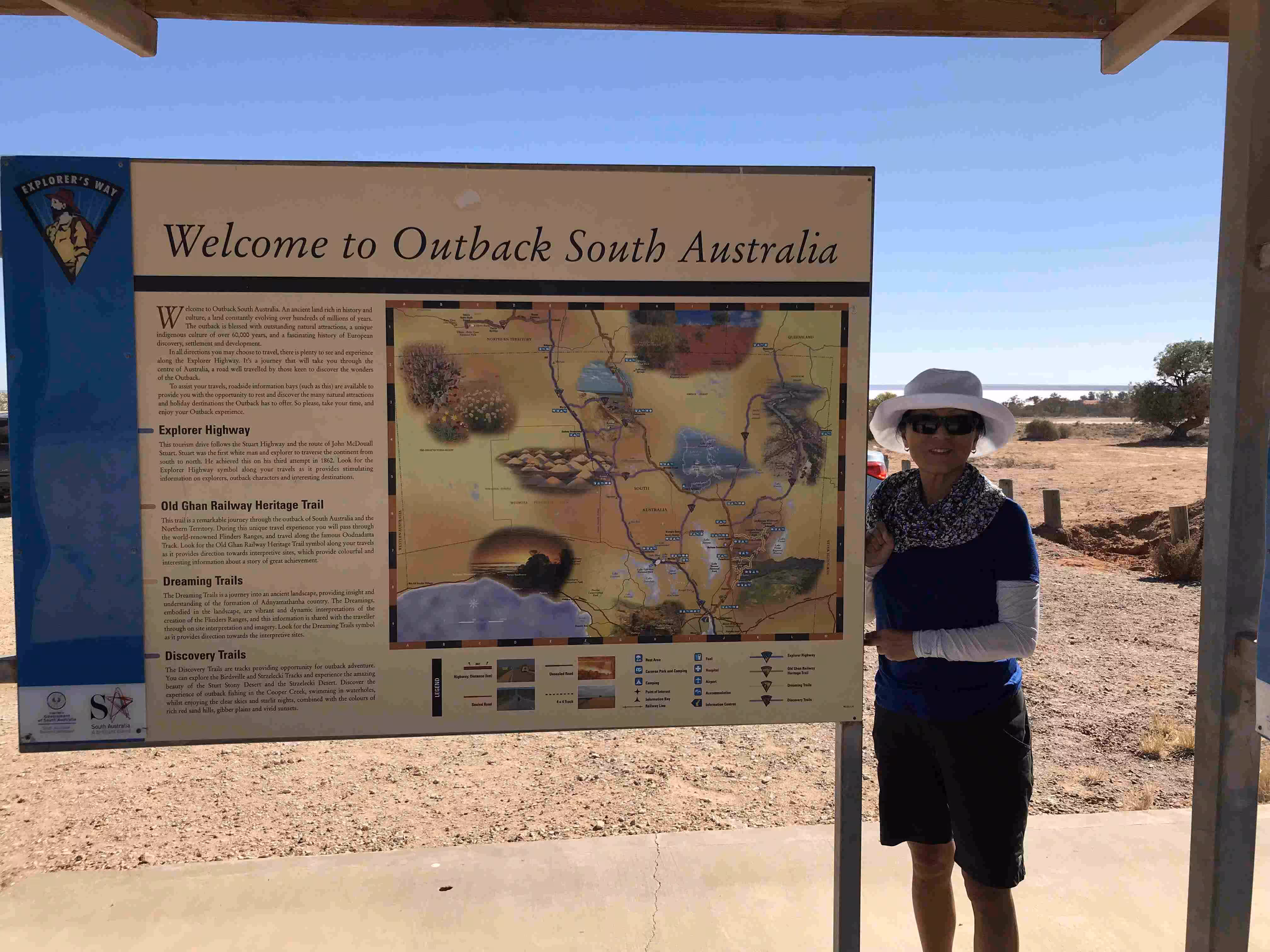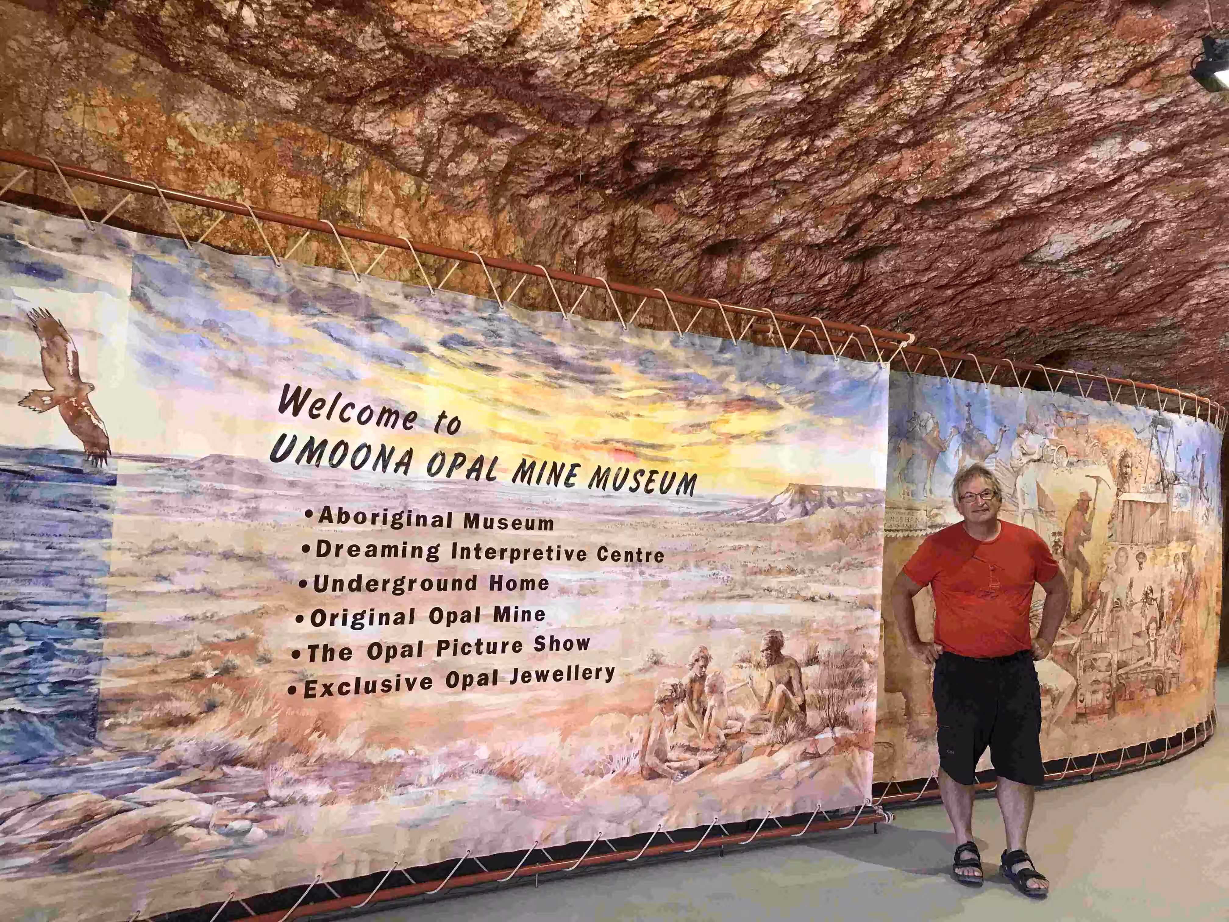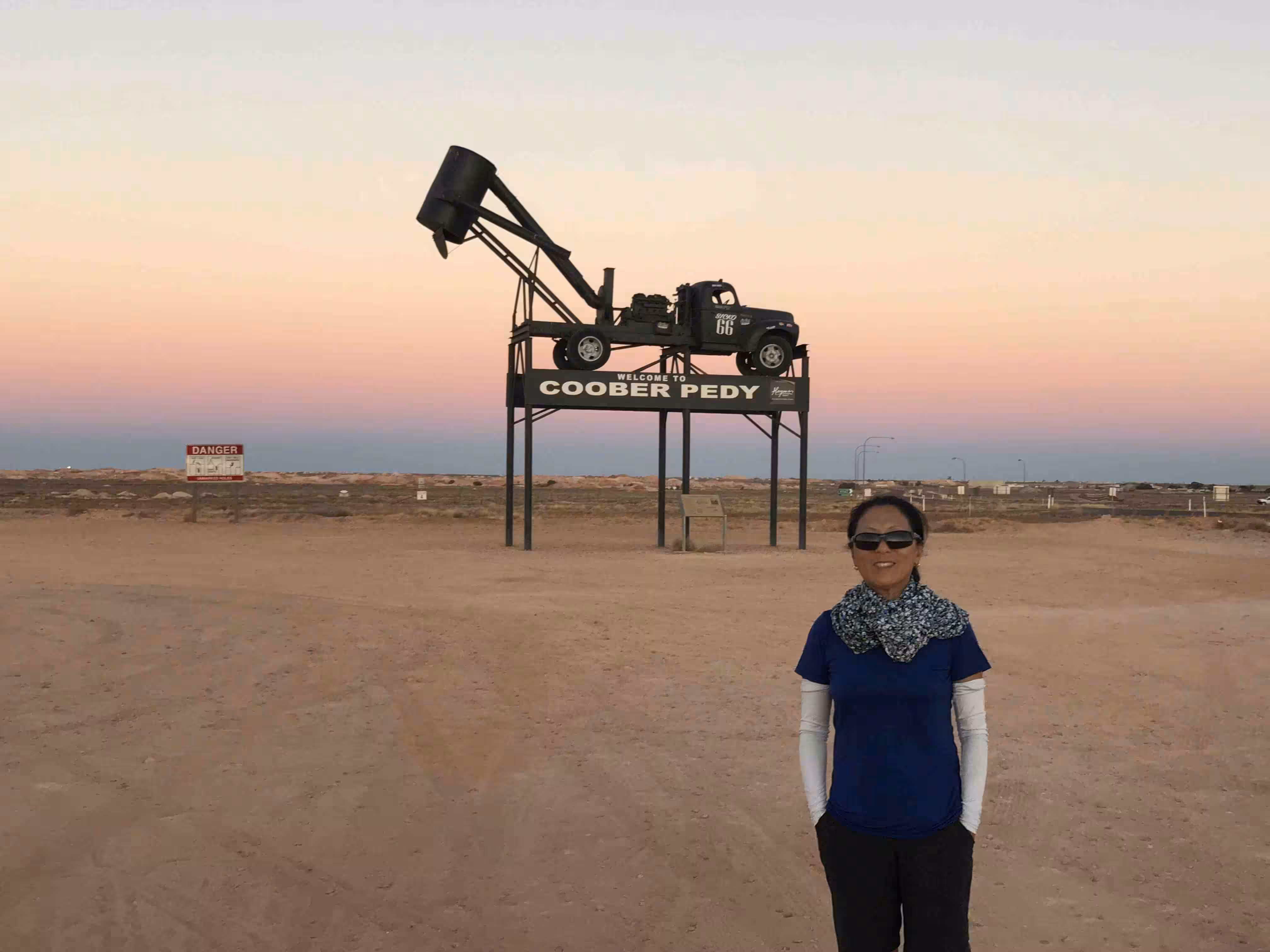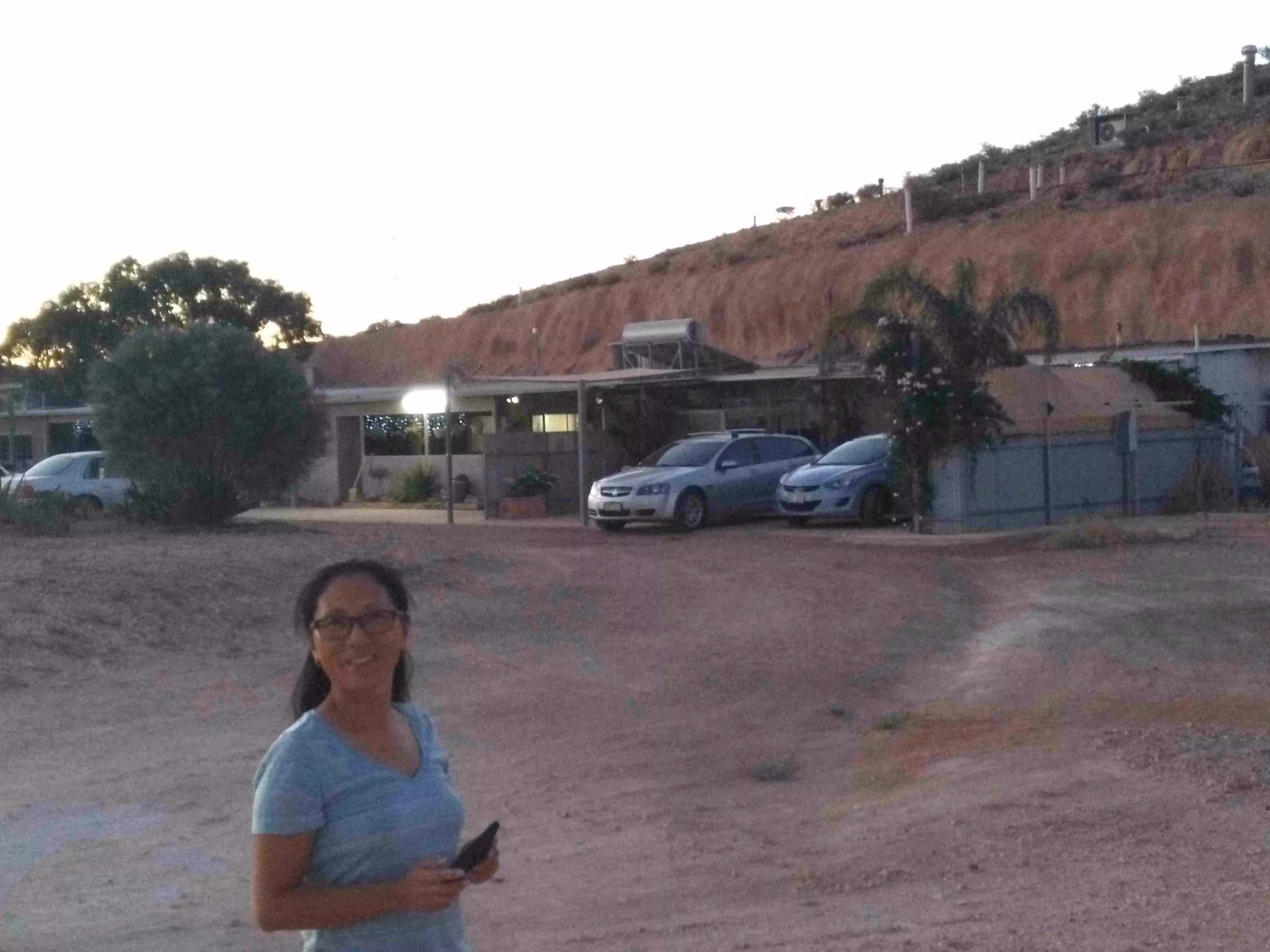 2018.04.05 – Alice Springs – Coober Pedy (AU) [690 kms] – We left our backpacker oasis at the crack of dawn. We stopped at McDonald’s for a quick breakfast and some lattes for the road. We felt a bit less stressed now as we were driving back towards Melbourne. The thought of a car breakdown in the middle of the Outback was always in our mind. We stopped at a few rest areas along the way for some photo opportunities. We had been looking forward, since our camping in Yulara, to our stay at the comfortable B&B in Coober Pedy. Upon arriving in town, we fueled up the car. We stopped for a short visit at the Umoona Opal Mine and Museum. We bought groceries for our evening meal cooking at our B&B. After checking into our accommodation, we did some clothes washing while enjoying the relaxing environment of our underground B&B. We also really appreciated our own cooked meal.