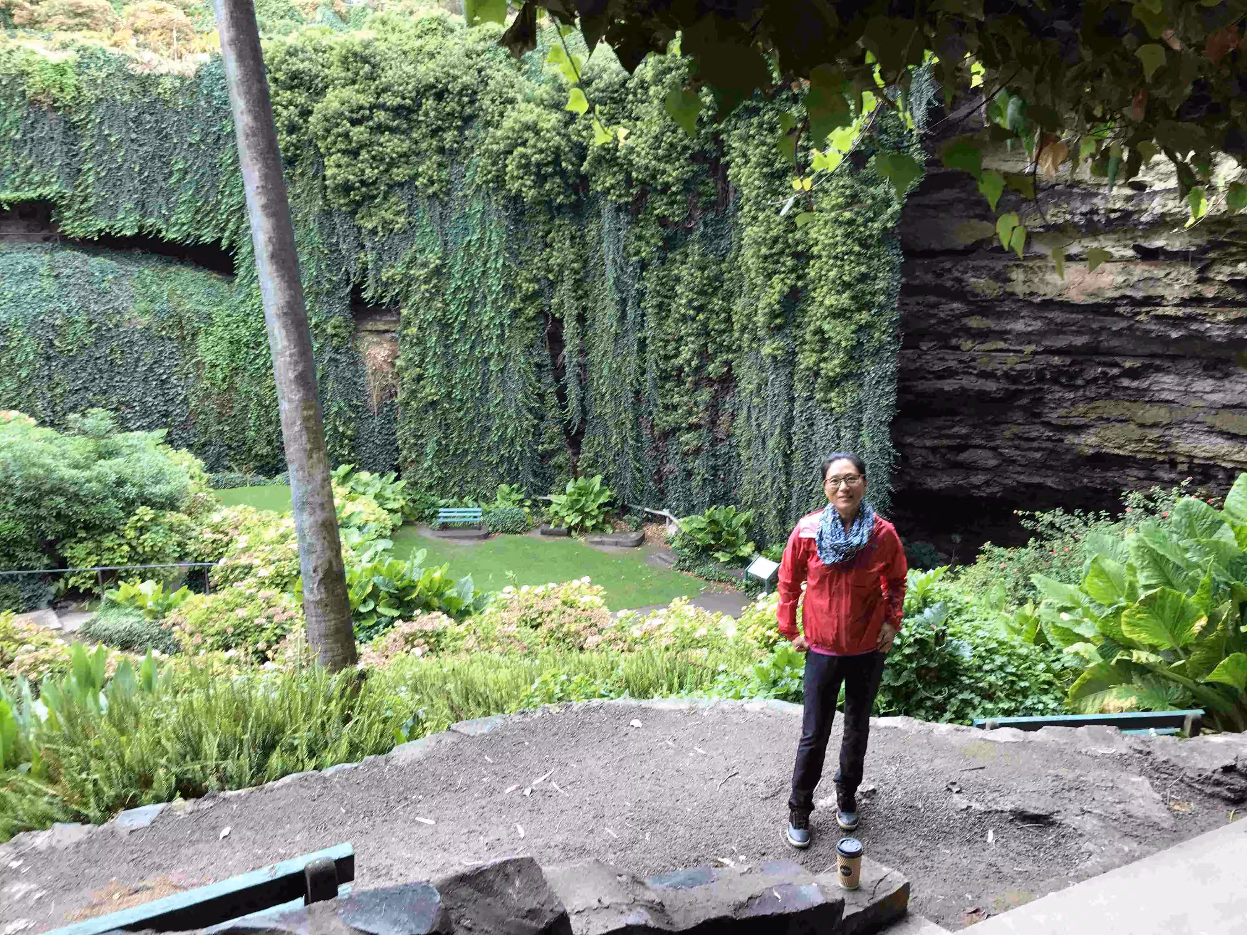 2018.04.09 – Mount Gambier – Simpson (AU) [312 kms] – As our motel’s friendly owner highlighted the previous evening, there were a couple to tourist sites that we proposed to visit before leaving town. After leaving our accommodation, we picked up some lattes and headed for a short drive to the Umpherston Sinkhole which housed a beautiful and unique sunken garden. On our way out of town, we stopped briefly at the volcano crater Blue lake. Our route along the Princess Highway was mostly inland throughout the day. We stopped for lunch in Portland where we met and chatted with a mature couple cycling their way from Adelaide to their hometown in the East Gippsland region. Towards the end of our driving day, the road finally met up with the coast which offered some spectacular views on the coastal cliffs. As the views improved, so did the number of cars and tour buses. There were so many tourists at the famous crumbling pillars of the Twelve Apostles scenic area that we opted to drive by and headed directly to our B&B, some 25kms away, in the small community of Simpson. Our accommodation was nice with views on some cattle farmland. Unfortunately, the small community had little to offer in terms of restaurants. We settled for some take-away hamburgers for our evening meal.