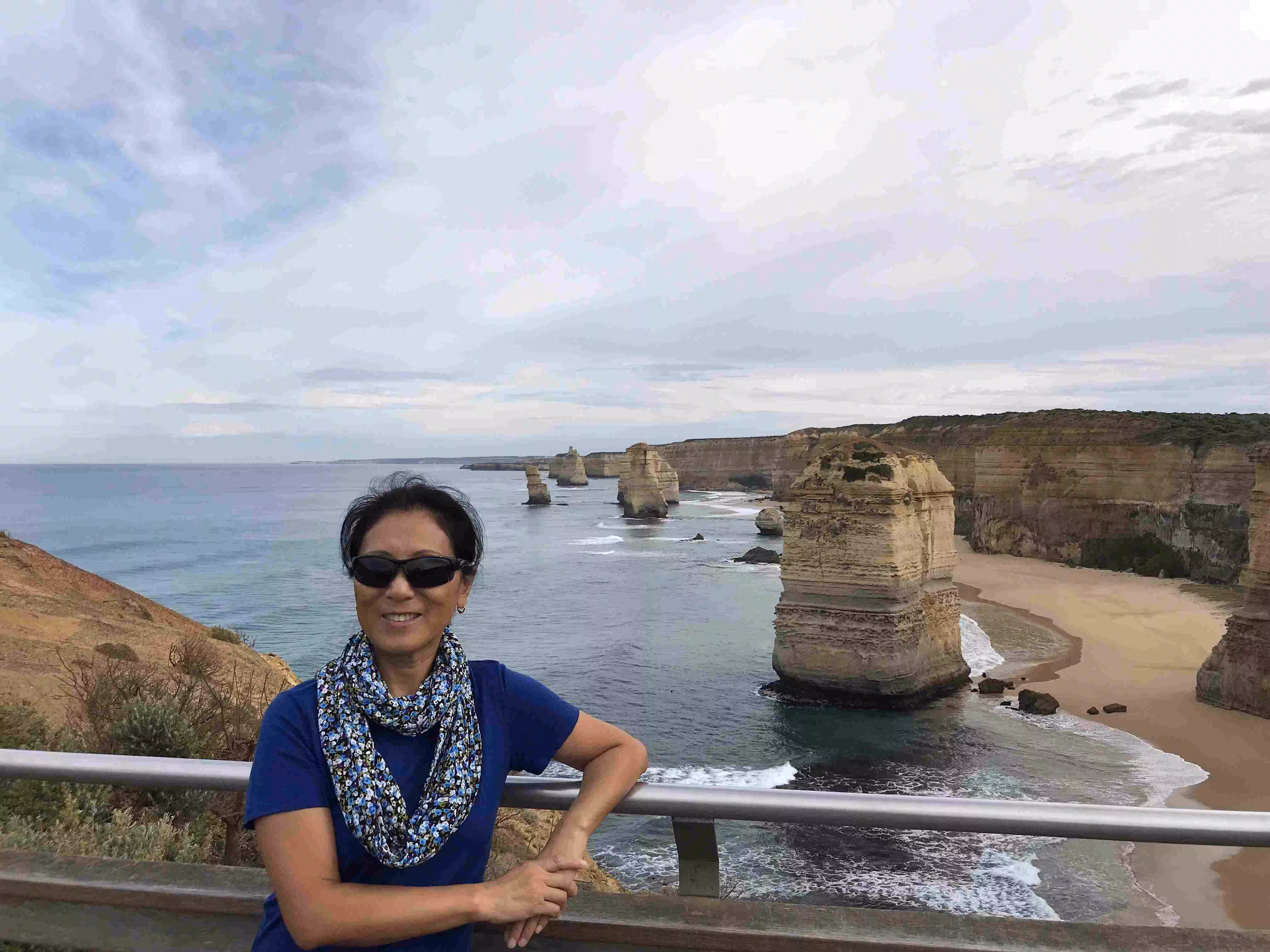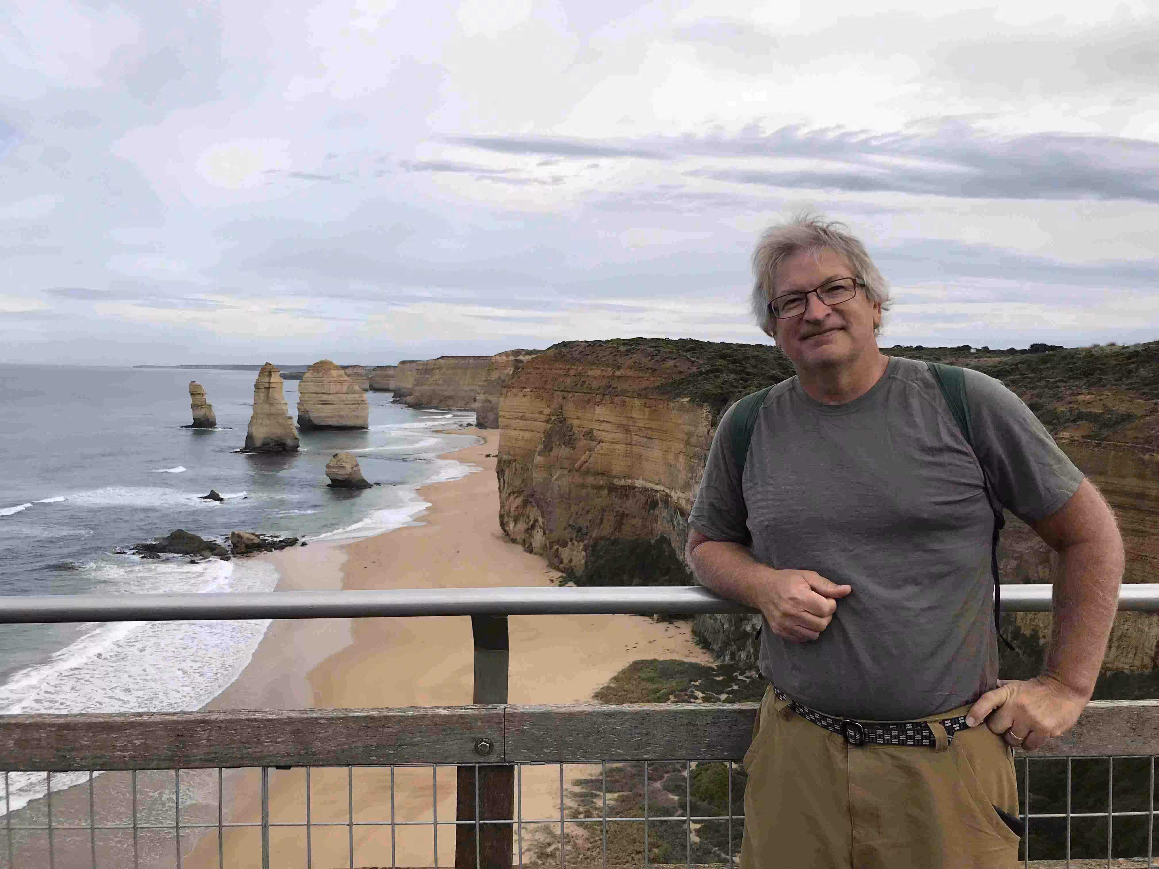 2018.04.10 – Simpson – Melbourne (AU) [303 kms] – We left our B&B and drove back to the Twelve Apostles’ visitor center. There were quite a few less visitors than when we passed by yesterday afternoon. The observation pathways offered plenty of great photo opportunities. We drove inland again through some fairly hilly area until we reached Apollo Bay. We had coffee and snacks in this very touristy town. Although we had been driving on Australia’s famous Great Ocean Road (GOR) for the past couple of days we had not been overly impressed, up to now, by the views as the road followed most of the time an inland path. This situation changed dramatically from Apollo Bay where the road started following the side of the cliffs along the coast. Back on an inland road towards Melbourne, we stopped in Geelong for a late afternoon lunch. The drive into Melbourne, during rush hour, was less hectic than when we left the city the previous week. We checked back into the same accommodation near the airport. The hotel staff delivered our bicycle box and trailer to our room while we had stepped out for our evening meal. We spent part of the evening re-organizing and carefully weighting our luggage to avoid any excess weight luggage fees.