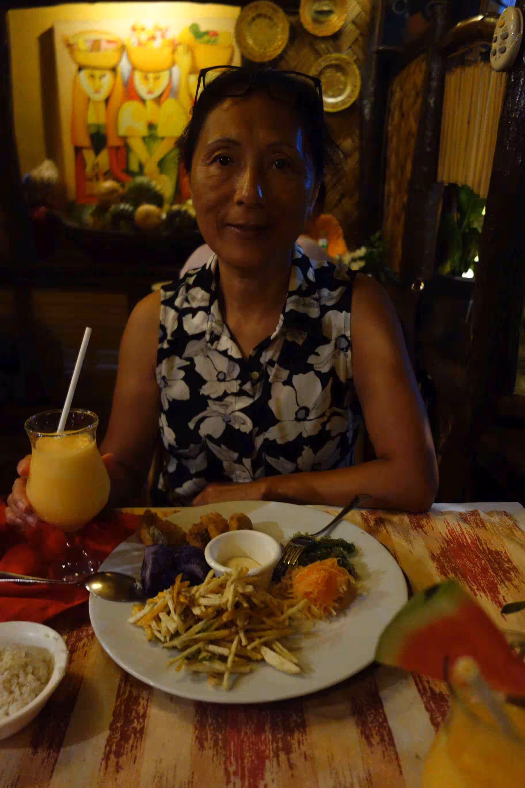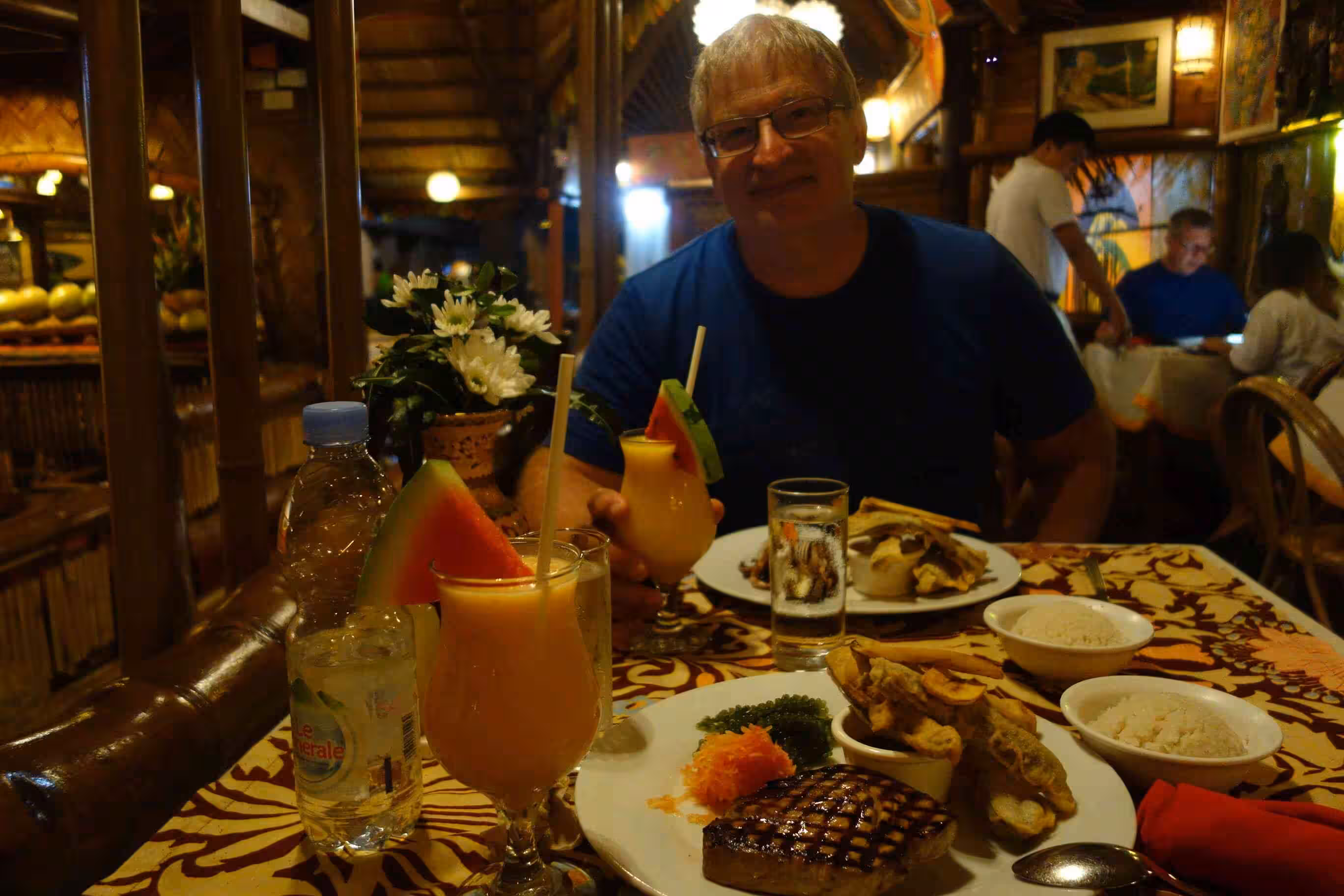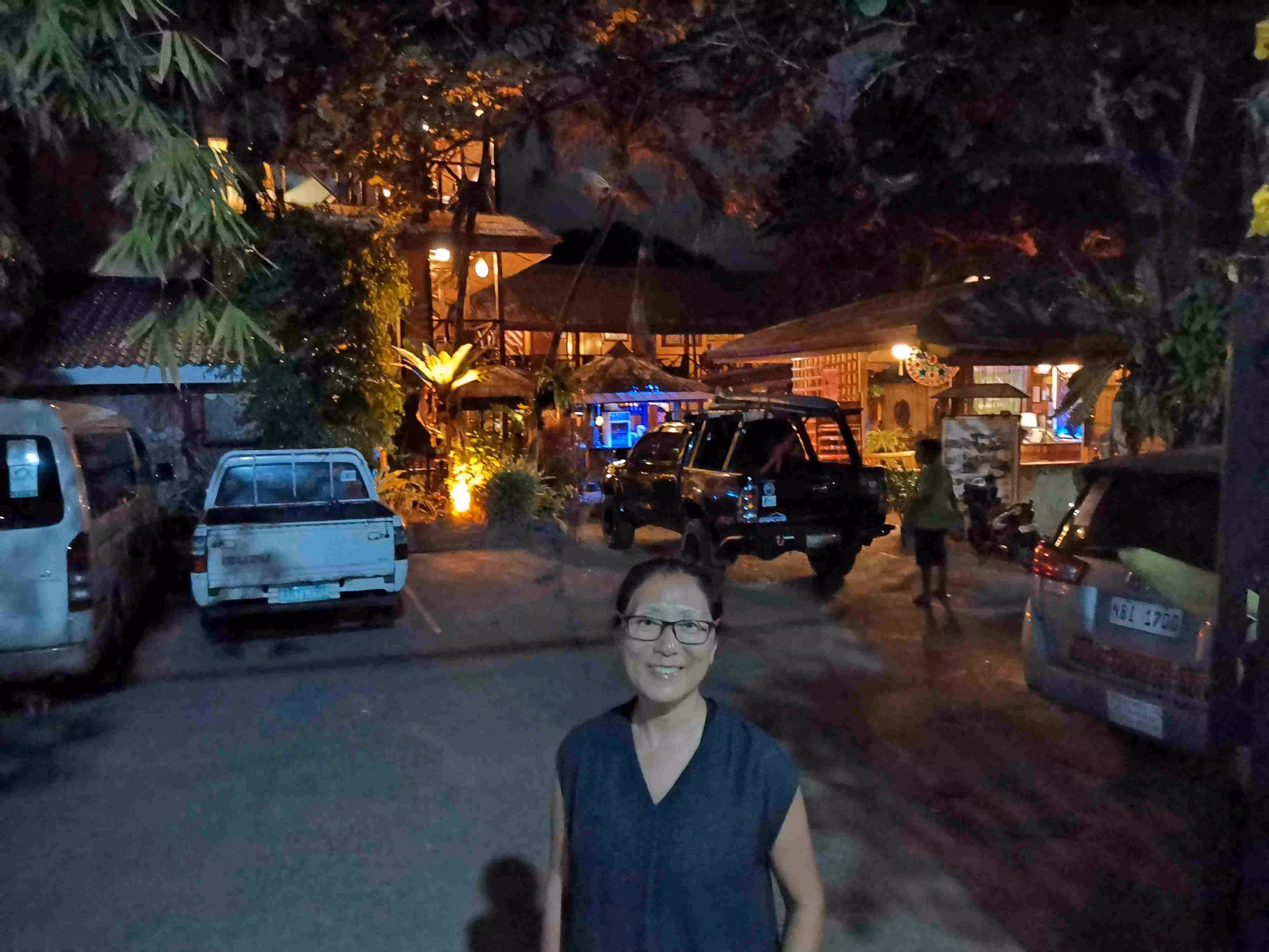 2020.02.07 – Puerto Princessa – Puerto Princessa (Php) – At breakfast, we were disappointed by the stingy courtesy breakfast offered by our mid-range hotel. Later, we jumped into a moto-tricycle to reach the office of the Subterranean River National Park where we were hoping to buy a permit for a day-trip to the Underground River. After reaching the location specified in our guide book, we learned the office had moved, last August, to a brand new building closer to the town center – just a few blocks away from our hotel. At the office, we learned some disappointing information regarding the cost of this tourist attraction. After much consideration, we decided to give up the idea of visiting the Underground River as the cost and the 5 hour transportation time did not really justify the 30-45 mins visit of the river. Later we walked over to the town’s Cathedral and Plaza Cuartel – the site of WWII Palawan Massacre. We spent much of the time relaxing on our room’s balcony, chatting with our room neighbor and walking around different neighborhoods. For our evening meal, we took a moto-tricycle for 2km to a highly rated restaurant which offered a Balinese decor. We enjoyed so much the great and reasonably priced food and atmosphere that we made reservation for the following evening. Even if the restaurant required us to take our footwear off before entering the premises, surprisingly Jenny did not mind. We enjoyed the walk back to our hotel.