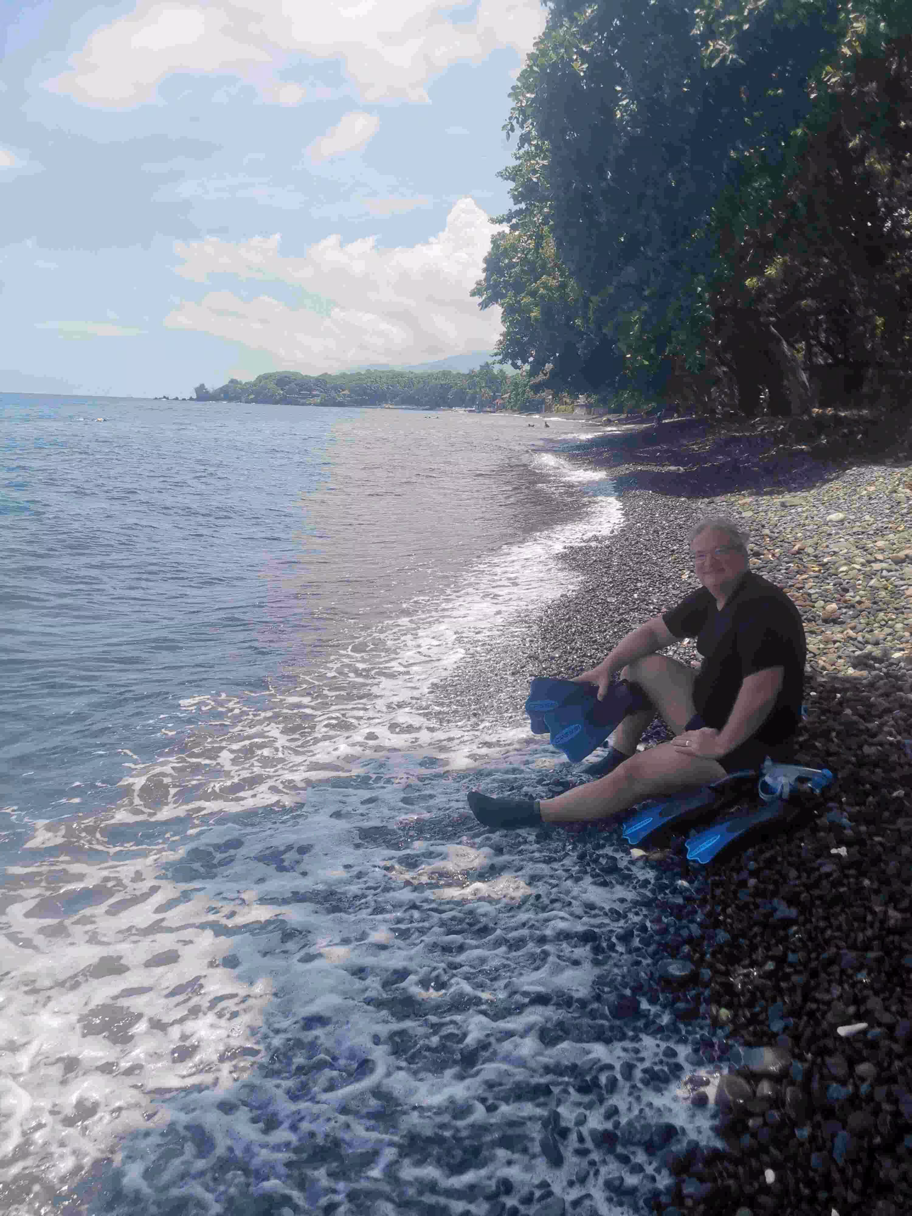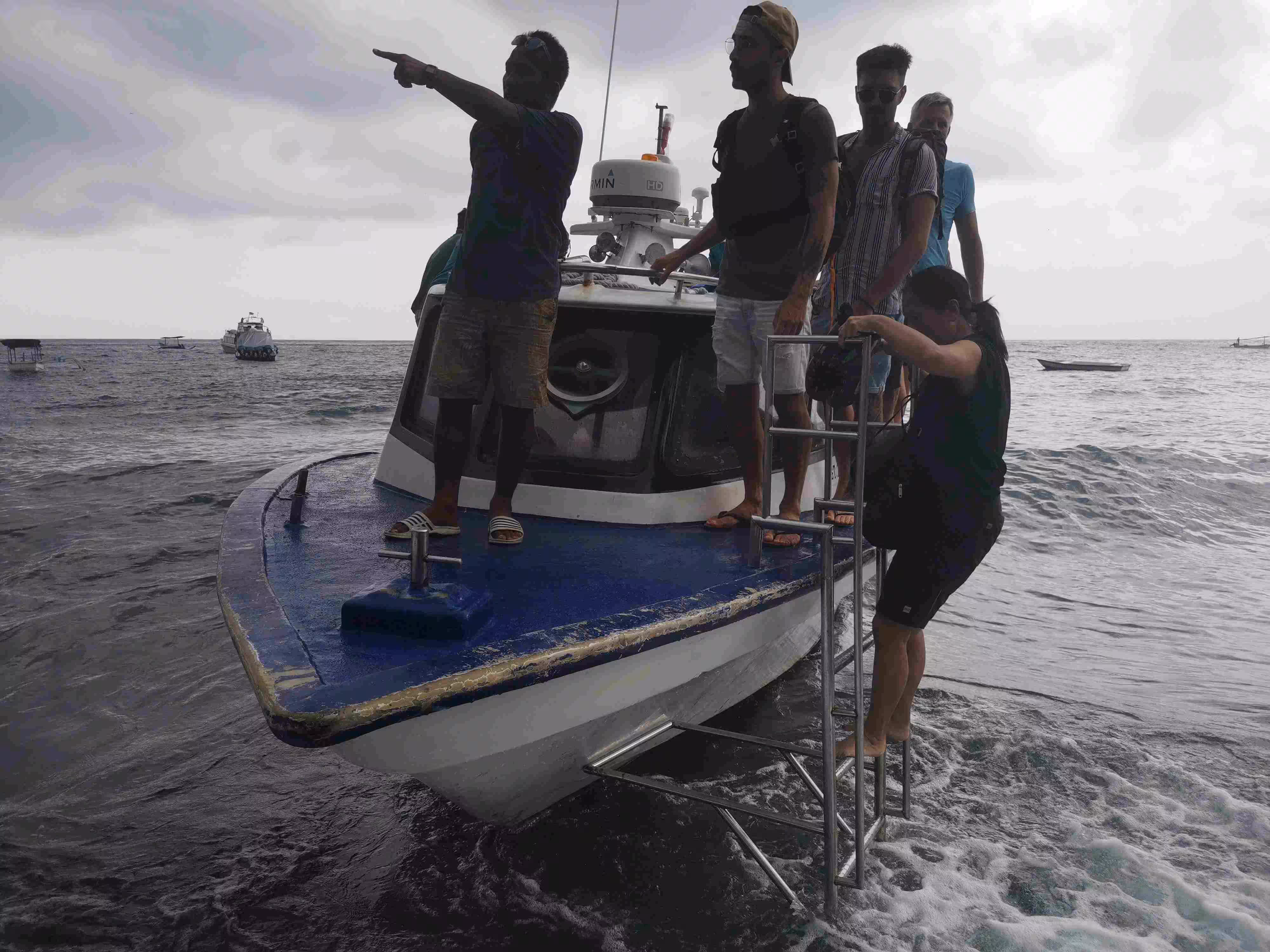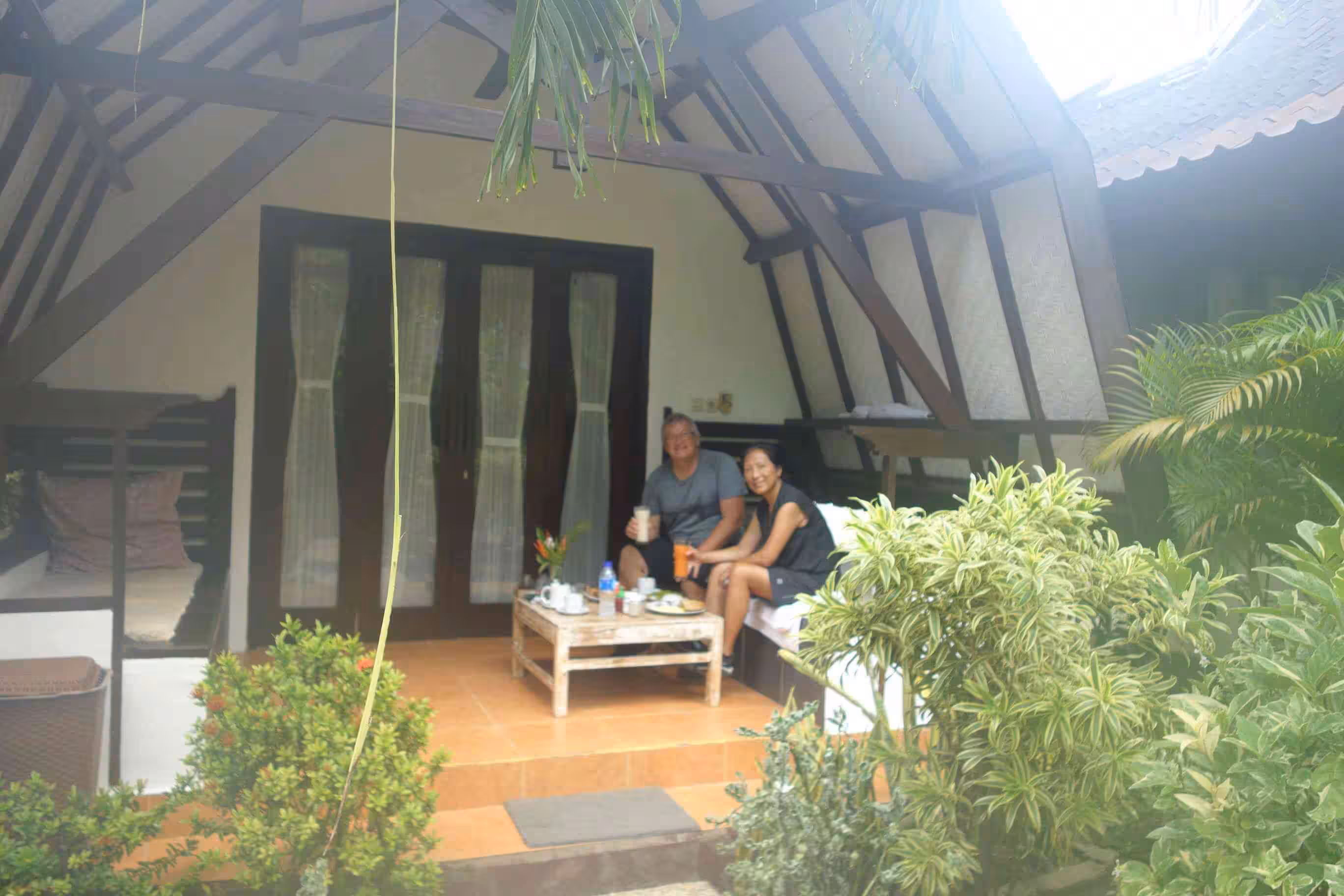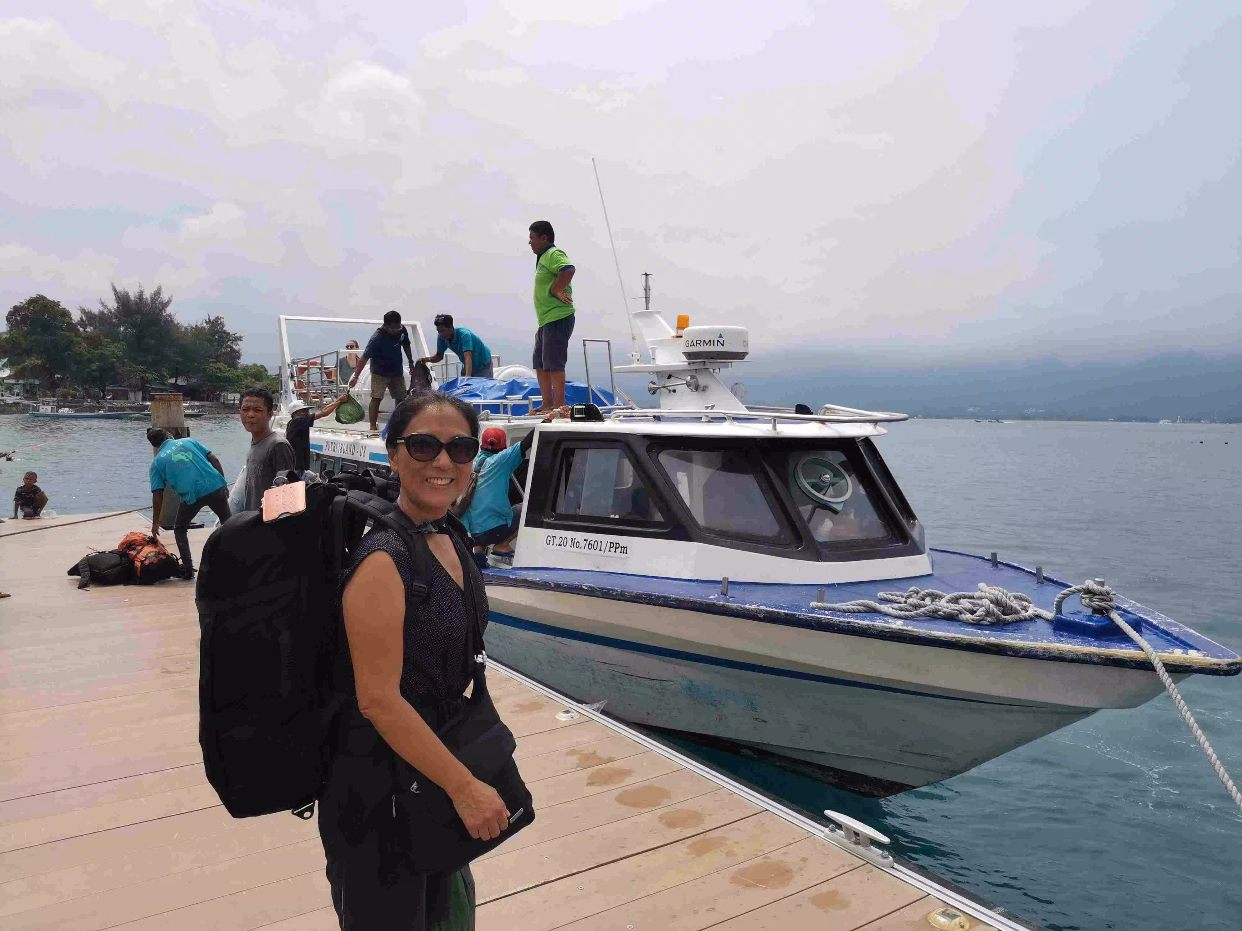 2020.03.01 – Gili Air – Tulamben (Indonesia) – It rained heavily throughout the night. Upon our wake up, we started to question ourselves as to whether our 11am scheduled speed boat to Amed would actually be running. After our 8am breakfast, we sent a WhatApps message to the boat operator. As we did not hear back from them, I borrowed a bicycle from our accommodation and cycled to the ticket office. As I arrived, the staff were just walking in. They promptly responded that the fast boat to Amend would be running as scheduled. We left our accommodation at 10am for the busy harbor area. To our surprise, we met Mark at the dock’s waiting area, our backpacker from Kamloops whom we had shared a car ride from the Lombok airport a few days ago. We shared our respective experiences from our stay at the Gili islands. We bid farewell to Mark again as we boarded our speed boat at 10:45am. The one hour boat ride to Amed was made more enjoyable by the conversation we struck with Sun – an avid divemaster. She came from Switzerland, but was very familiar with the SouthEastAsia dive sites. Upon our speed boat beach docking in Amend, our luggage was carried over to land by the locals. A driver was quick to offer us his services. Sun joined us in the car for a short ride to the dive center she had booked. We continued our route to Tulamben some 15 kms further. We struggled with driver to find our accommodation as its location under Maps.me was not accurate. After driving a few times through the small hamlet of Tulamben and with the help of Google maps, we finally found the hotel slightly off the main road. Shortly after check-in, it started pouring rain. We had our evening meal at the hotel’s very popular restaurant.