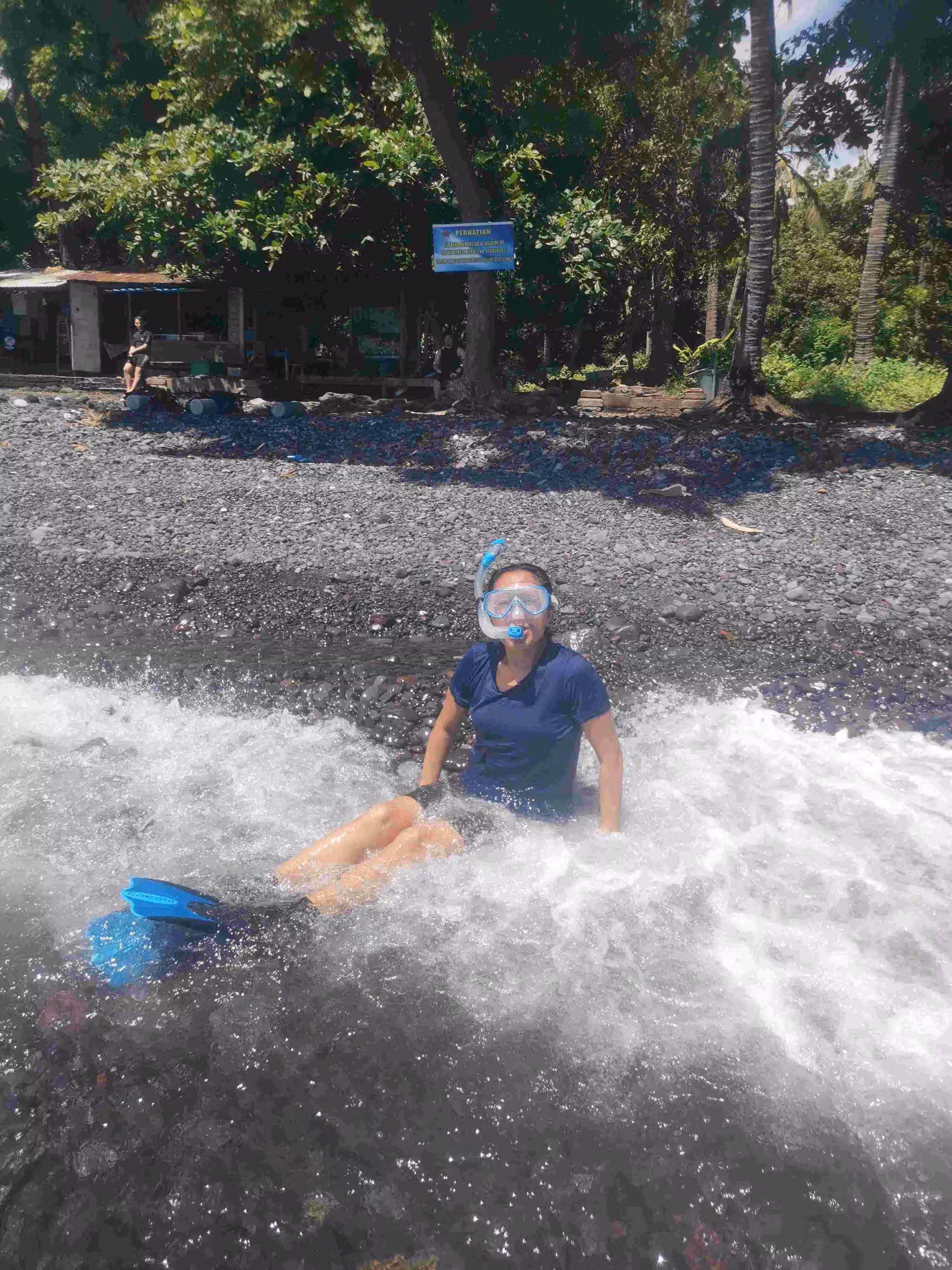 2020.03.02 – Tulamben – Tulamben (Indonesia) – After our courtesy breakfast at the hotel, we opted to head out for snorkeling from the nearby shore. The small hamlet of Tulamben was home to over a dozen of dive shops which were all focused on exploring the inside of the sunken USAT Liberty cargo ship torpedoed by the Japanese in WWII. The shore was extremely difficult to walk on as it was covered by washed stones. After inquiry a few times with the many divers in the area, we finally located the ship wreck – mainly confirmed by the many columns of air bubbles raising to the surface as divers navigated the inside of the sunken boat. Arriving or leaving shore was also challenging as the strong waves kept on crashing into us. After we finished snorkeling around the sunken cargo ship, we went snorkeling around the coral garden area but found little corals. Nonetheless, we appreciated the many colorful fish. Back at the hotel, we enjoyed some relaxing time at the pool. We promptly showed up at 6:00pm at the hotel’s restaurant for our evening meal. We had made a reservation after our morning breakfast to ensure we had a table available.