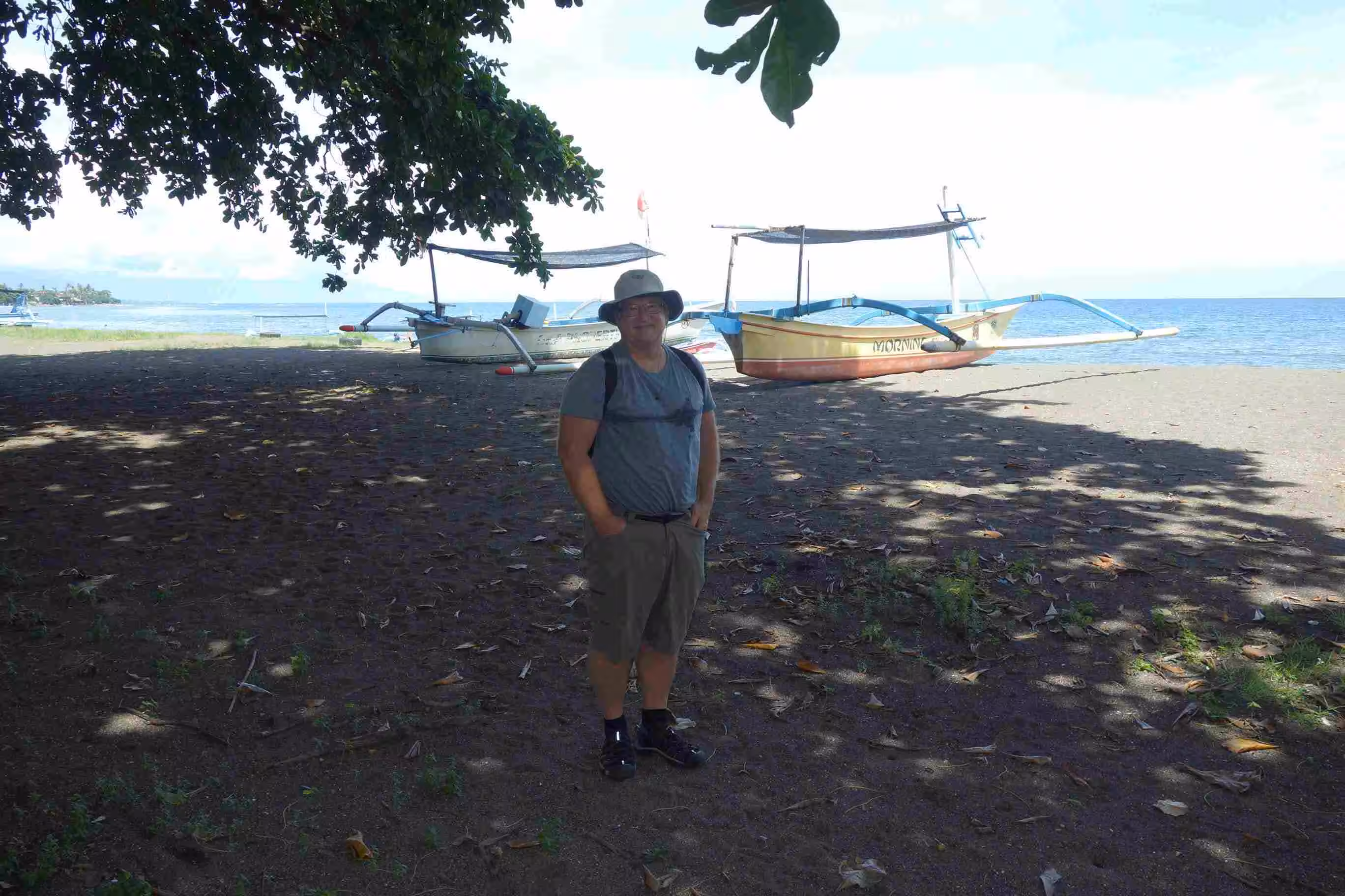 2020.03.05 – Lovina – Lovina (Indonesia) – After breakfast, we managed to order a GrabCar for a ride to the beach area. Although our accommodation was very new and comfortable, its location was a bit far from the town center. We walked along Lovina beach for over an hour. We noticed that many of the small boats used for excursions to see dolphins were dragged up high on the beach as the tourist demand was clearly quite low. On the walk back to our accommodation, we stopped at Pepito’s Market, a large grocery store. We bought snacks and deli food for our evening meal. Back at our accommodation, we relaxed for the reminder of the day in our room and in the pool.