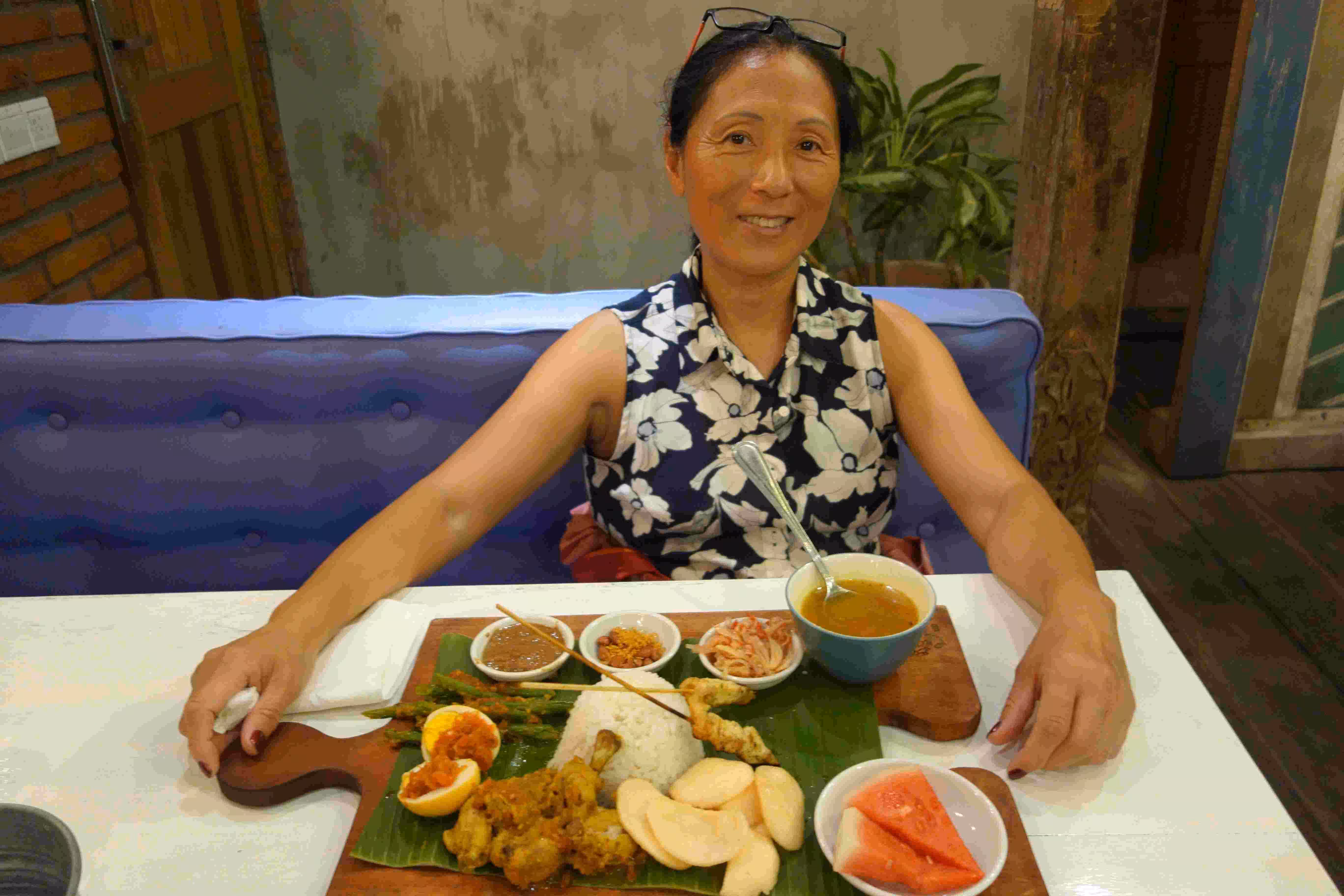 2020.03.10 – Ubud – Ubud (Indonesia) – Exceptionally, our accommodation booking had not included a breakfast. At check-in yesterday, we thought that their breakfast buffet at $7.5cdn was very expensive. We had to reconsider our view as the breakfast offering from other restaurants were at least as expensive if not more. After filling-up at the buffet, we went out to explore Ubud’s streets, temple sites and market. As Jenny was hoping to enjoy a spa treatment tomorrow and we had not heard back from our online booking yesterday, we decided to drop by their facilities. Jenny was able to register on-site for their Holistic Spa Treatment (5.5h) with free lunch and hotel pick-up/drop-off. On our walk back to our accommodation, we bought another SD card for our camera as we started to have additional memory card issues yesterday. We bought a few snacks and beers before returning to our hotel. After a rest in our room, we went for a visit of the famous Monkey Forest which was very near to our accommodation. The site was home to over 700 monkeys roaming freely. It was hailed as both a great tourist attraction and a tourist hell. After reading many of the bad tourist stories, it was apparent that those folks had not followed the park’s guidelines for dealing with the monkeys. Before our visit, we made sure we had no food, no water bottle, no backpack with us to avoid tempting any of the monkeys. Our one hour and half visit was uneventful with the monkeys. Nonetheless, at the end of the day, Jenny felt like she had aged a few years as a result of her fear of the monkeys. Late afternoon, we enjoyed our hotel’s infinity pool. We visited a nearby warung for our evening meal.