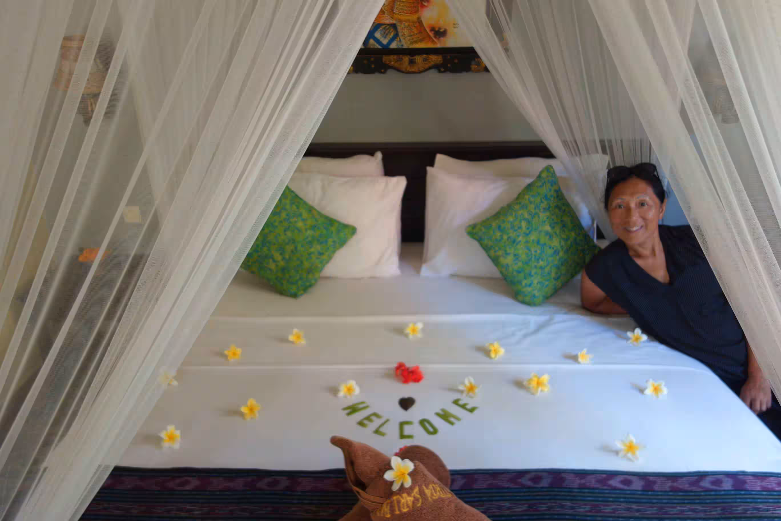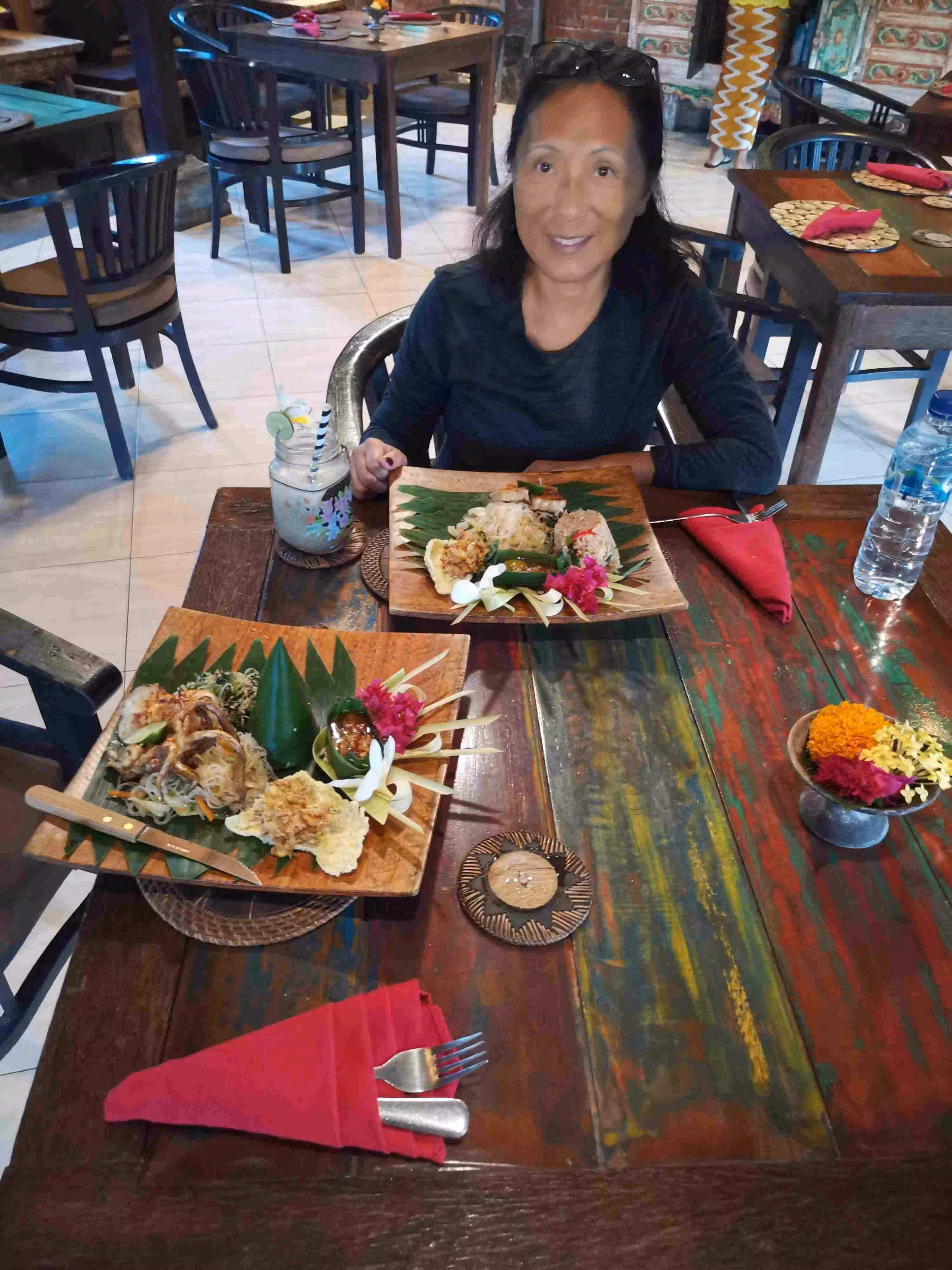 2020.03.09 – Munduk – Ubud (Indonesia) – We continued to enjoy the mountain view during our last breakfast in Munduk. Our hired car showed up promptly at 10:30am for our 2h ride to Ubud. We had requested a stop along the way to take advantage of one of the selfie sites around Twin Lakes. We understood that selfie sites, which started to show up all over the world, were setup to provide Instagram-able scenery (e.g. giant swing, bird nest, heart shape, etc). We stopped at one of the sites which according to comments on Maps.me was much cheaper than other selfie site around. Unfortunately, we had to pass on the photo opportunity as even this latest site wanted over $10cdn per person to access their small Instagram-able site. On route, we retraced some of the road we had taken during our one-day Lovina tour. Upon our arrival in Ubud, we quickly realized that it was a tourist mecca with all its accommodations and restaurants. After our driver dropped us off, we were able to check-in into our room. After settling in, we visited the nearby large and popular yoga business for some information but we were not impressed by the welcome. Later we had lunch and struggled with the menu prices. On our walk back to the hotel, we checked several restaurant menus for breakfast and concluded that the food prices were twice as expensive than other towns we had visited. We bought some snacks at a nearby grocery store. Back at our room, we reviewed our excursions/activity options for our stay in Ubud. We also spent a fair amount of time on TripAdvisor reading restaurant reviews. We ended up having our evening meal at a restaurant across the street from our accommodation.