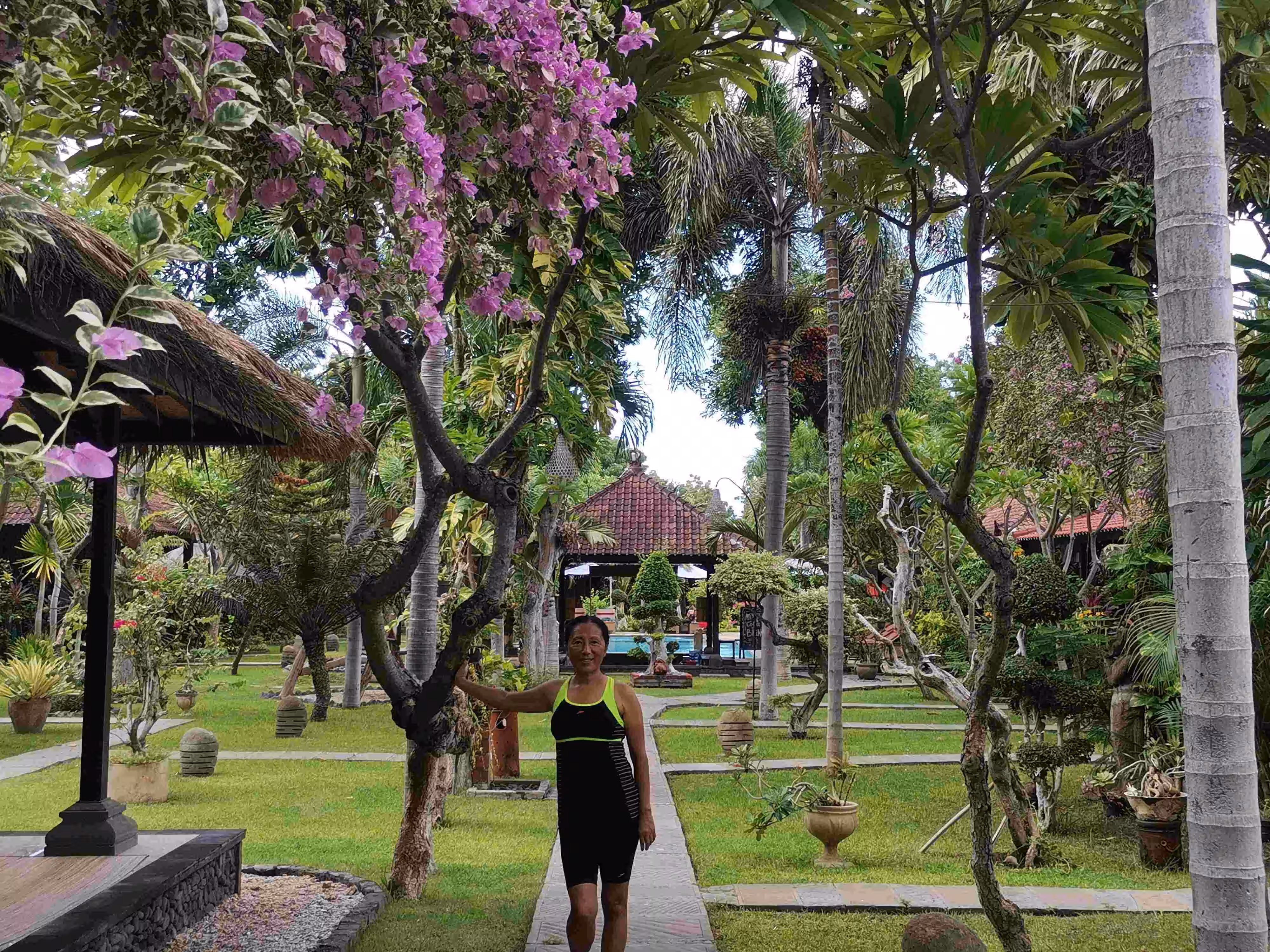 2020.03.11 – Ubud – Ubud (Indonesia) – After breakfast, Jenny was picked up at our hotel lobby by the Spa salon for her 10am appointment for her Holistic Spa Treatment package (5.5h) that included: a traditional Balinese Massage (60m); body scrub and mask (120m); facial treatment(60m); hair spa (30m); manicure(30m) and pedicure(30m). While Jenny relaxed at the Spa, I tracked down a bicycle rental outfit and rented one of their mountain bicycles for $3cdn/day. Soon after, I was riding in Ubud’s countryside along rice fields. Even along busier road and drenched in sweat, the cycling was still very much enjoyable. I managed to visit the Goa Gajah (Elephant Cave) before returning to Ubud and dropping the bicycle off after a good 25km ride. Jenny and I showed up at the hotel almost at the same time. We enjoyed another swim in the infinity pool before heading out for our last evening meal in Ubud.