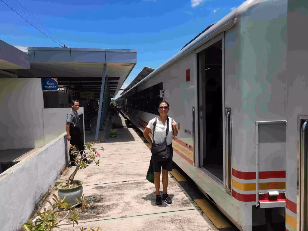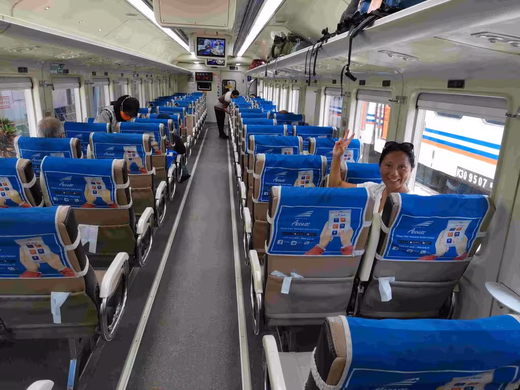 2020.03.19 – Banyuwangi – Surabaya (Indonesia) – After a relaxing breakfast at the hotel, we packed our bags and checked-out of our room. We had to ask the hotel staff to request for us a car to the train station. During our car ride to the train station, I shared my concern with Jenny that the train station might be closed as I was unable to locate the train station using my Grab application while the hotel staff had used a different shared car application (Go-Jek). It was only when we walked into the train station and saw other passengers that we felt relieved. We noticed a big change in the last 48h around us regarding the Covid-19 as more folks were wearing masks and staff everywhere were disinfecting public area surfaces. While waiting for the train, we were interviewed by a local news team regarding our views on the situation with Covid-19. We boarded promptly at 11:30am our premium train carriage. We enjoyed the views along our six hour train ride to Surabaya – a city on our initial travel itinerary. Upon our arrival at the Sidoarjo train station in the suburb of Surabaya, we ordered a GrabCar to our hotel some 13 kms away. The hotel staff in Banyuwangi had recommended that we opted for Sidoarjo as opposed to the main train station in order to avoid much of the Surabaya traffic grid lock. As we walked up to our nice business hotel, we were greeted outside by staff who needed to take our temperature with a thermal thermometer before we were allowed into the hotel. Thankfully, both of our temperature were normal. We enjoyed our evening meal at our hotel’s restaurant.