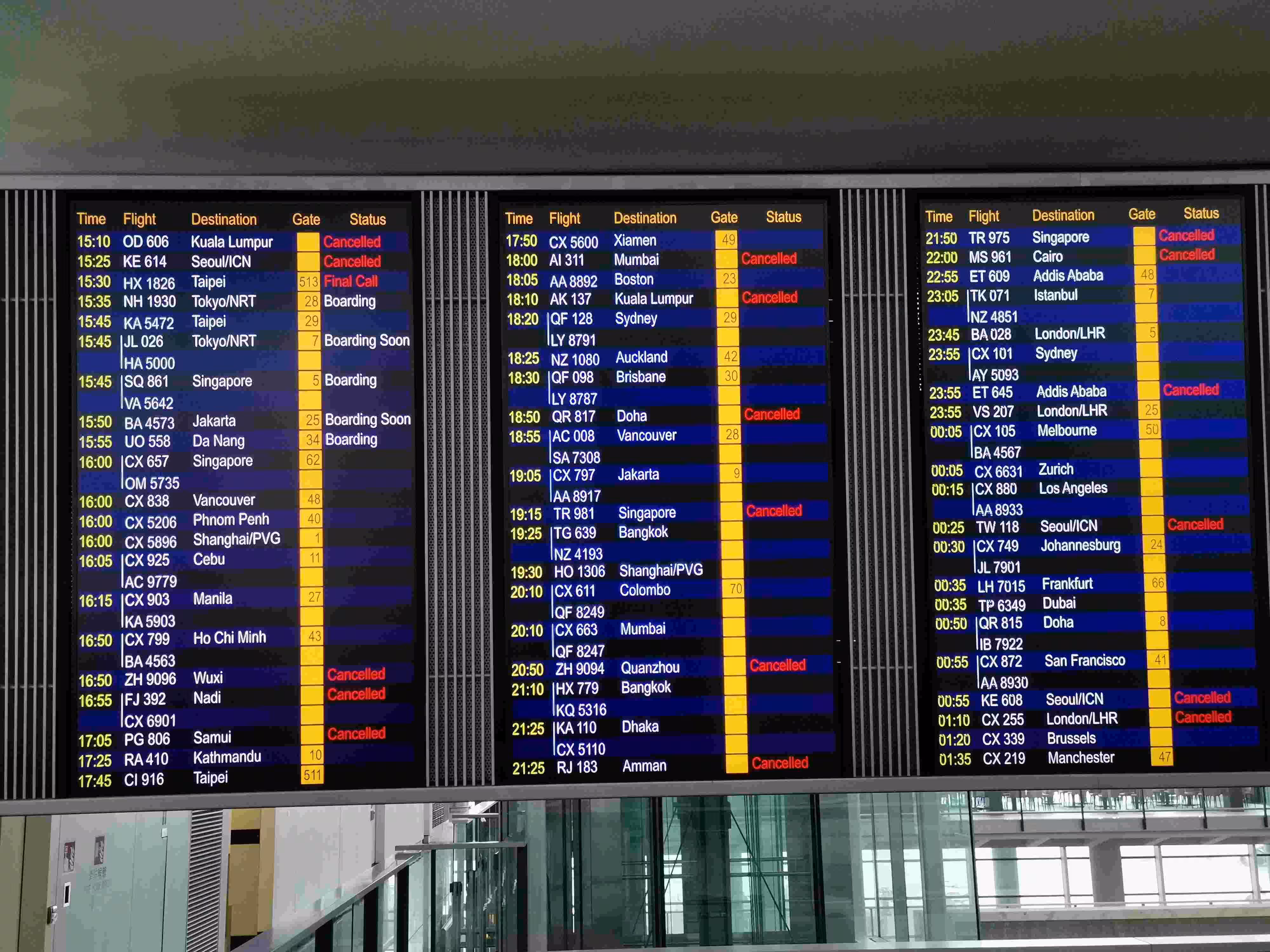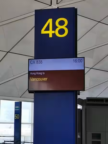2020.03.20 – Surabaya (Indonesia) – Montréal (Canada) – We woke up early this morning and were comforted by Cathay Airlines’ flight reminder email. Jenny and I showed up 10 mins earlier at the hotel’s 5:30am buffet breakfast. At 6:00am sharp we boarded the hotel’s shuttle van for a 10 minutes ride to the airport. We were expected a very chaotic environment but as we stepped into the airport, it was deadly quiet. We checked in our bagages without even queuing. The counter agent was very friendly and looked almost sad to see us leave Indonesia as he wished us a great flight home. We took pictures in front of some of Java’s famous volcanoes that we would be missing this time around. It was very strange to pass through immigration and security screening counters without queuing. All the airport staff looked happy to see passengers show up. We boarded the Cathay Airlines aircraft promptly at 7:45am. The aircraft took off 5 minutes early with about 40% of its seats occupied. The flight to Hong Kong was pleasant and uneventful without anyone queuing for the washroom. On board service was usual, except flight agents wore masks and gloves – as expected. Once at the Hong Kong airport, we walked over, as transit passengers, to our gate for our next 11h flight to Vancouver. Along the way, we were confronted once again to a very quiet airport with barely any passengers.