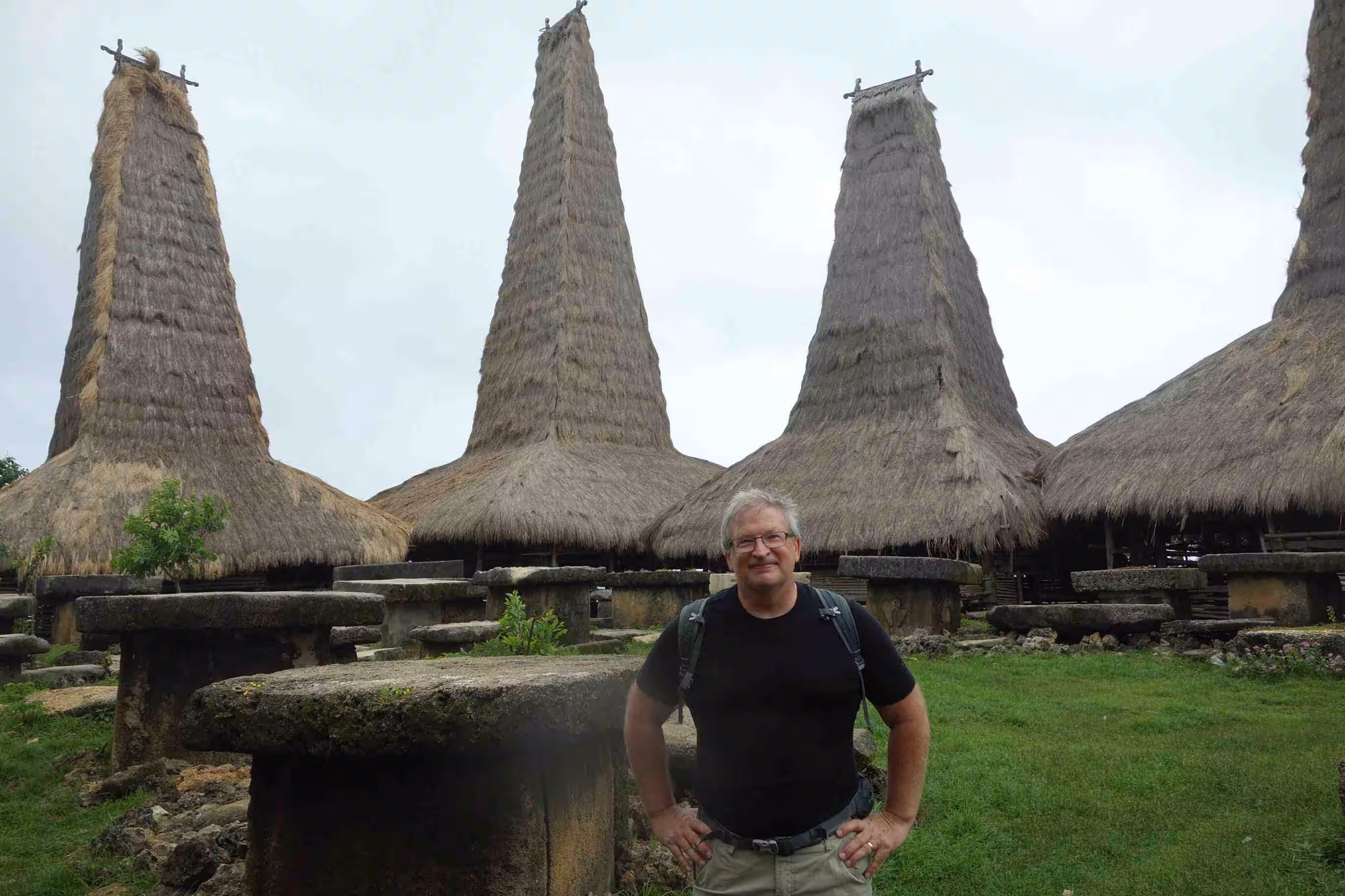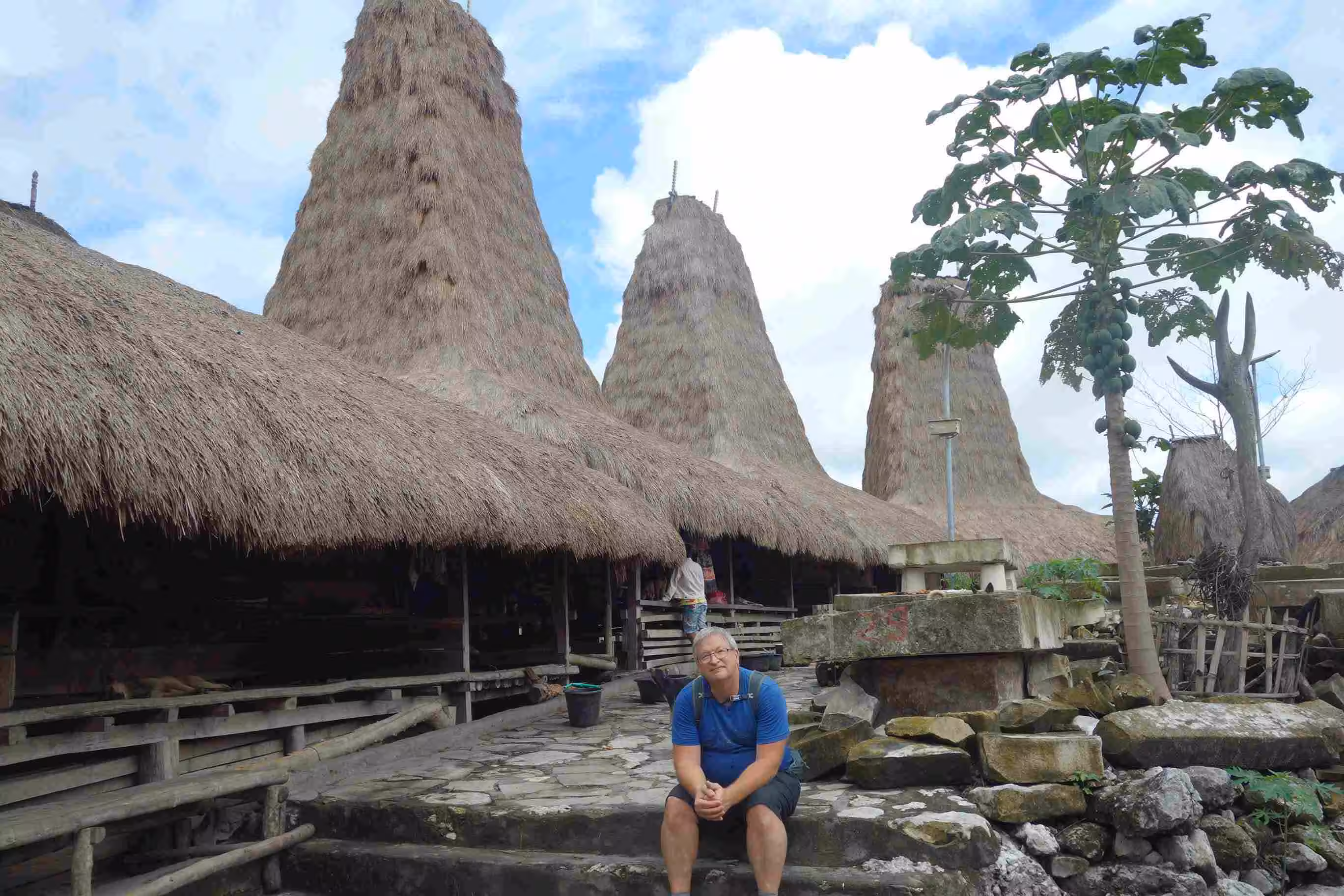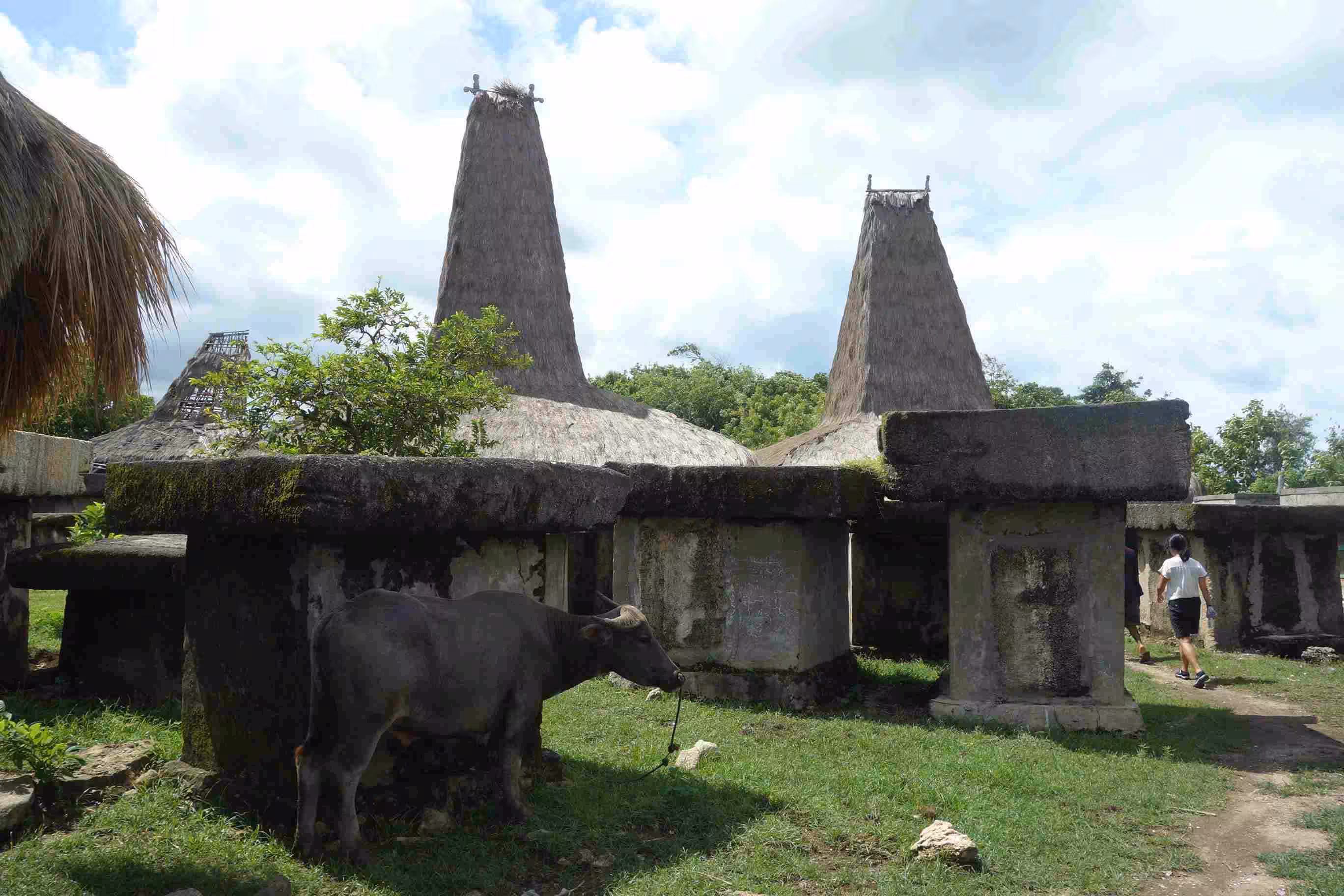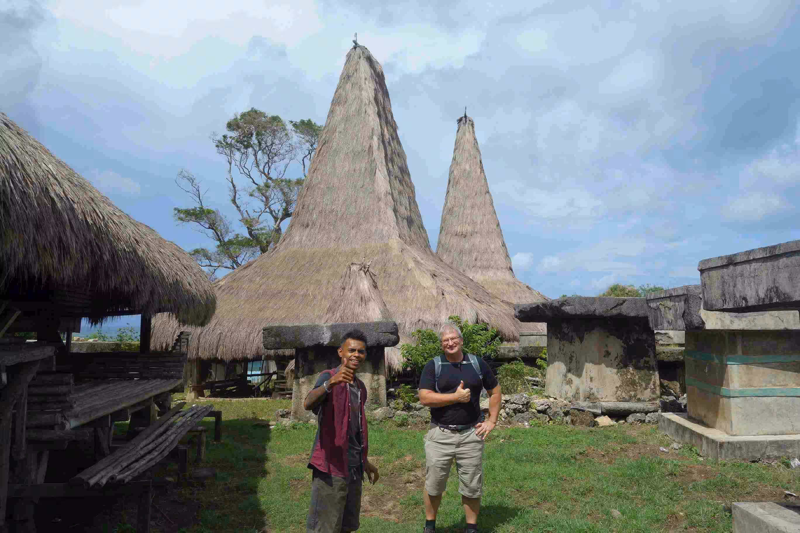 2020.02.20 – Tambolaka – Tambolaka[Sumba Island] (Indonesia) – Shortly after breakfast at the hotel, our driver, Ino, introduced himself to us. After briefly reviewing with him our proposed itinerary, we got him to drive us to an ATM for funds, to a local market for fruits and some extra betle/areca. We learned so much from Ino about the various Sumba customs and life on the island in general. We visited two traditional villages and experienced meeting the locals including signing the guestbook and offering our betle/areca gifts. Although it rained lightly after our second traditional village visit, nonetheless we finished our tour with a visit to a beautiful laguna. A popular activity at the laguna involved renting a tube and floating around. After one hour rest at the lugana, we drove another hour back to town where Ino dropped us off at our hotel shortly after 3pm. We were somehow inspired by our latest tour as it provided us with much insights about the uniqueness of the island of Sumba. Sadly, we also learned that much of the land was being bought by foreign interests. We had our evening meal at the cafe shop across the street.