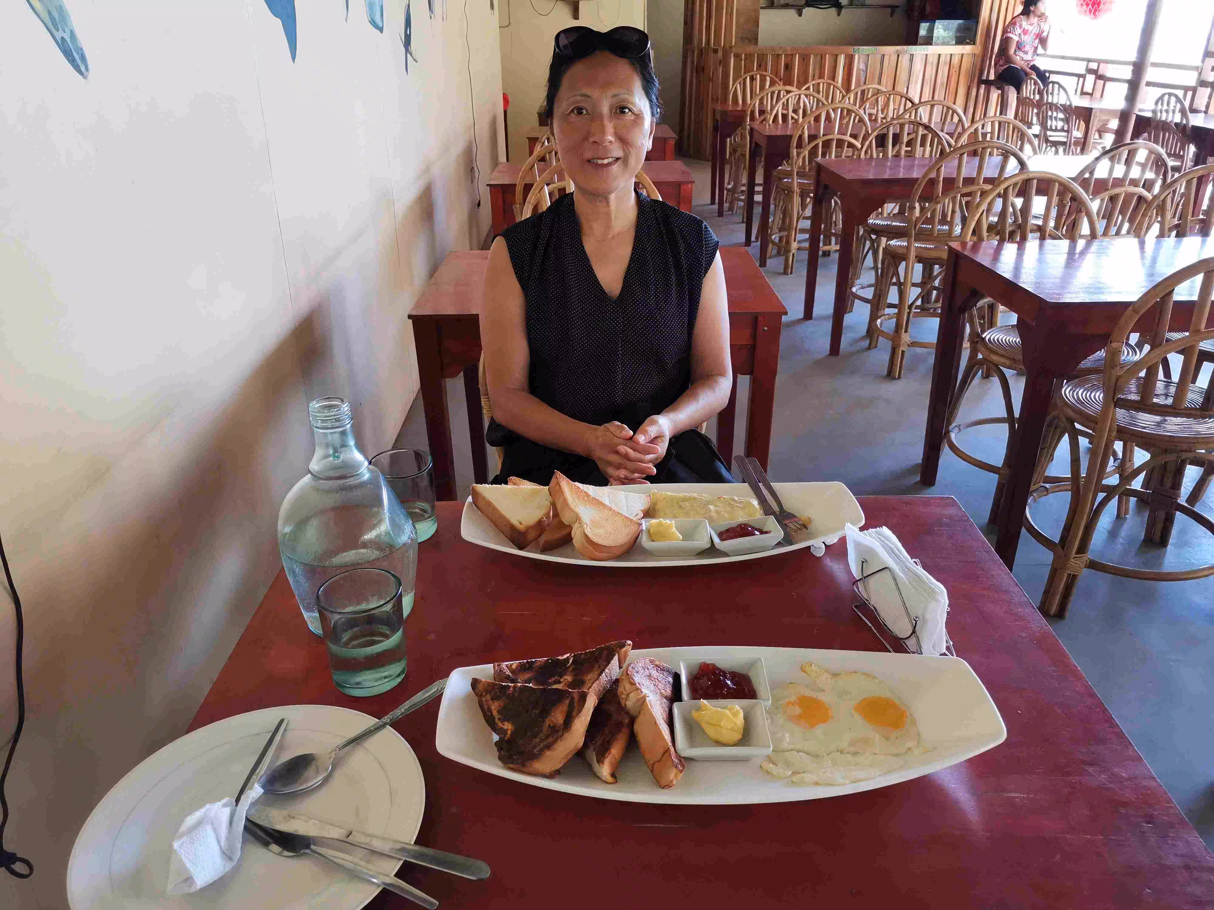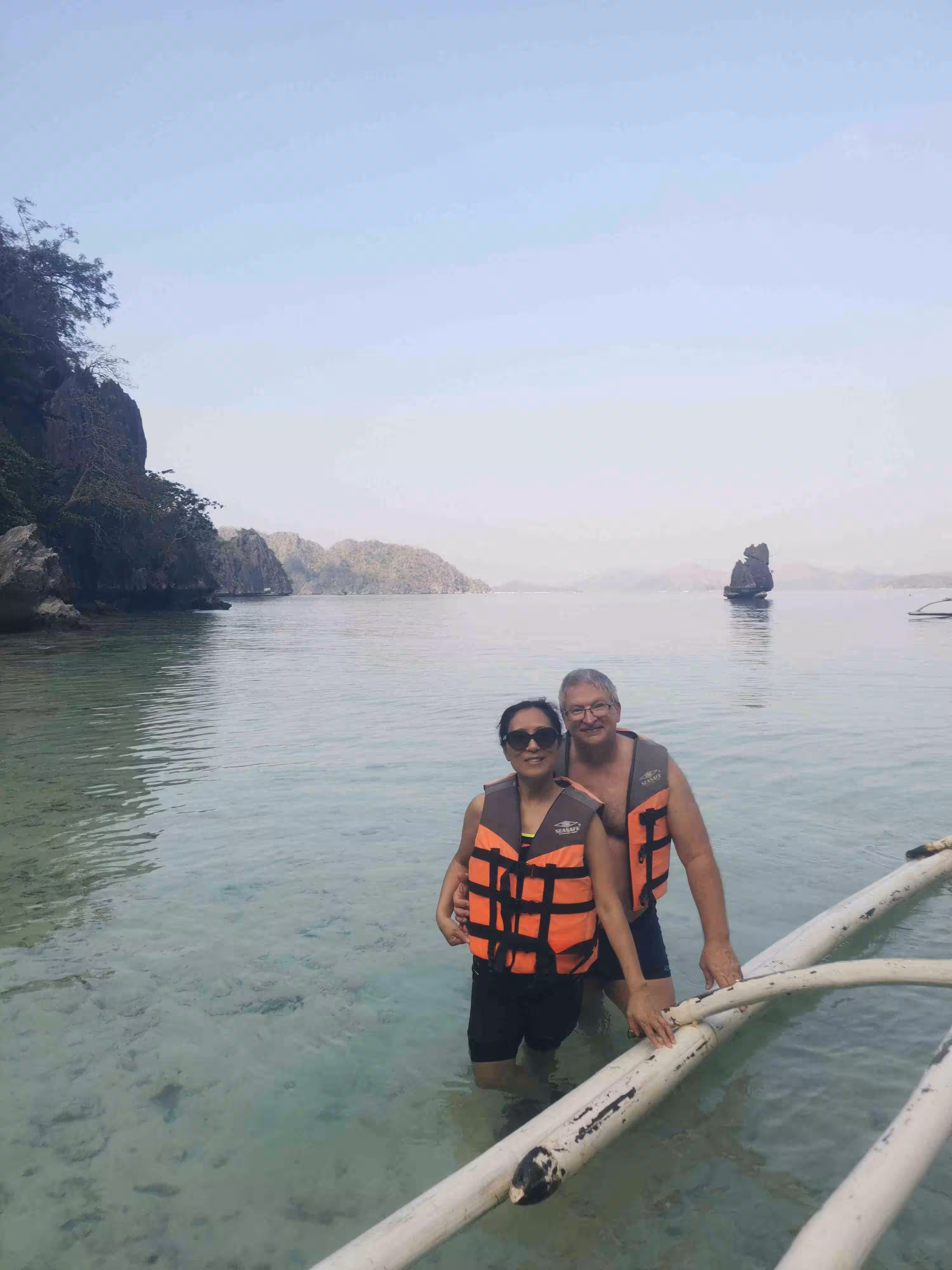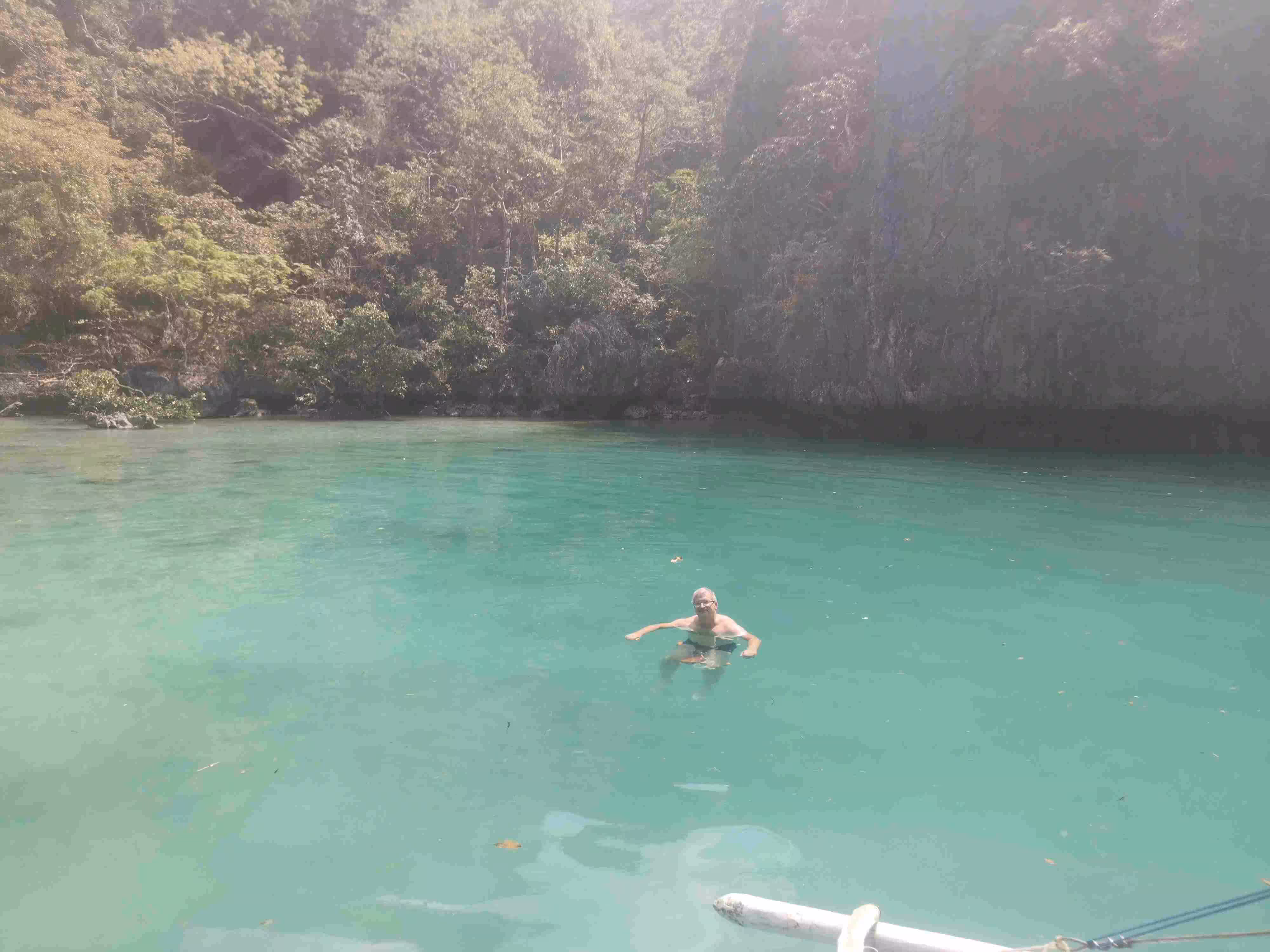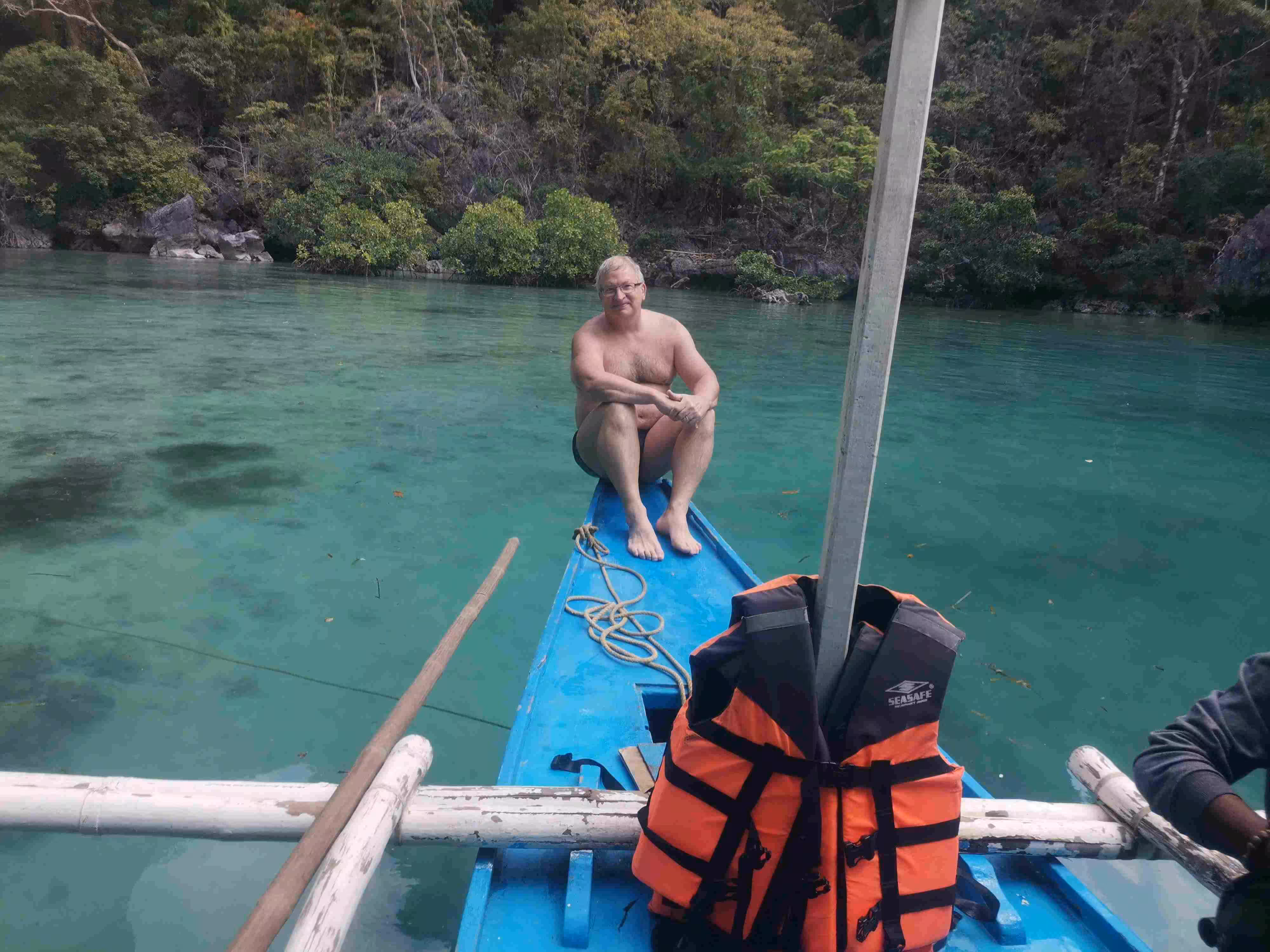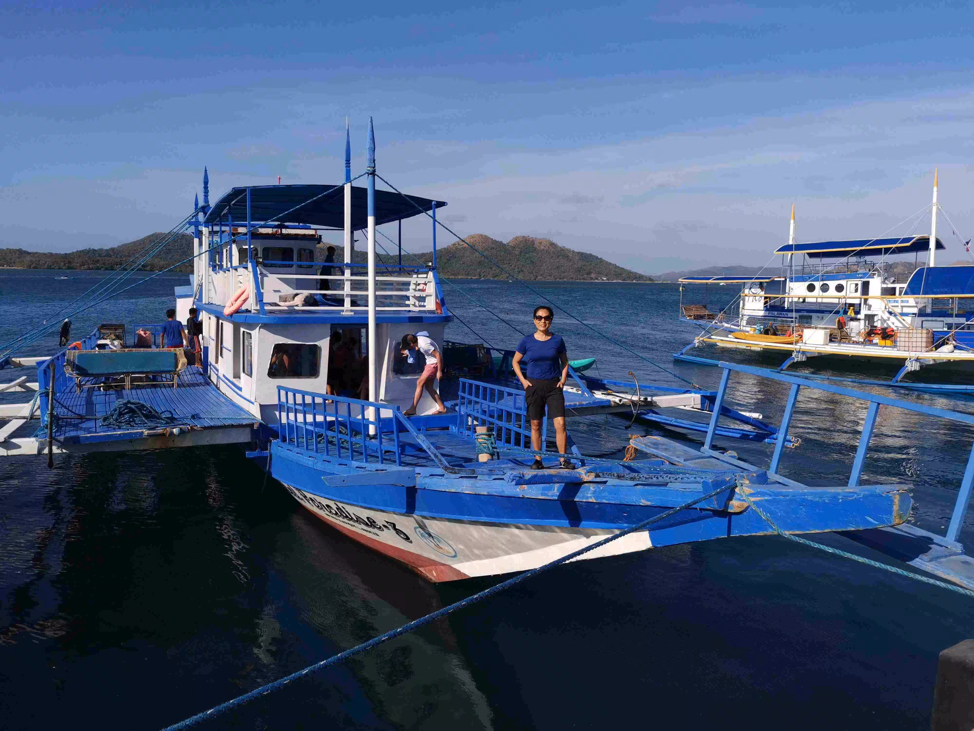 2020.01.31 – Coron – Coron (Php) – We headed out to the same cafe as yesterday for our breakfast. Back at the hotel, we checked out of our room and left our luggage with the front desk while we went on our private boat tour. We met our boat guide at 7:30am near the dock. He brought us to a nearby market to choose some fresh meat for our lunch. Before leaving the dock, we had to confirm and pay the entrance fees to each stop-over site we planned to visit. After considering 5 stops, we finally agreed on 4 stops. The boat, typically called a bangka, with its captain and guide brought us for a swim at the famous Twin Lagoon, followed by two snorkeling sites with impressive corals and finished off with a relaxing time in another small lagoon. We were back on firm ground by 1pm. We picked up our luggage at our hotel and moved again, with the help of a moto-tricycle, to our third hotel in Coron. Jenny took advantage of the hotel’s clothes line to do an extensive clothes wash. We spent the rest of the afternoon relaxing in our room. Although we had appreciated the cloudy sky during our earlier private boat tour, we did not realize that we got sunburns on our back as we snorkeled. We had our evening meal at a nearby restaurant.