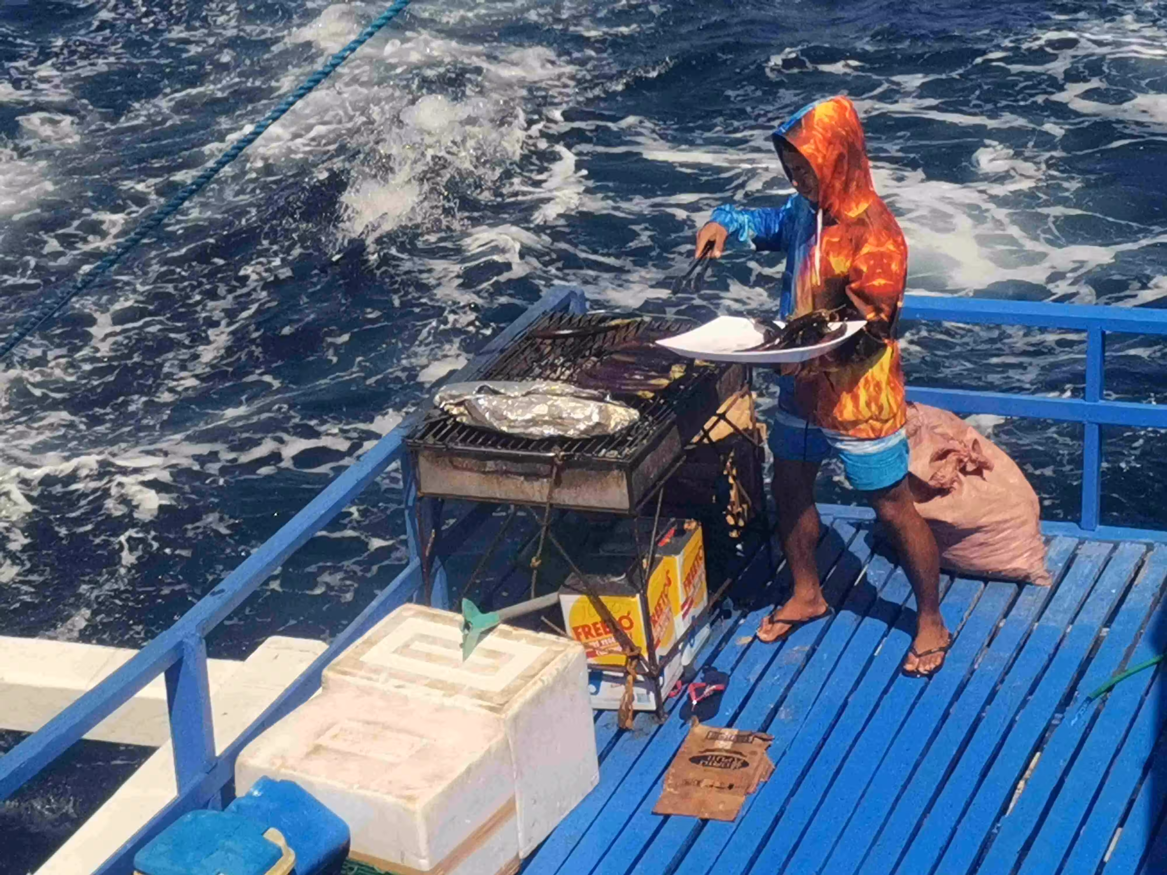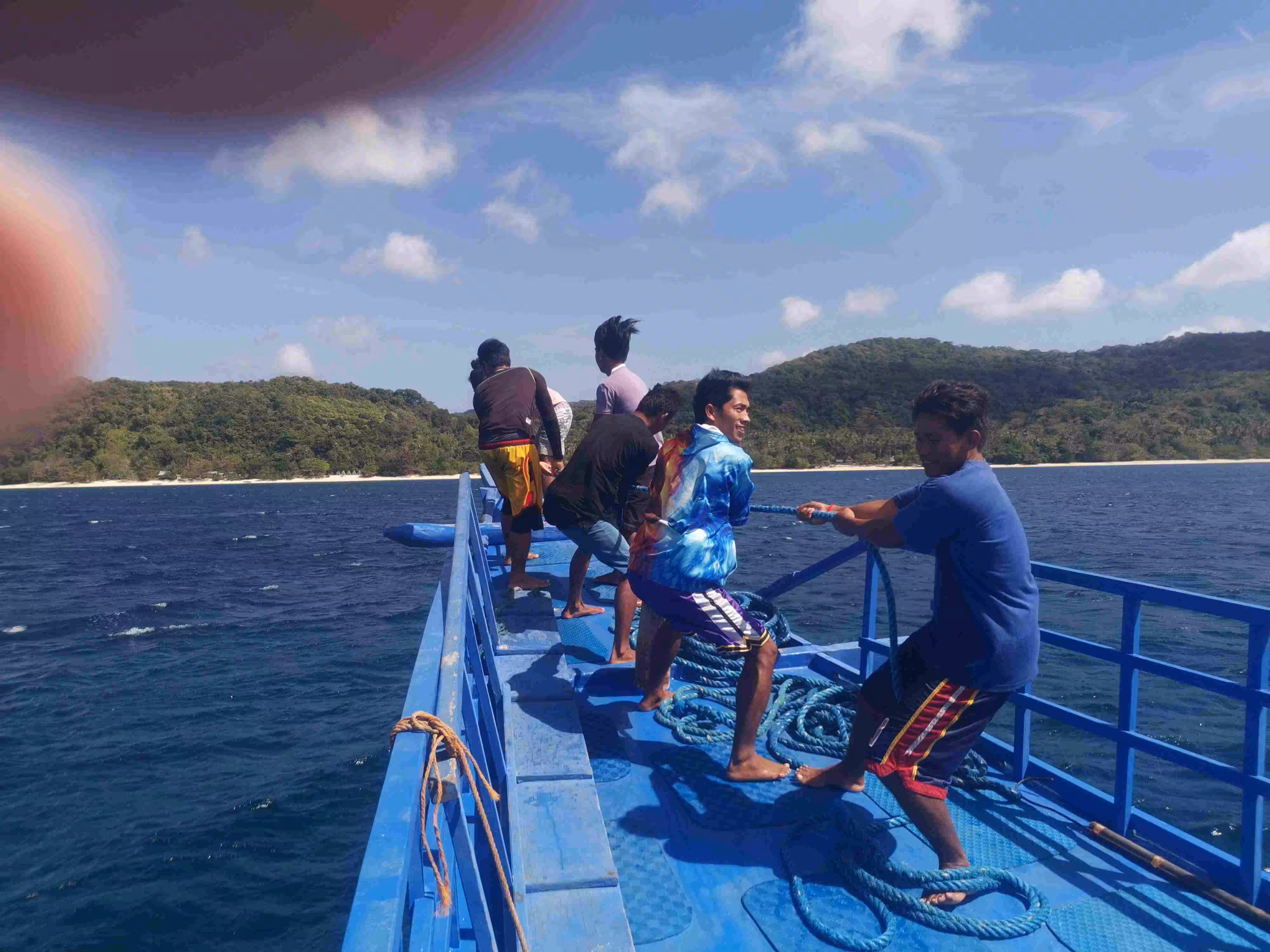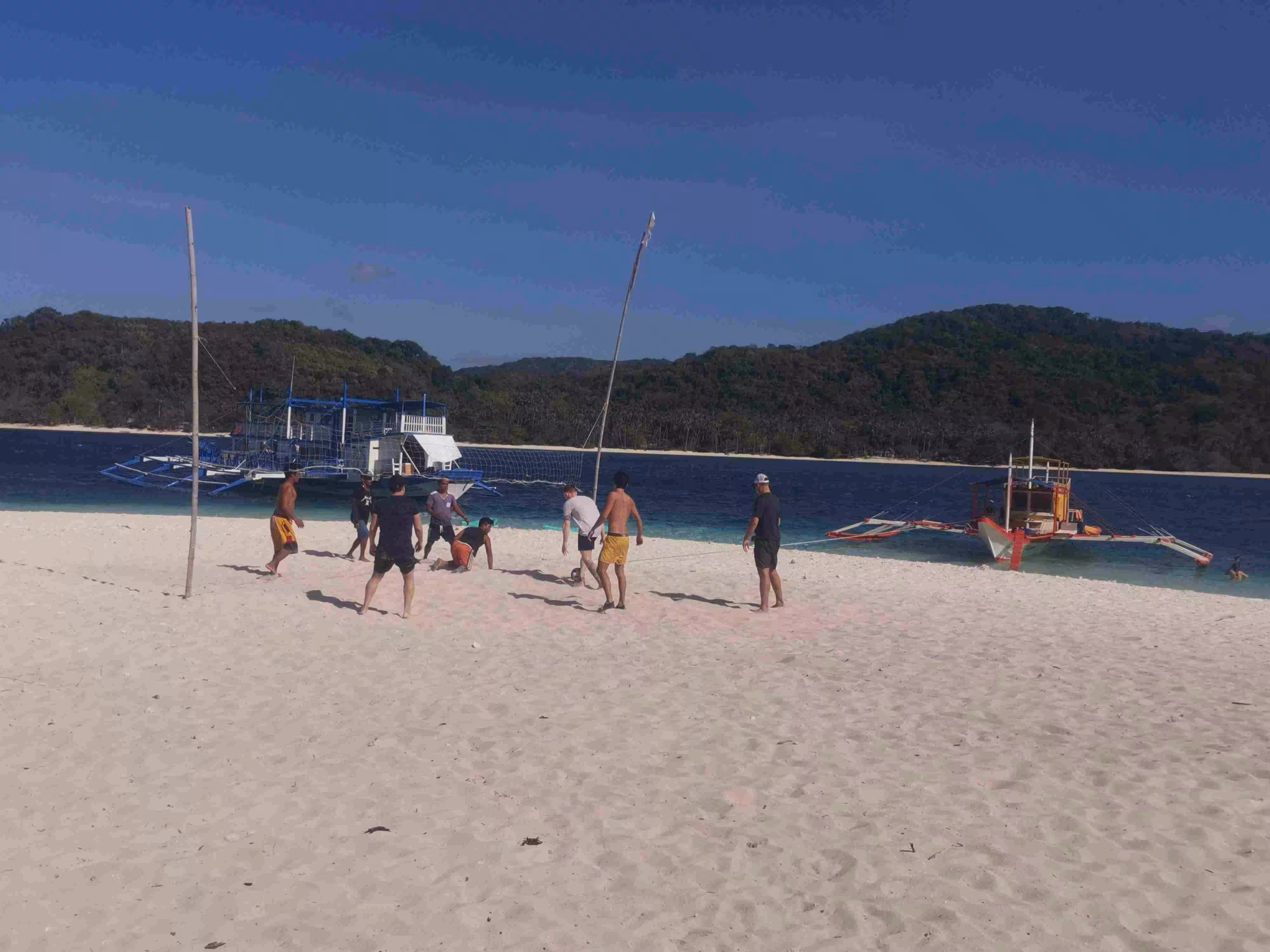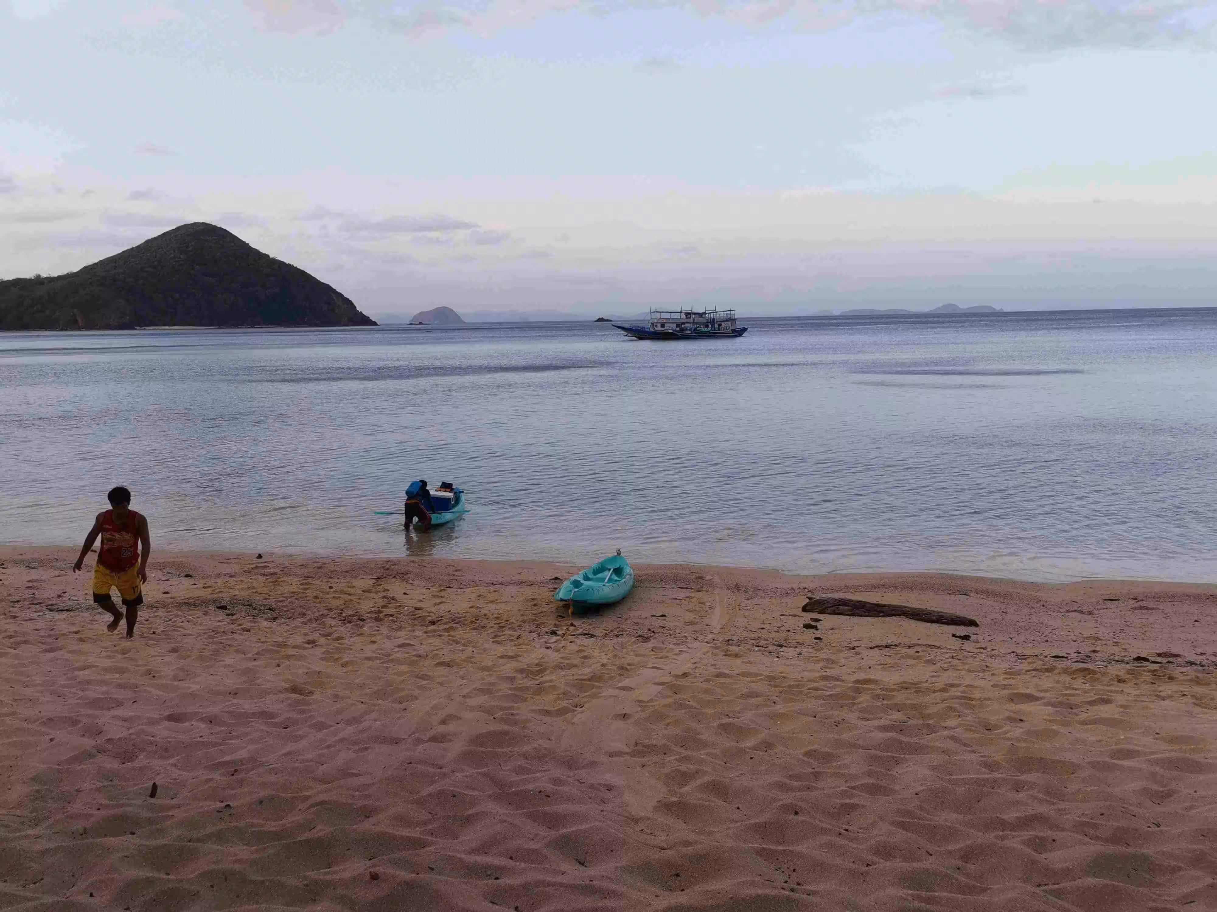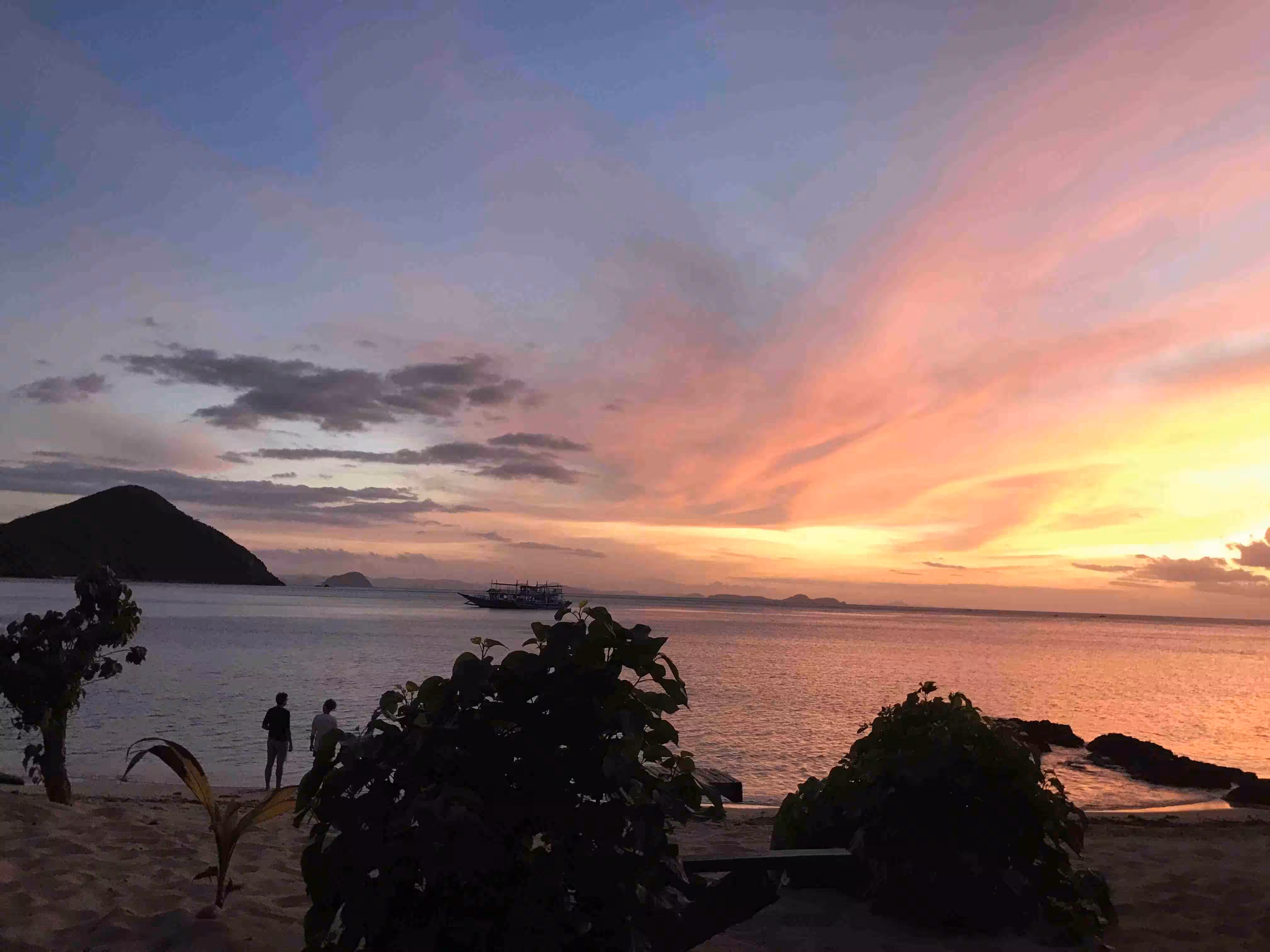 2020.02.03 – Lobog Beach Campsite – Balemben Beach Campsite (Php) – During the night, the wind kept the sand flies away but hindered somewhat our sleep as the door curtain and mosquito net kept on flapping in the wind. After an excellent breakfast at our campsite, again kayaked over from the boat, we continued our 2nd day itinerary with its 5 snorkeling/beach stops. Lunch was again served on the boat. We arrived at our 2nd night beach campsite shortly after 5pm. The huts, shower and toilets arrangement were similar to yesterday. We learned that the tour company had established these huts only in the past year as previously the tour participants would have slept in tents on the beach. Our second awesome tour day wrapped up with an excellent evening meal and a bonfire.