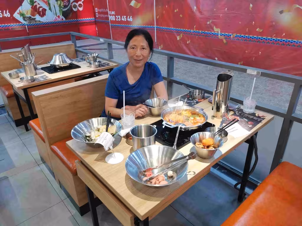 We woke up at 4:20am to reach the pier for our Cai Rang Floating Market tour. To our delight, the old lady was waiting for us. She quickly brought us to a sampan operated by another lady. We started at 4:45am for our 6kms journey down the river towards the market in total darkness. It was really surprising to see how many local activities took place in the early hours of the morning. An early arrival at the floating market was essential to fully appreciate the peak of trading activity. We arrived in the area as the sun was slowly rising. The river leading to the floating market was overwhelmed by tourist boats of different sizes. Sadly many floating markets in Vietnam kept on shrinking in size as the locals adopted the larger grocery store convenience. We were back at our hotel by 7:45am in plenty of time to enjoy our hotel’s breakfast. Although our sampan lady driver did not speak English, nonetheless we appreciated our modest tour at $23cdn total while other similar tourist packages were $23 usd per person. Later, we visited two additional tourist sites with the help of Grab. Along the way, we exchanged some cdn dollars into local currency at a jewelry store. Shortly after noon, we returned to our room for a well needed nap in order to recover from our early morning wake up. Now we understood where all the tourists were during the day: they were all resting or sleeping. In the early evening as we stepped out of the hotel for our dinner, we stopped at an ABM I had tried the previous day and to my surprise, the machine dispensed a stack of 50K local notes. Along the way, we discovered an inexpensive hot pot restaurant in a nearby shopping mall where we ate our dinner.