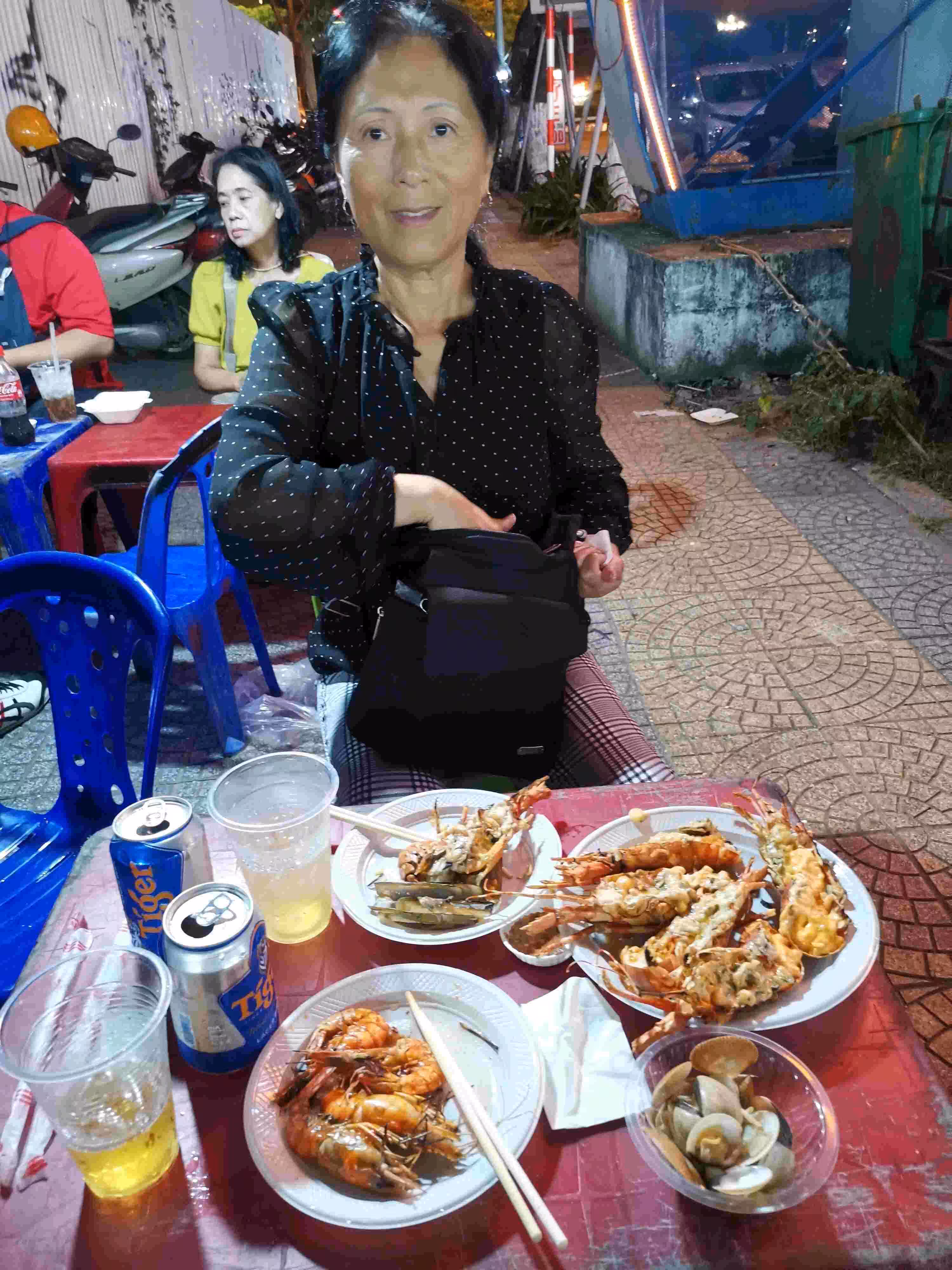 Our hotel offered us breakfast “à la carte”. Later, we took a Grab to visit the nearby Marble Mountains. We spent almost 2hrs visiting the site as we enjoyed the work-out going up/down stairs. As we were about to order our Grab to return to our hotel, a local offered us a ride for the same price as Grab – we accepted. The driver spoke reasonable English. We learned along the way, that Grab typically took 35% or so commission on their fare. At the end of the ride, we exchanged WhatsApp numbers in order to call him for our drive to Hoi An on Saturday. We spent most of the afternoon doing some trip planning including our Laos eVisa application, our Halong Bay 3d/2n cruise booking, airfare purchase, hotel reservation, etc. In the early evening we took a Grab to a shopping mall in the hope of purchasing a replacement USB-C cable that started to fail. We left the shopping mall without any purchase. We walked along the riverfront to the lively Son Tra Night Market where we had our dinner. We selected a combo plater of fresh seafood (3 small lobsters, squid, prawns, oysters, clams, etc) which the staff cooked everything to perfection for us. We did like the locals – we sat on tiny plastic chairs and low table while we ate our delicious seafood. Later as we strolled along the market’s alleys, we managed to purchase two USB-C cables for the price of one at the shopping mall. There’s a good reason that Son Tra Night Market was considered a tourist attraction as the atmosphere was really full of life – even the tour buses dropped off their guests there to enjoy the vibrant night life. We returned to our hotel with another Grab.