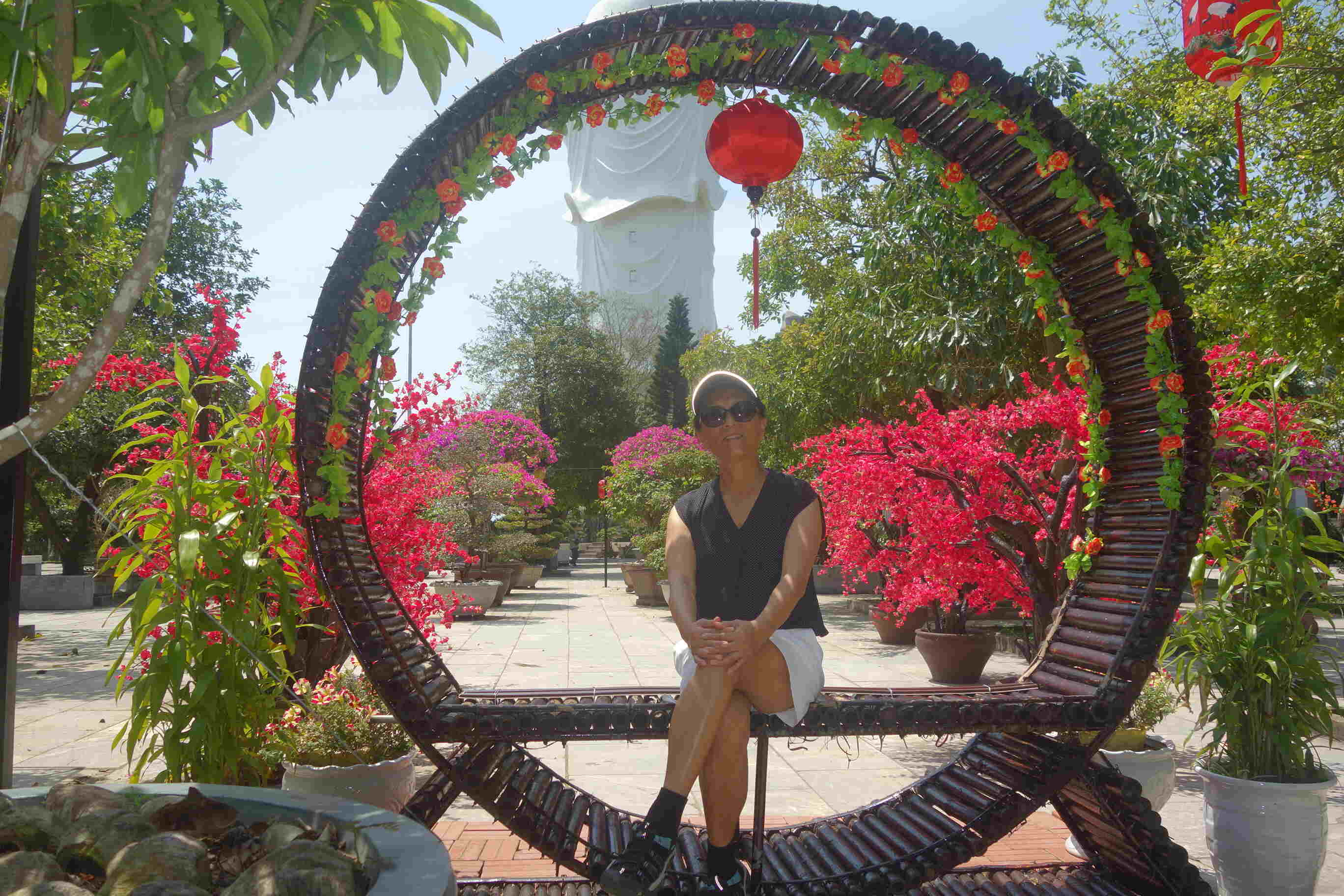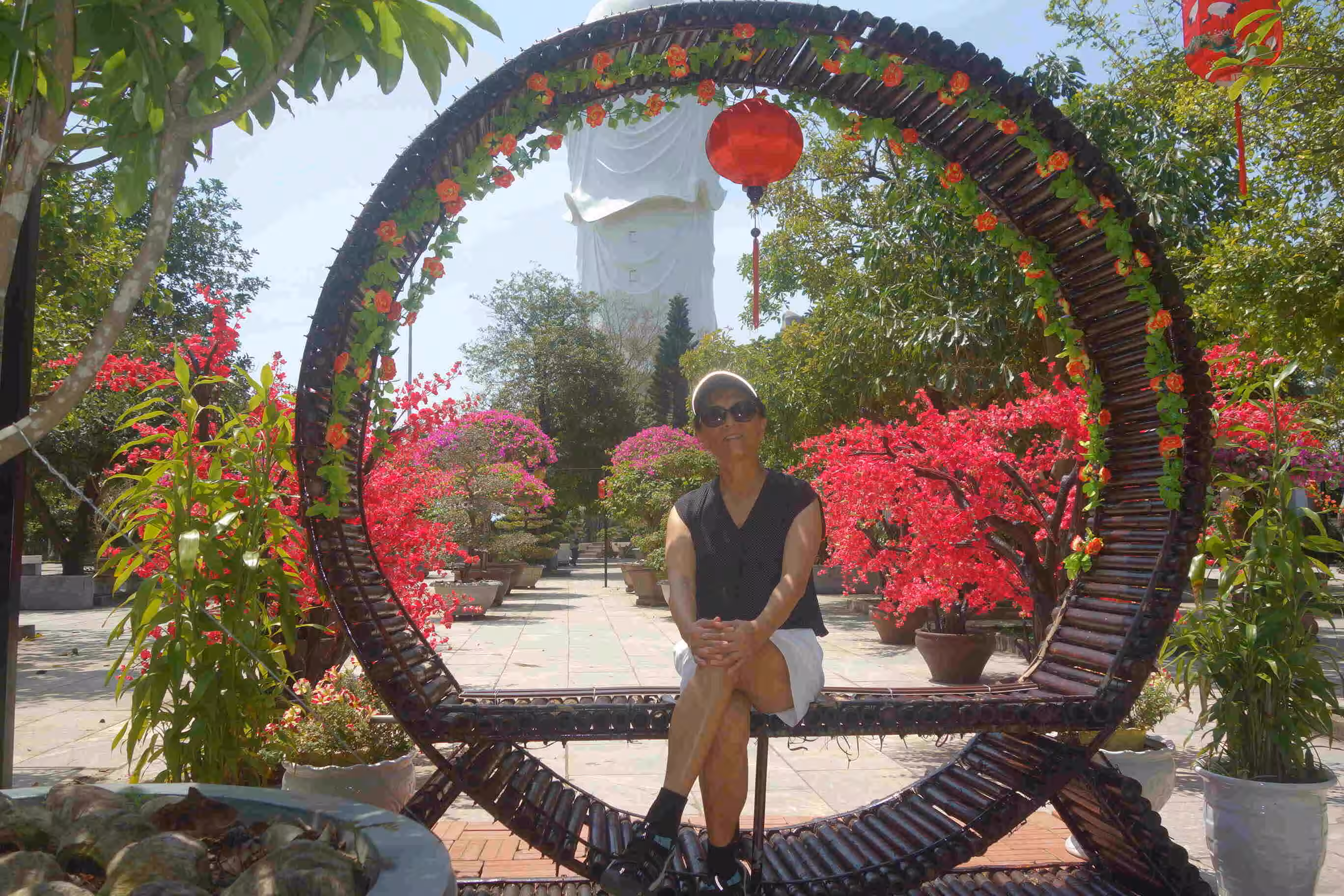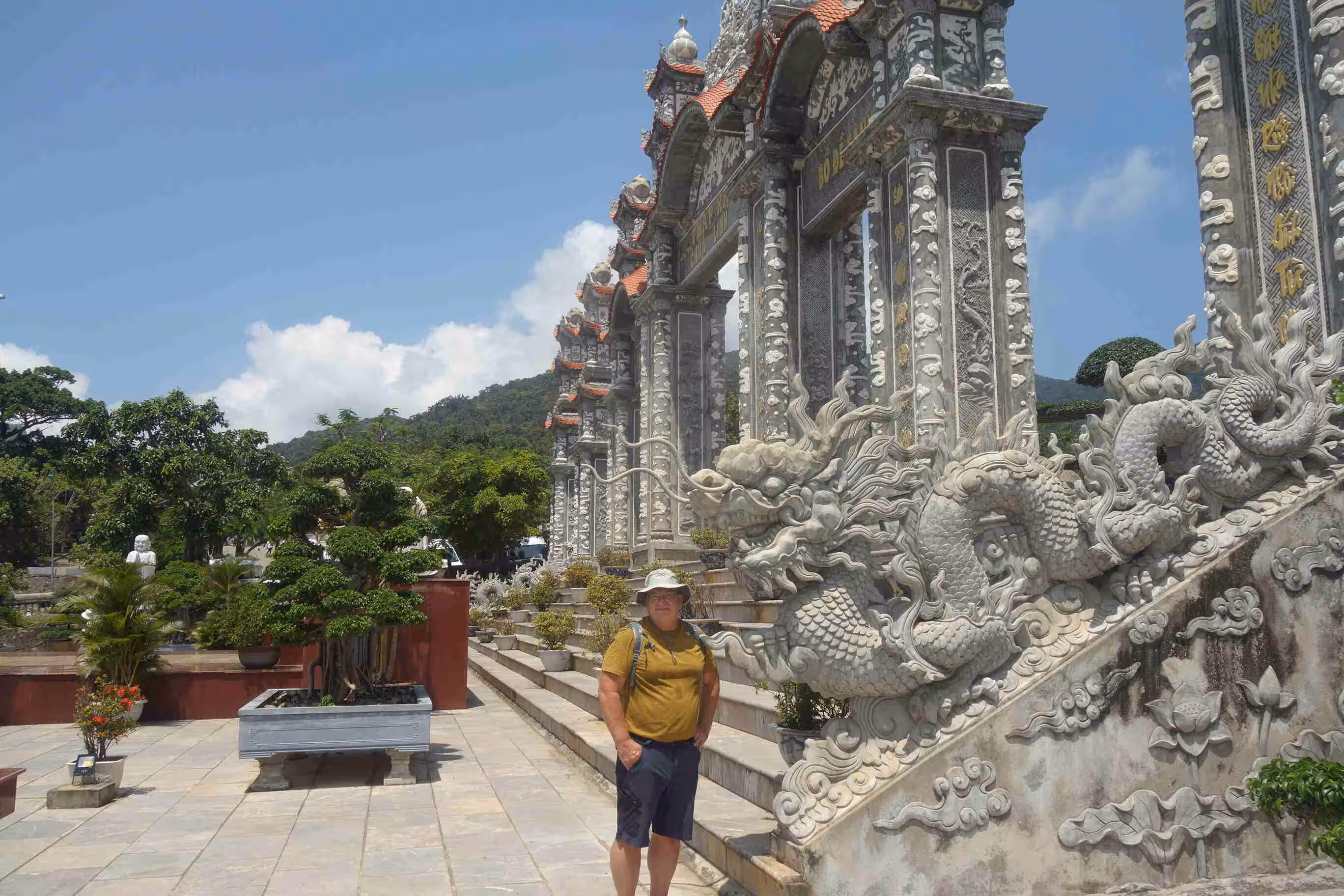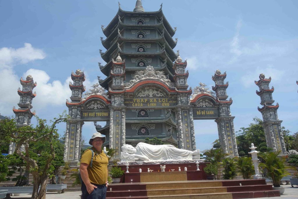 After breakfast, we spent some time for additional trip planning and expenditure tracking. Later, we took a Grab to temple site some 11 kms away. The tallest Buddha statue in Vietnam, dubbed the Lady Budha, at 67m stood on this site. The site was overwhelmed with tour bus guests which made the visit less enjoyable. We were pleased when our Grab driver offered to wait for us while we visited the site. Unfortunately, we struggled for 15 mins to find him in the parking lot at the end of visit. We finally understood from another Grab driver that he had likely taken on some other passengers for his return into town. Back at the hotel in the early afternoon, we rested in our room for several hours. We reviewed and selected some our photos before heading out for dinner. We wrapped up our evening, with a long walk along the ocean walkway. We stopped for modest sampling of ice cream before returning to our room. The Irish Pub near our hotel was in full St-Patrick’s Day mode when we passed by.