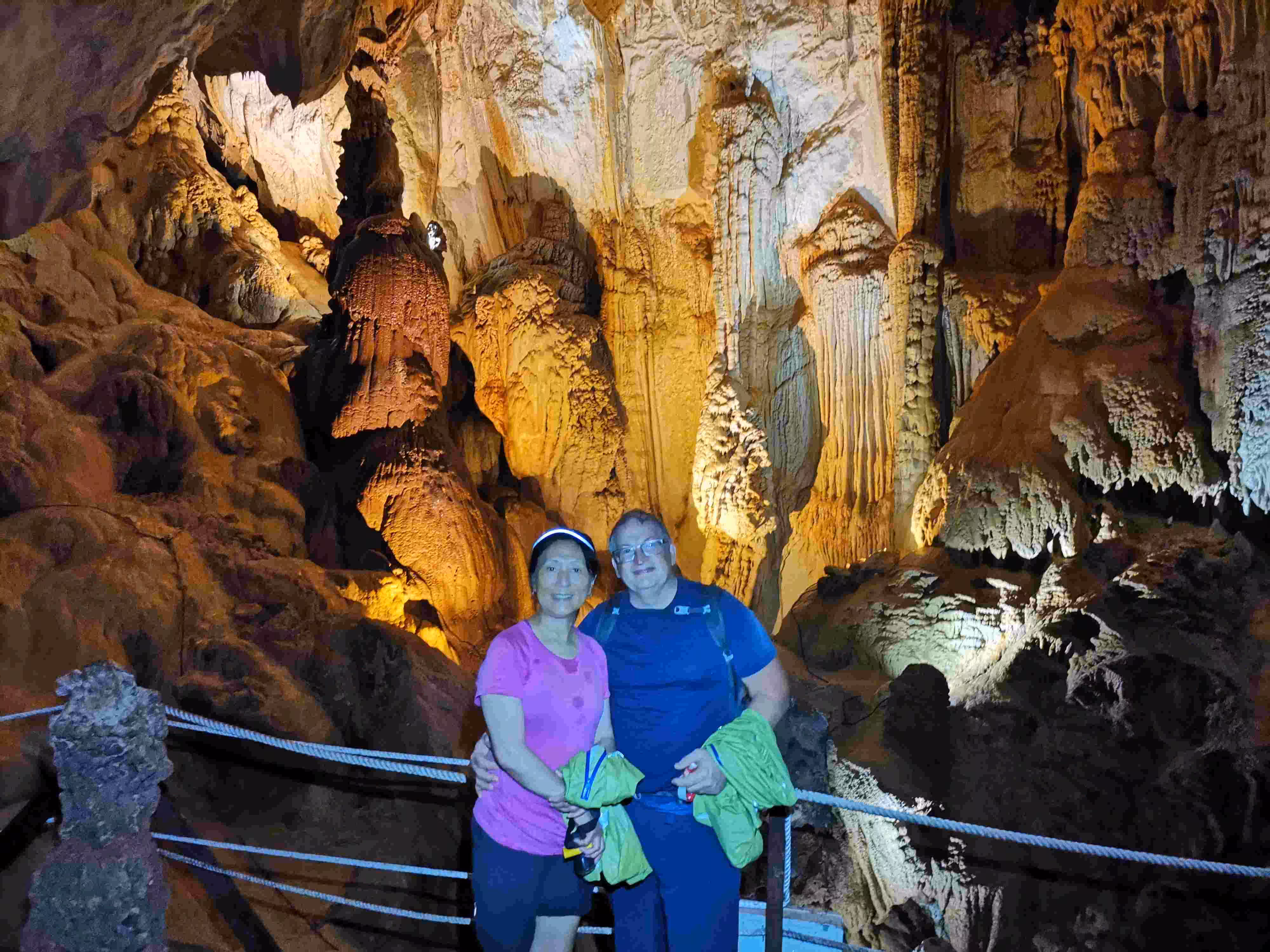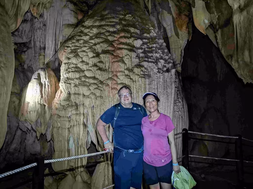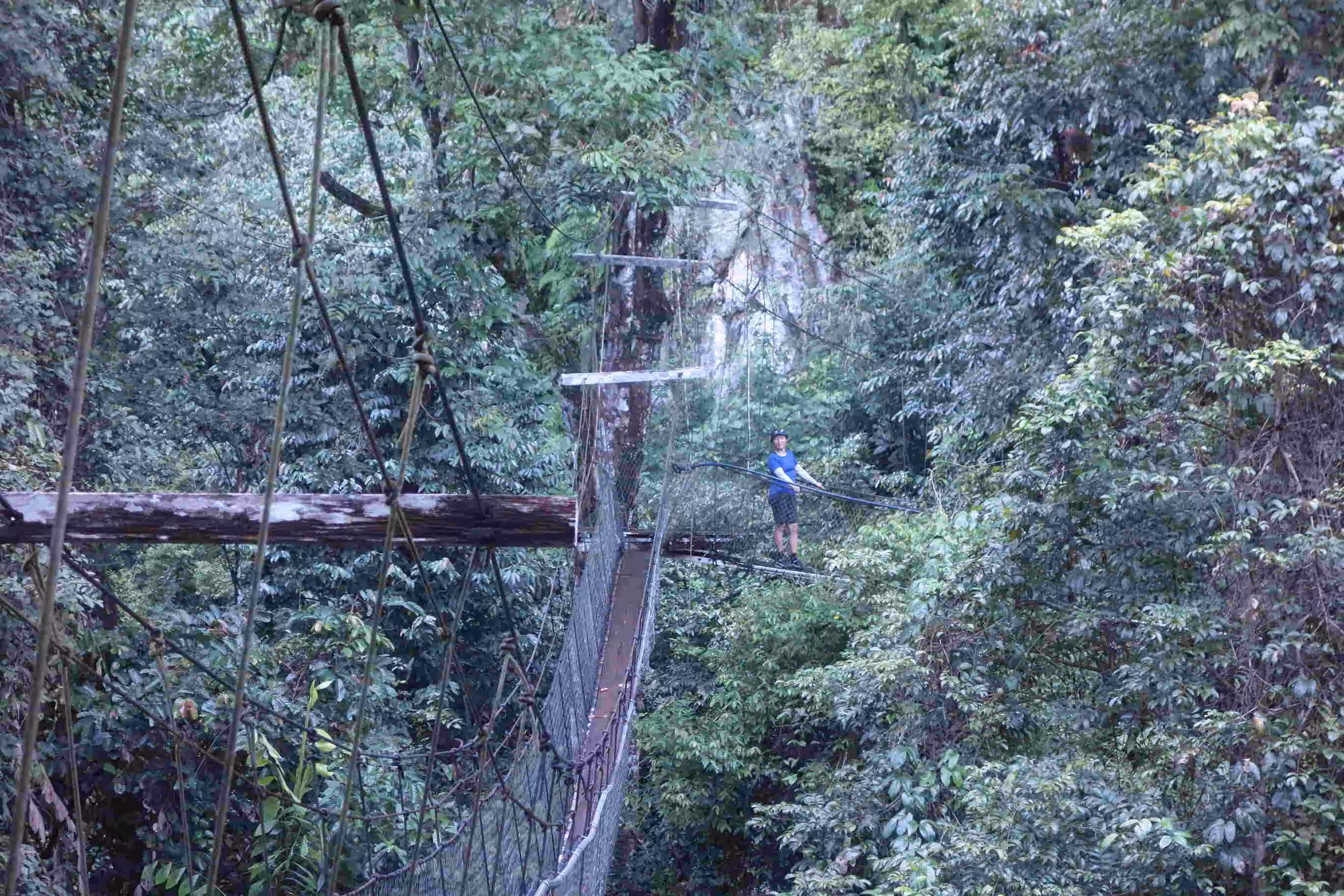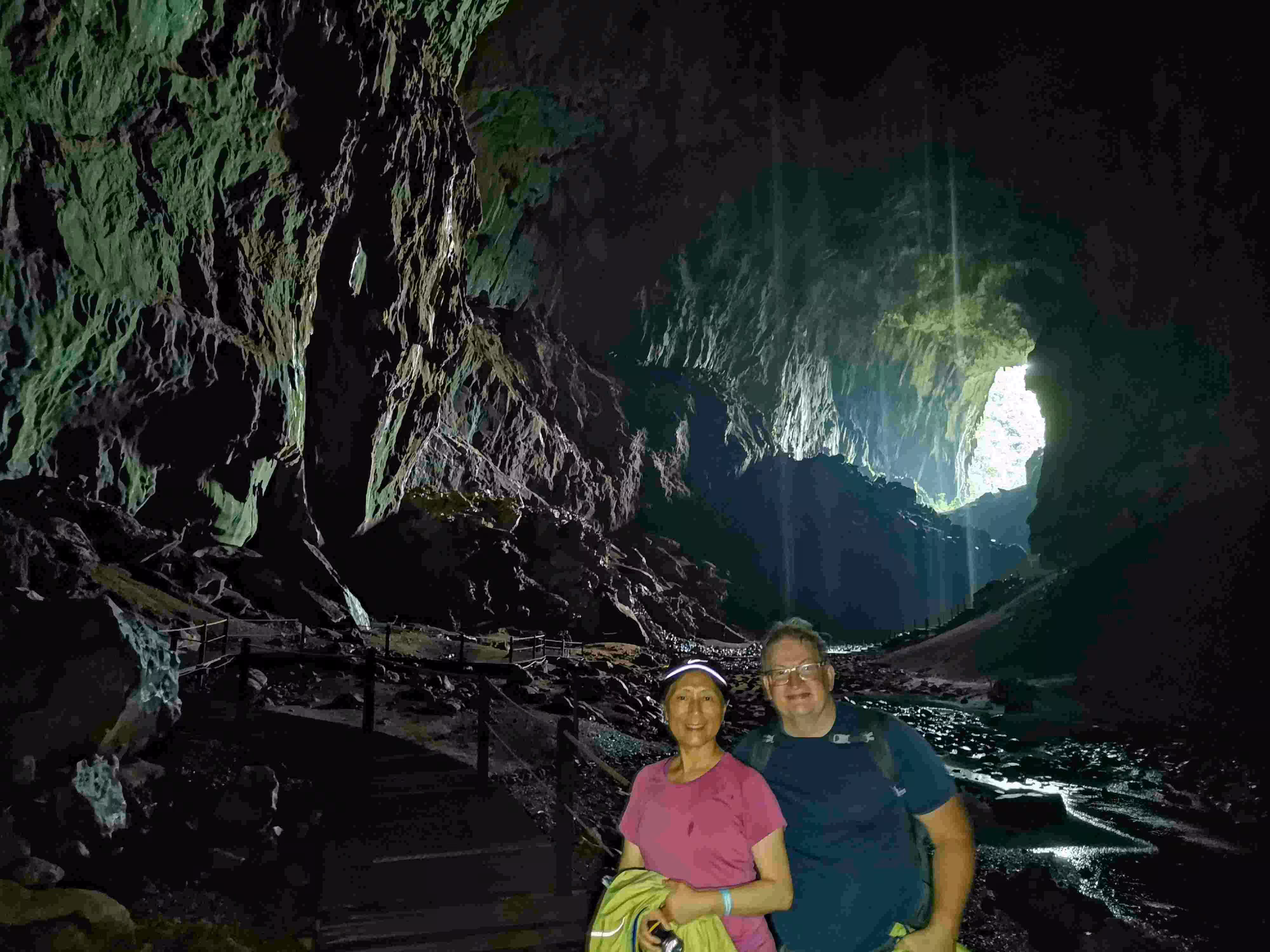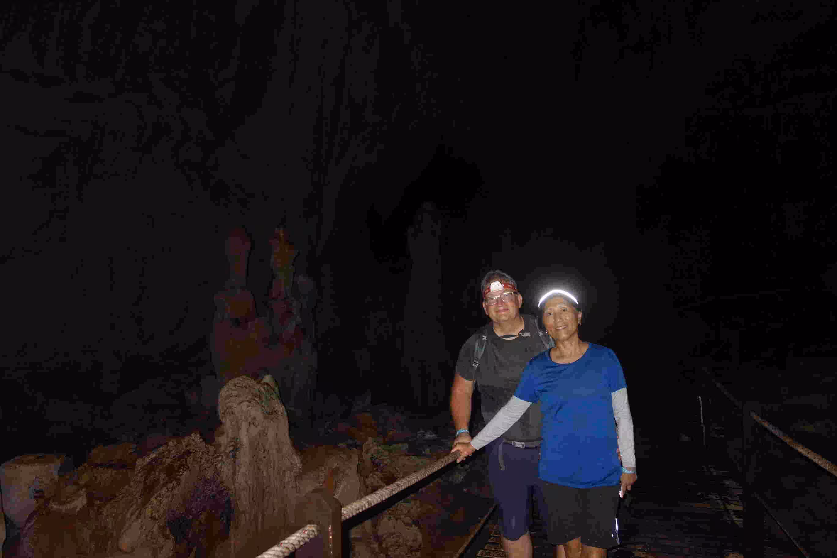 We had a much better night sleep in our new Longhouse II accommodation as it seemed further away from the frog noise. The downside of our more distant lodging (~ 100 m) was that our cellular data reception was suddenly much weaker. After breakfast, Jenny and I were the only participants led on the 8:30am Mulu Canopy Skywalk. It was quite trilling to be up in the trees trying to glimpse of birds and monkeys. In the mid-afternoon, we joined one other guest, a Chinese adventurous and seasoned traveler lady, on the “Fast Lane in Lagang Cave” tour. We actually preferred this cave visit than our more prestigious Clearwater cave visit on Tuesday. We finished our day with a dinner at the park’s cafe.