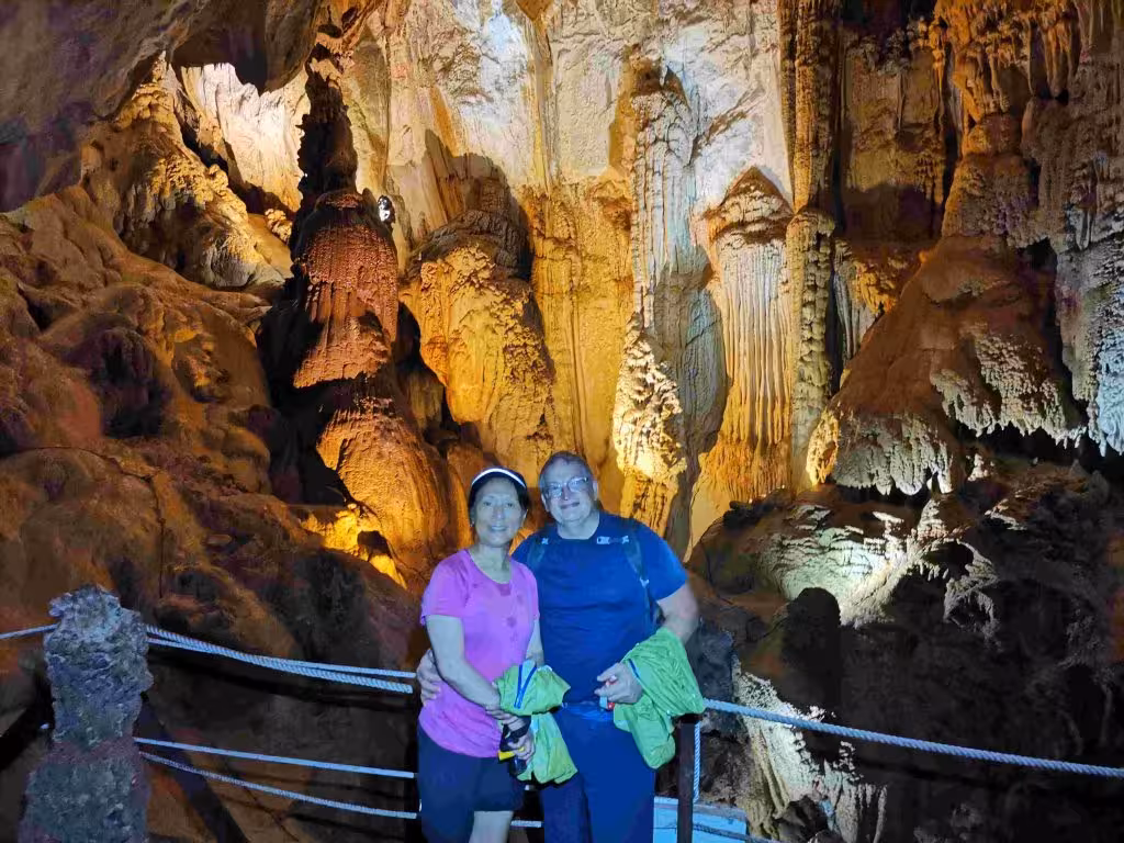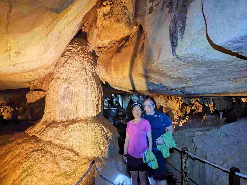 We never realized how noisy frogs could be during the night. They hindered our chance of getting any deep sleep. We had our breakfast at the park’s cafe before joining our 8:45am Clearwater & Cave of the Winds guided tour. The 20-30 mins long boat ride to the start of trail for the cave was very enjoyable. We first stopped to visit the Cave of Winds. After a steep staircase ascend, we reached the entrance to the cave and we then proceeded to walk 385m along a boardwalk path. A guide provided some information at different points along our visit. Back to the river, we continued our ride on the long-boat for another 10 minutes to the start of the trail head leading to the Clearwater cave. Last night, I googled about the largest caves in the world as it appeared every time we visited caves in different countries (e.g. Spain, Slovinia, etc) the guides were often quick to report that their caves were among the largest in the world. Well, we learned that Clearwater was truly among the top 10 largest caves in the world. Our visit did not disappoint as we walked along a lengthy boardwalk loop. The cave system extends 250km to-date and more needs to be explored. Although the Clearwater cave was very impressive we still preferred our caving experience in the northern part of the Philippines (Sagada) for its pristine and unaltered cave condition (i.e. no walkways) as we recalled the experience of walking barefoot in the cave. We finished our cave visit with a swim in the water emerging from the cave. Our long boat return ride was quite fast as we went down current. After a good shower, we had lunch at the cafe. We spent the rest of the afternoon relaxing in our Garden House. In the evening after our dinner at the cafe, we embarked on 2km self-guided night walk with only one head light. It was on this occasion that we discovered that not all trails in the park were on elevated boardwalk with lightning. Jenny blasted me for the next 1.9km for having brought her along a muddy trail. Nonetheless, we managed to return to our room without any problem. In light of the previous night’s noisy frog, I used earplugs before falling asleep.