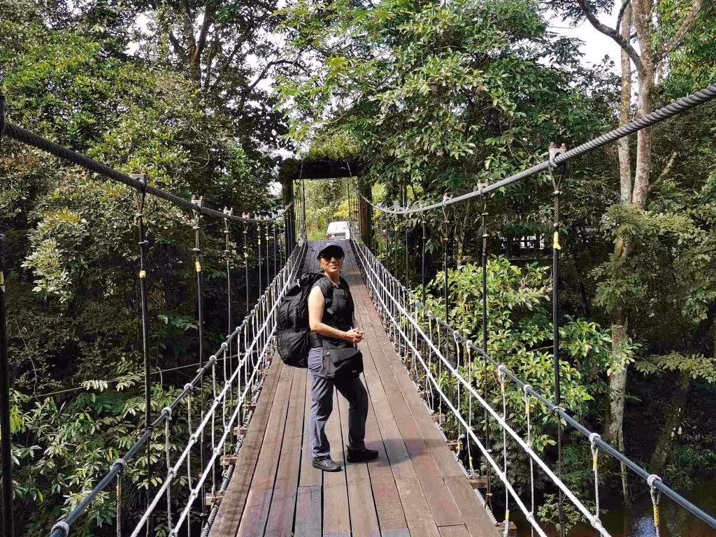 We had breakfast “à la carte” at our hotel’s restaurant. Before leaving our hotel for the airport, we deposited our snorkeling equipment at their luggage room as we planned in stay at the same hotel upon our return from Mulu. We had no difficulty securing a Grab ride to the airport. Our 30 mins flight was sparsely occupied with less than 16 passengers. Surprisingly, the flight attendants managed to hand-out packaged snacks and water bottles. After retrieving our backpacks, we jumped into a local lady’s small car for a short ride to the park’s headquarter. After confirming and paying for our 5 night stay and 6 guided activities, we walked over to our comfortable Garden House for an afternoon rest. We had opted to stay in an accommodation within the park’s boundary. If we had benefited from an heftier budget, we could have booked a room at the Marriott Resort just outside the park limit. It rained heavily in the late afternoon so we were convinced our planned Night Walk activity would be canceled. Unsurprisingly, the rain stopped and we had an early dinner at the park’s cafe. Only one other guest joined us at 7pm for our 2 hour guided Night Walk. Throughout our walk along a boardwalk trail, our guide expertly pointed out to us numerous frogs and insects – these animals are typically difficult to see during the day. We were pleased to note that our phone’s cellular reception was quite good thanks to the roaming service associated with our Singapore sims.