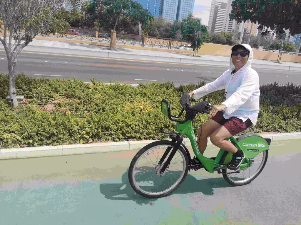 After breakfast, we took a taxi to the Louvre Abu Dhabi museum. The exterior of the building was as much eye-catching as Le Louvre in Paris. We arrived shortly after the museum opened. We spent well over 2 hours enjoying the artifacts and information panels along the 12 exhibit halls. After our visit, we took a taxi to a bike sharing station situated along the corniche – Abu Dhabi’s waterfront walkway. We struggled quite a bit with the bike sharing app (Careem Bike App) – first with credit card registration and then later with the codes to release our bicycles. Nonetheless, we managed to cycle over 12kms along the corniche. After returning our bicycle at another station, we took a taxi back to our hotel. We were very grateful for the more comfortable temperature and gentle breeze during our cycling journey. Back in our hotel area, we purchased a few snacks and refreshments before returning to our room for well deserved rest. In the evening, we had our dinner at a Domino Pizza restaurant near our hotel.