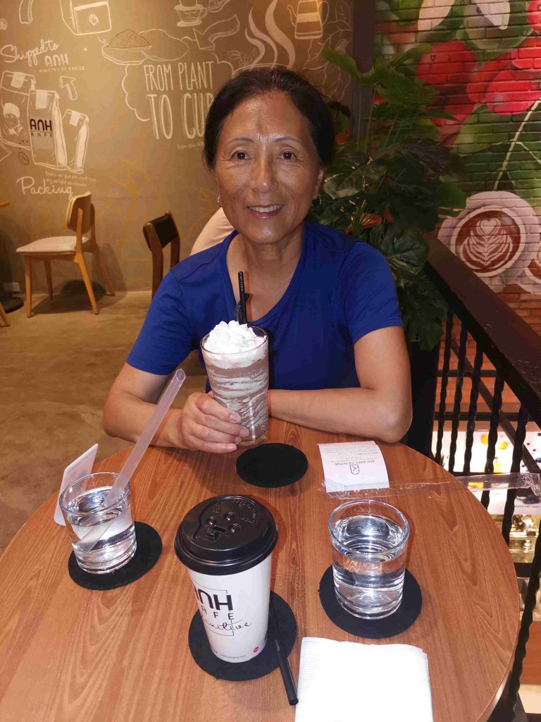 Happy birthday Victoria! We heard some thunder and heavy rain during the early morning. The weather was very grayish as we had our last breakfast in Tam Coc. After paying for our room, we took a car ride from our hotel to the Ninh Binh train station for our 9:30 train to Hanoi. The train appeared more comfortable to us than the one we took in the reverse direction 3 days ago. After our arrival in Hanoi, we took a Grab to our hotel. We were once again reunited with traffic chaos as Ho Chi Minh city. As our hotel room was not ready, we dropped by the Vietnamese coffee chain: Highland for some refreshments. We bought some snacks, beer and wine for our 3d/2n Halong Bay cruise which will start tomorrow. The temperature was much cooler in Hanoi. We concluded that it must get much colder as we even noticed our room was equipped with a portable heater. We sincerely hope we won’t need it during our stay. In the evening, we had dinner at a nearby restaurant offering local Hanoi dishes.